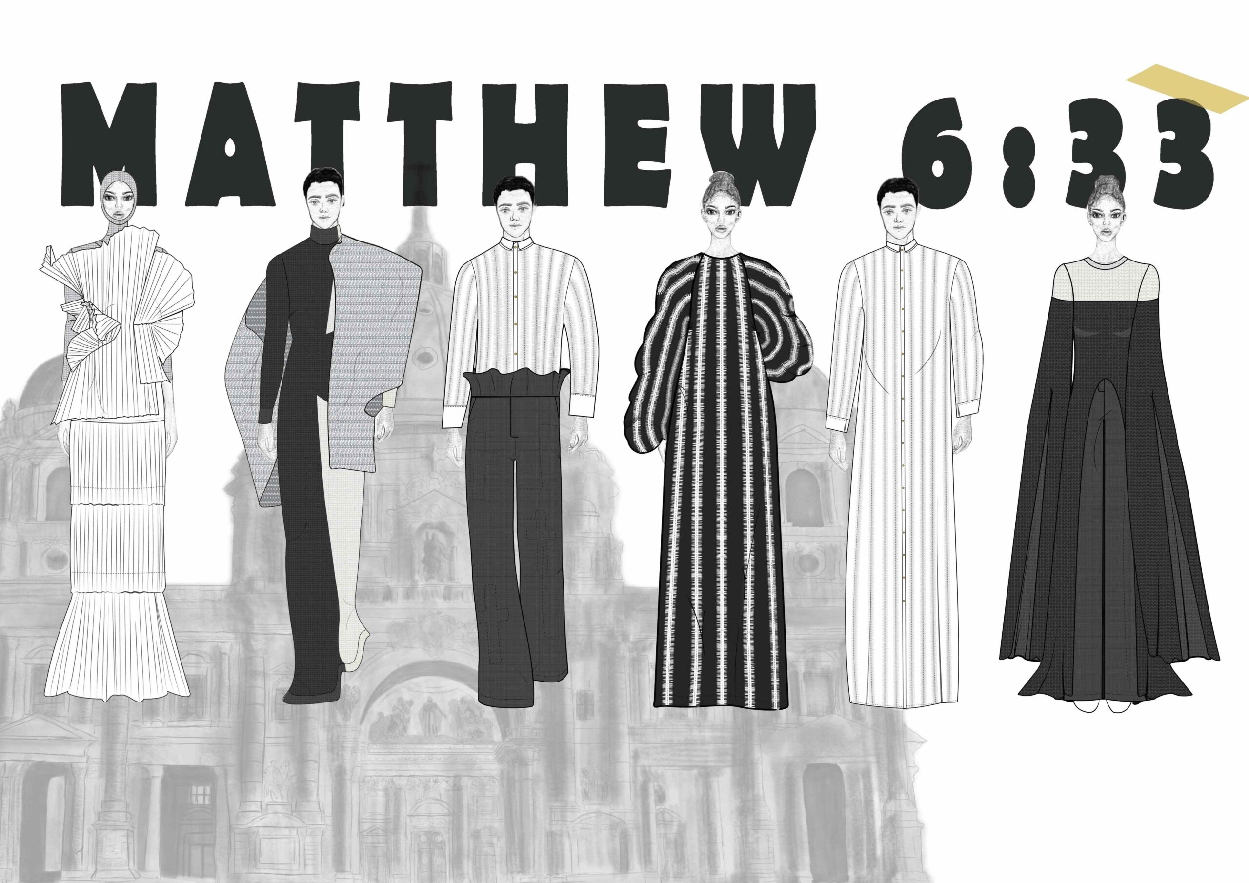 This collection is inspired by the rich visual language and sacred symbolism of the Catholic Church. For me and my family, Catholicism is more than just a religion it is a deeply rooted cultural tradition, especially as Filipinos. It influences not only our beliefs but also our way of life, celebrations, and personal identities.Having moved to Ireland, I found myself gradually stepping away from the faith I grew up with. However, in recent years, I’ve started a personal journey of reconnection dedicating more time to understanding and practicing Catholicism, and rediscovering my relationship with Christ. This collection is a reflection of that journey, an exploration of faith, identity, and cultural heritage through the lens of fashion design. As a designer, it was essential for me to approach this theme with deep respect and sensitivity. I made a conscious effort to stay true to my aesthetic while integrating religious and cultural references in a meaningful way. My aim was to create a collection that is both visually striking and spiritually thoughtful one that honors the sacred traditions I was inspired by, without compromising the integrity of my design language. It was also very important for me to use natural materials like, using 100% cotton fabrics to contribute to a more environmentally responsible practice aligning my creative vision with values of sustainability and ethical production.Through this work, I hope to express the power of personal narrative in design and how clothing can serve as a bridge between faith, culture, and contemporary creative practice.