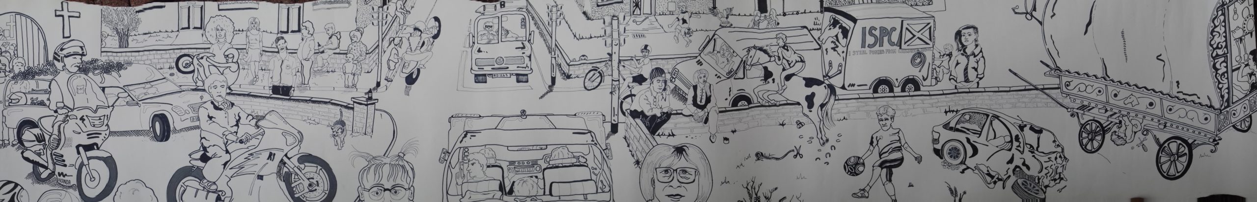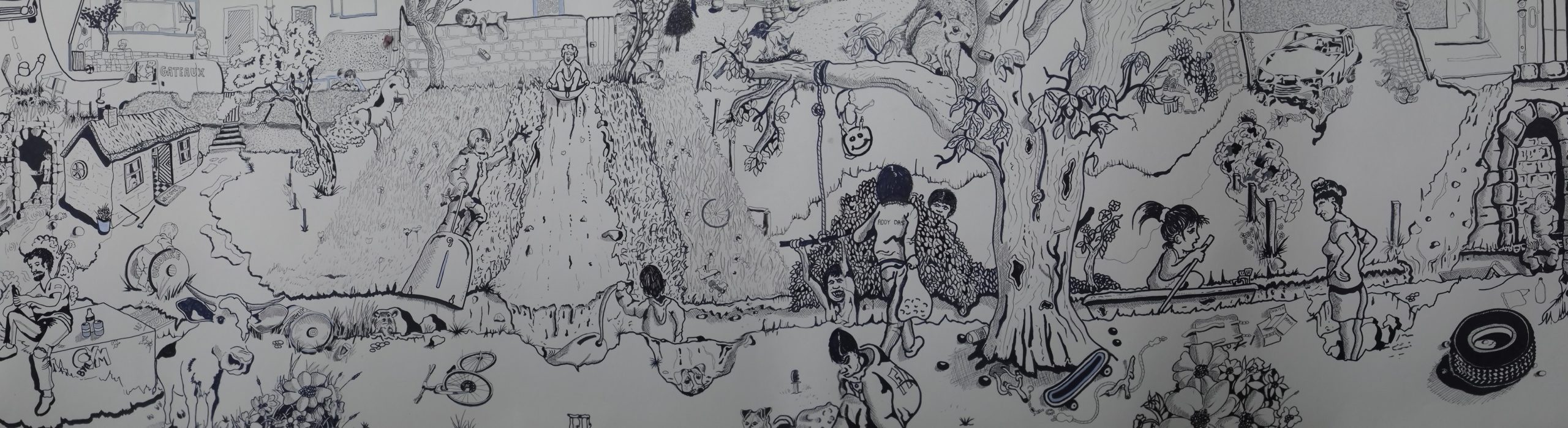 My drawings are based on what i see every day. Before Coronavirus my work was based on the area surrounding the college. After lockdown my observation shifted to what I could see out of my window at home. My drawings deal with what happens in the shadows . What is not seen without really looking, alleyways and dark corners is where I find my subjects.