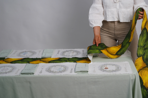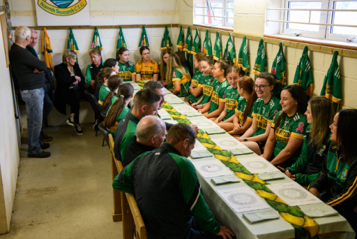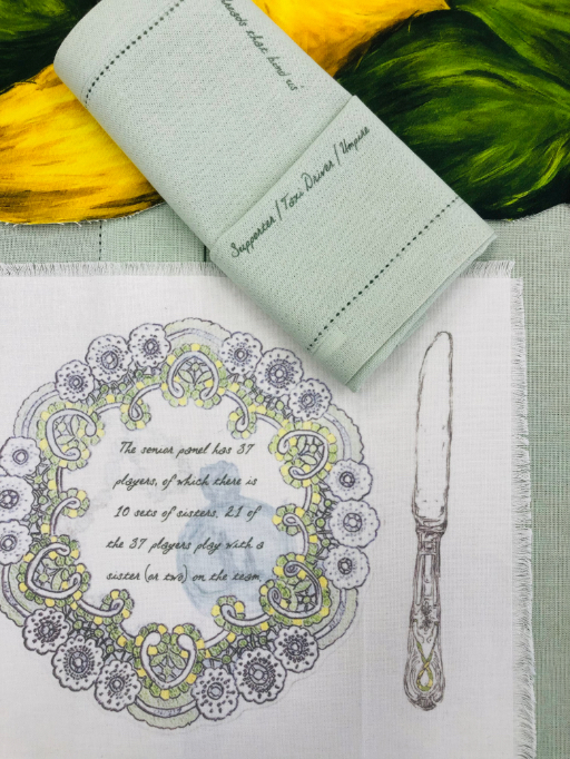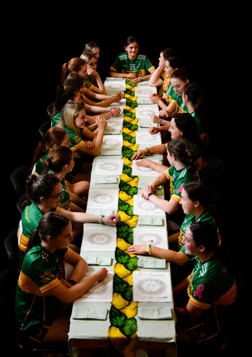 As an Irish artist and art teacher, my practice explores socially engaged art in community based settings, with a particular focus on the experiences and narratives of rural Ireland. My practice explores the place of the GAA and LGFA in my rural home village in County Westmeath. It presents a table setting that reflects the rituals of our ladies’ gaelic football team: pre-game breakfasts and after game celebrations with family and friends. The accoutrements on the table describe the undocumented story of our ladies football team; offering a rare glimpse into the building of a community through female amateur sport. The setting acts as an archive of the past, present and future of St Joseph’s Ladies football club, and uses textile objects to show how the team is not built just on players, but on a whole community. The approach involved in my work comprises a variety of textile processes including free-machine stitching and heat pressing. Digital media including photography, videography and audio are used to document the whole experience and routine of our dressing room.
