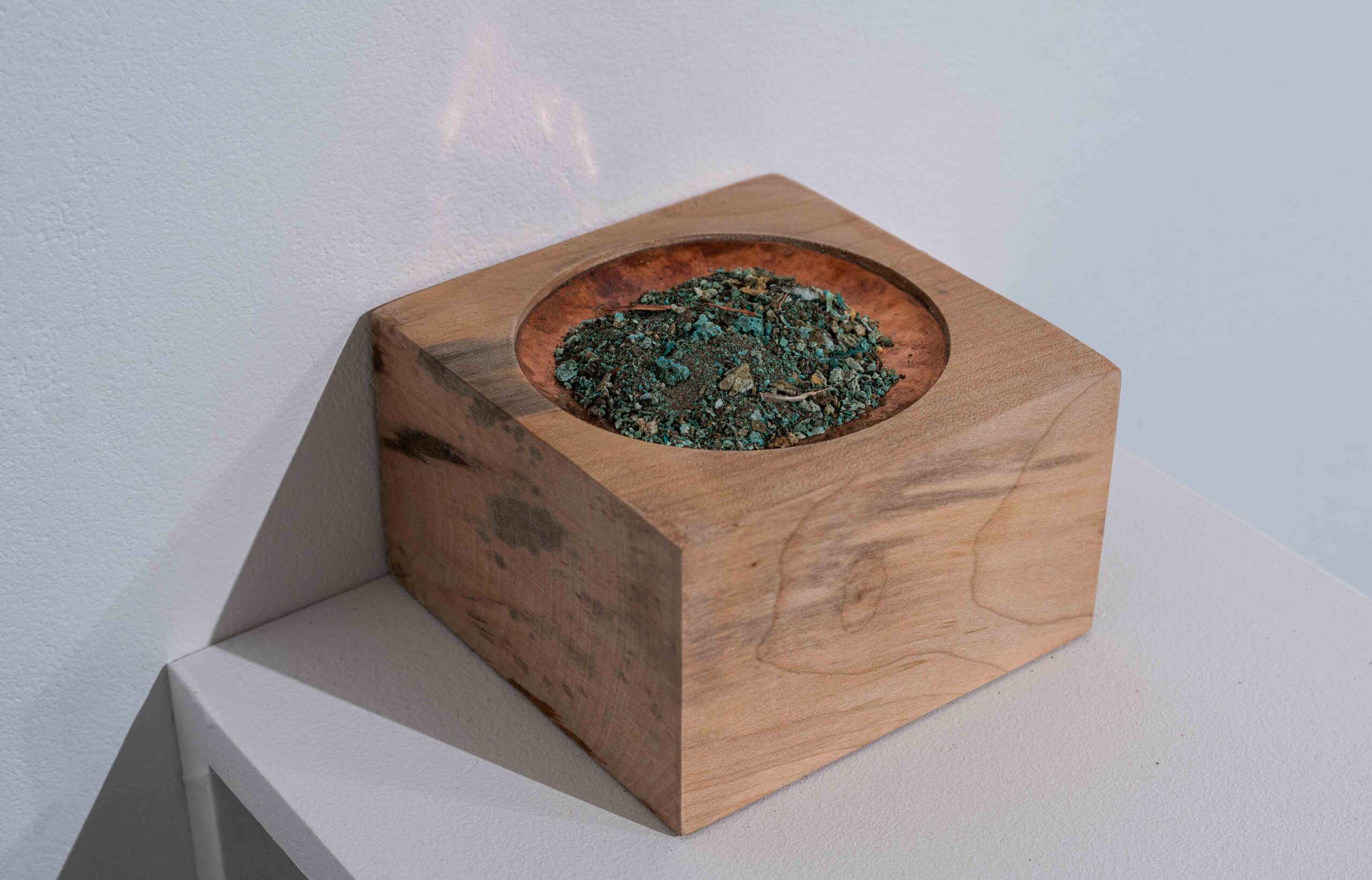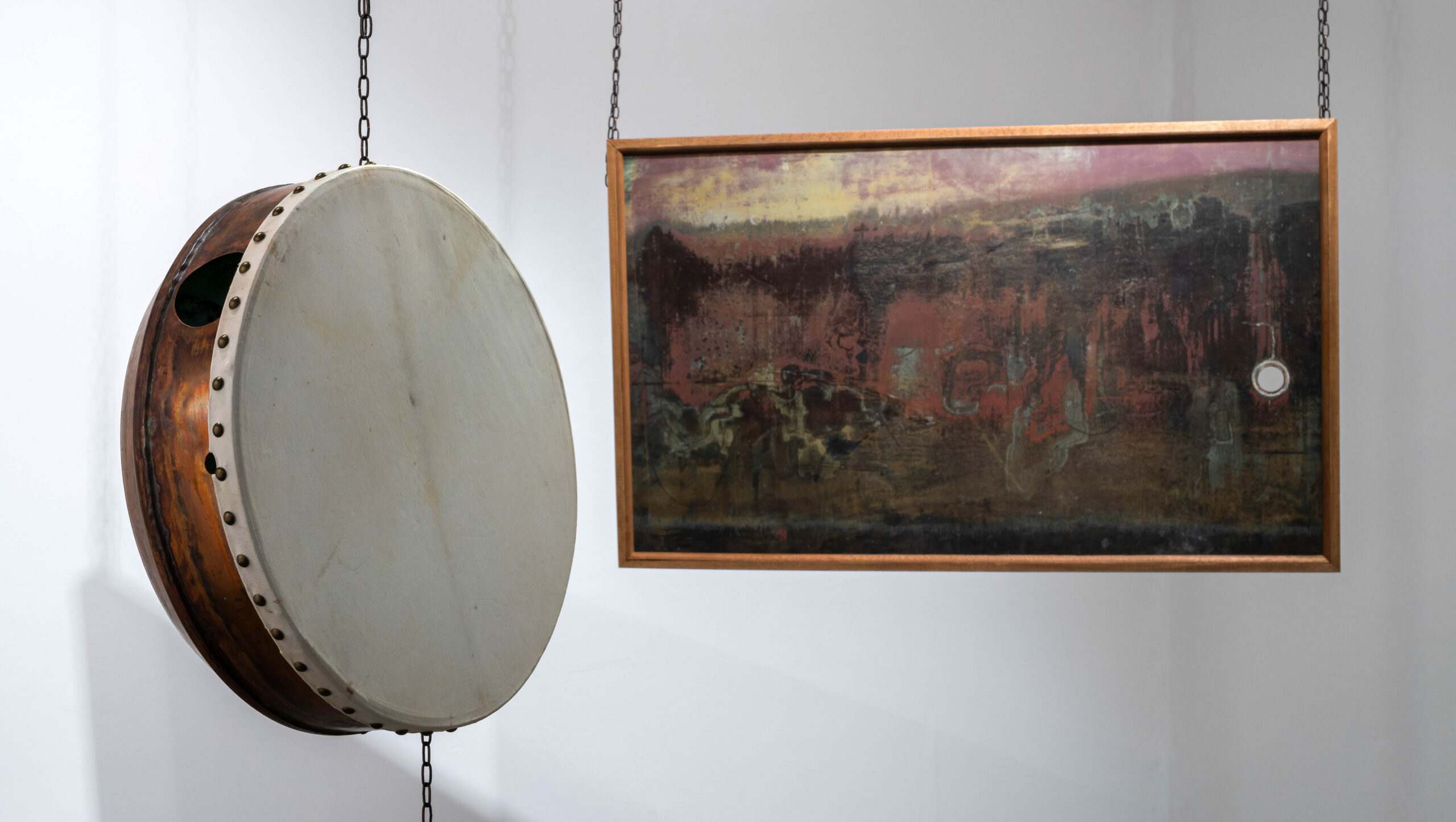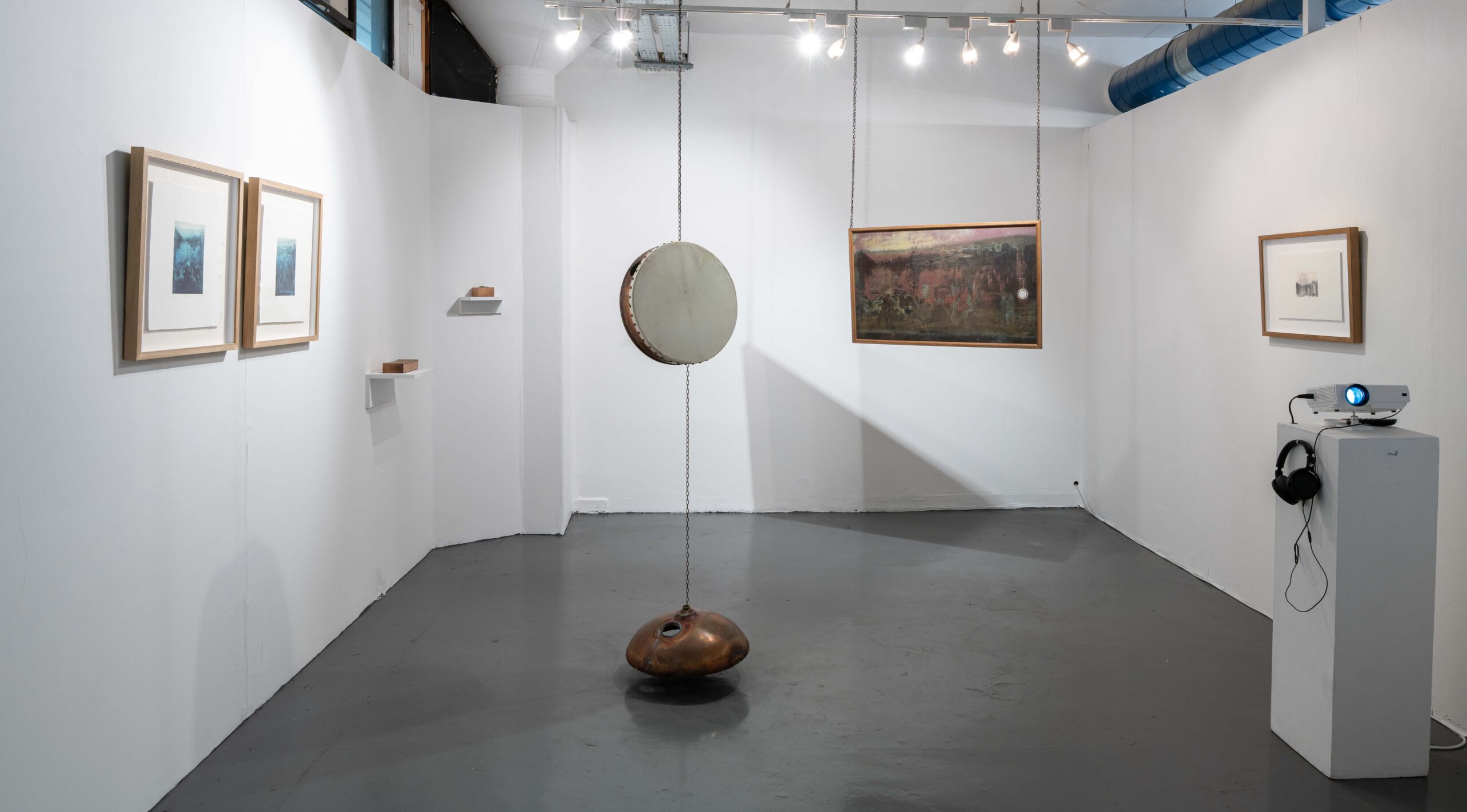 'Drum Loch' is a body of work that brings together natural copper plate etching and chine collé printing processes along with sculptural and sound elements. My practice explores mapping as a way to trace memory, material, and place. I engage with the Irish landscape, particularly the Boyne Valley, as a layered site of personal and geological history. An old copper water tank from my childhood home became a catalyst. Its corroded surface resembled a map formed by time and water. The paradox of copper being both toxic and essential resonates personally through a family history of Wilson’s disease, a condition that causes copper levels to build up in the body, thus deepening my relationship with the material. I use copper plates to print through the chine collé process, building delicate, layered impressions that suggest sediment, erosion, and fragile systems of mapping. 'Drum Loch' reflects on how we inscribe, inherit, and transmit experience across land, through the body, and within material itself.