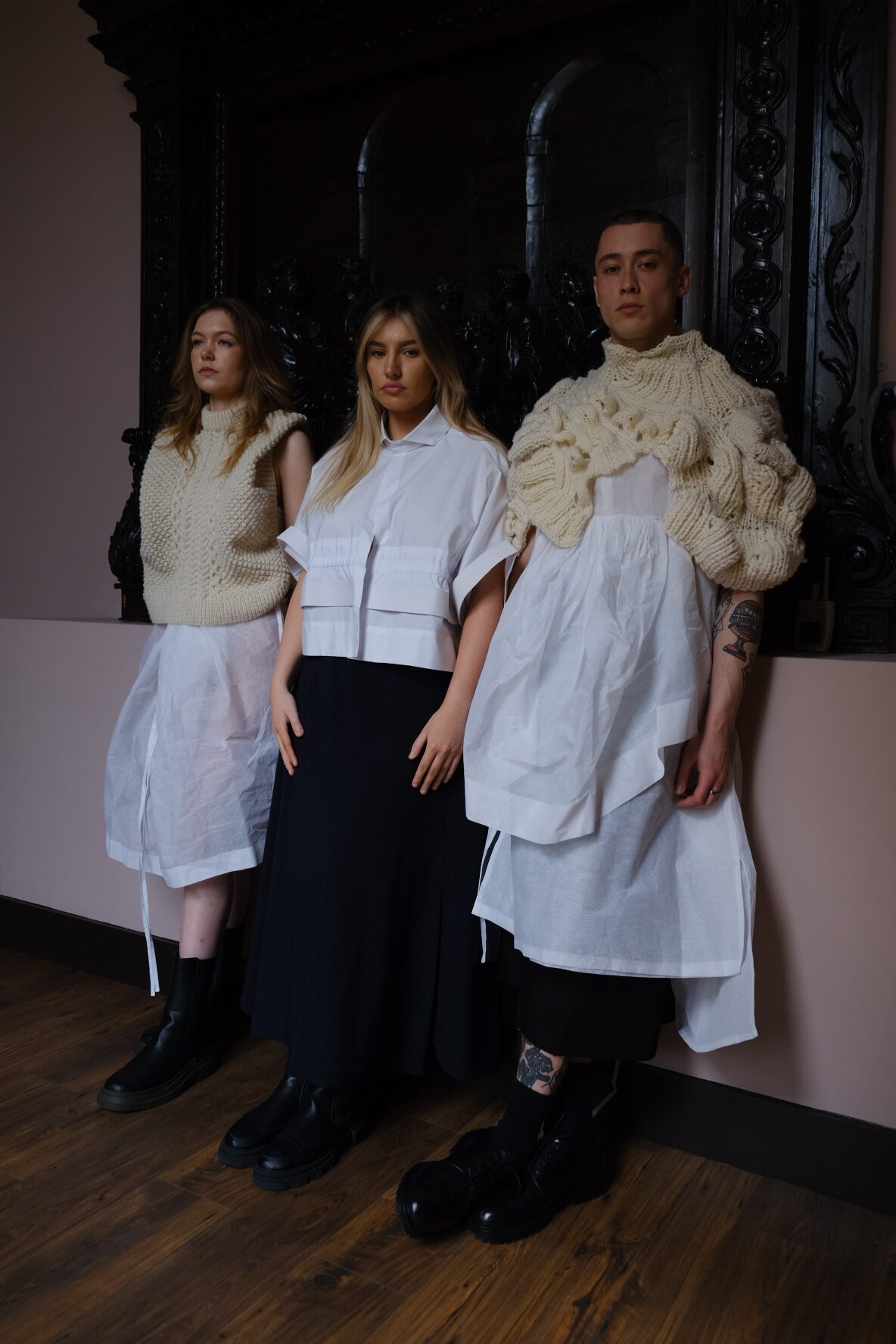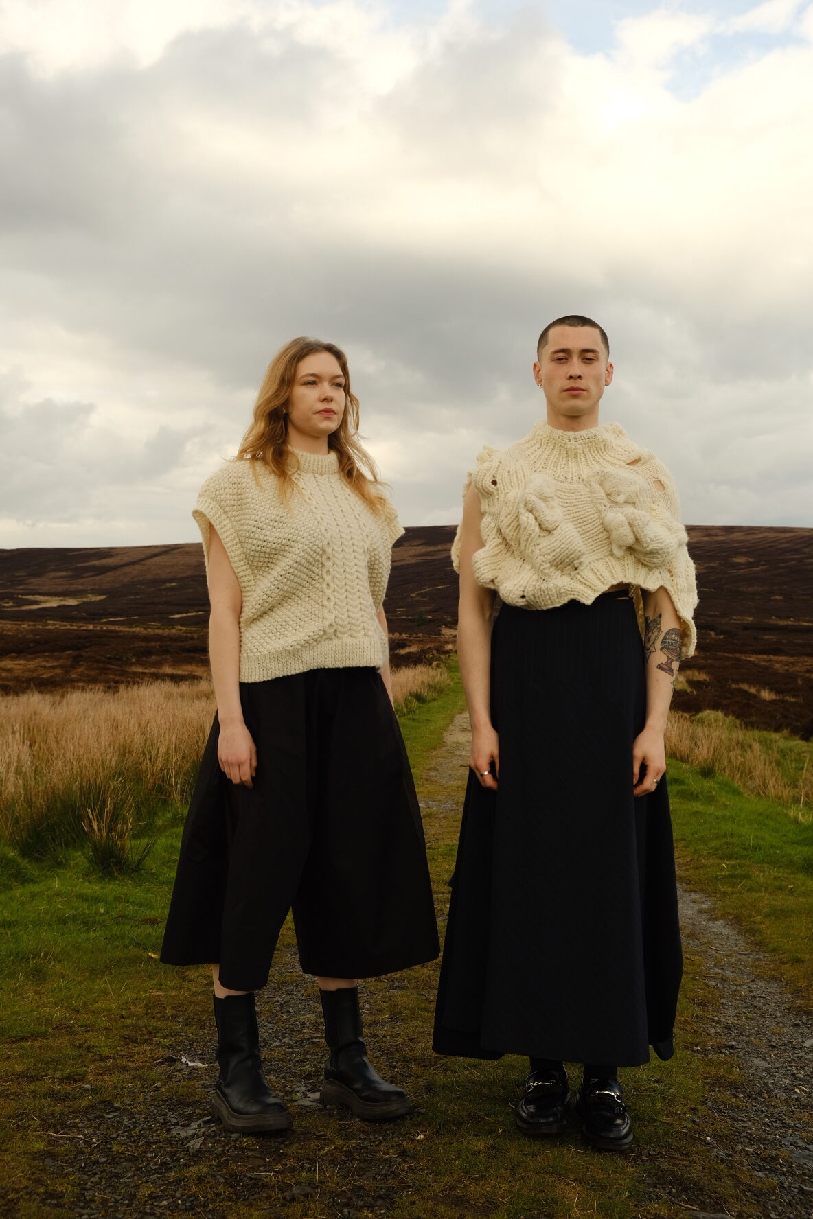 My name is Conor O'Brien and I am a recent graduate of Fashion Design at the National College of Art & Design in Dublin. My graduate collection 'Cara Coirp, Friend of the Body' is a collection based on filling the emotional gap between the self and self-image (something I've always struggled with), particularly in relation to body dysmorphia, by unapolagetically distorting conventional silhouette and emphasising common 'problem areas' of the body, which so many of us are so insecure about. My graduate work and design philosophy at large is one based around authentic size-inclusivity, which is so currently lacking. In both my graduate work and my slow-fashion knitwear brand (my own name) I strictly emphasise the use of natural fibres; I am one of the first brands in Ireland to offer knitwear made using the elusive fibre of the Galway sheep. I believe in using luxurious fabrics in luxurious quantities, enveloping the body in beautiful drape. I dress myself in and attempt to design clothing which will live a circular life, from earth to garment and eventually back to earth. I'm inspired by the work of Christian Dior, La Belle Époque and the 1890's and my favourite designers include Rei Kawakubo and Yohji Yamamoto.