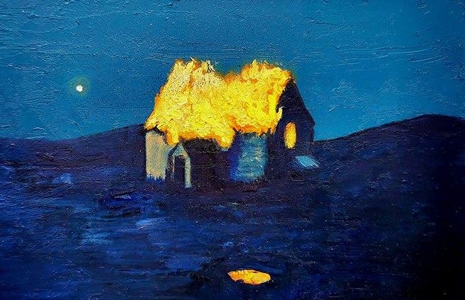 My work focuses on the relationship between the Irish Landscape and the spectator. By giving new life and purpose to found materials using oils and mediums I depict a fragmented walk through my daily life. Through this process, I aim to evoke feelings of the sublime and to prompt the viewer to contemplate their own psychological relationship to their personal space and environment. My Graduate Show 'Before We Knew About The Clouds, was primarily inspired by the Wicklow Mountains where I grew up. As the Irish landscape began to feature more on-screen with features such as Martin McDonagh's 'Banshees of Iniserin' (2022) and Emma Donoghue's ' The Wonder (2022), the temporality of the set became an important motif within my work.