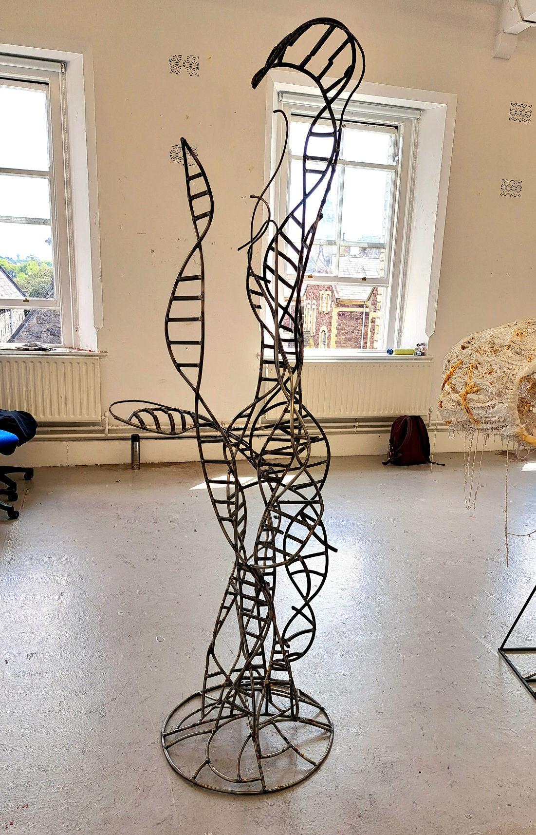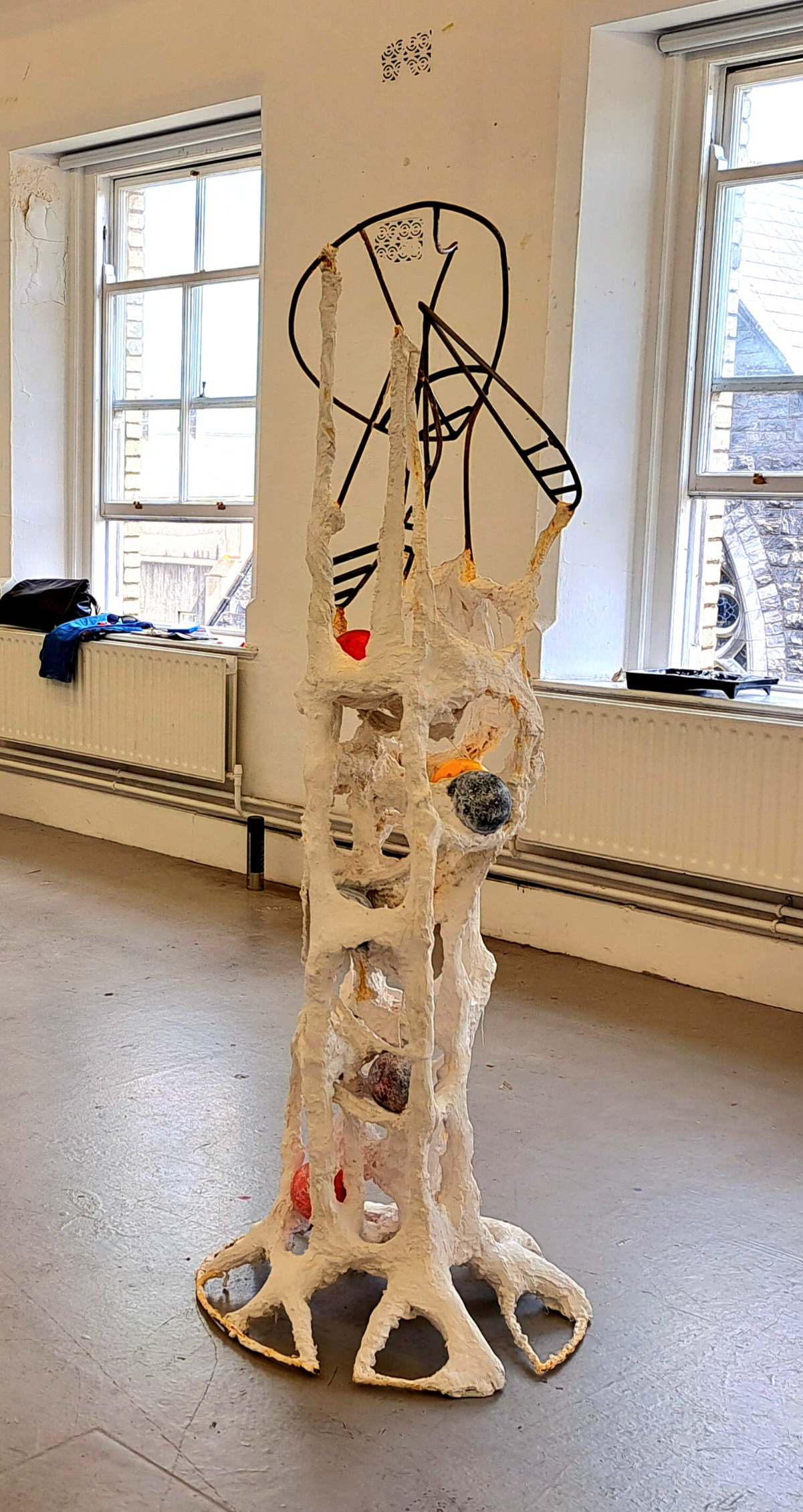 Dave GrantArtist StatementThis was my final year project at college and has taken its starting point from my lifelong interest in our environment and how humans contribute to the increasing crisis that is unfolding before us. Having grown up in the mega city of London and now living in rural Ireland, my interests in the use and abuse of our environment cannot be underestimated, from the disappearance of many of our native species to the increasing pollution of our rural town lands through urban sprawl and mismanagement of farmland.My work has developed from an interest in traditional fine arts materials. I started this project exploring different methods of working, with the final work taking on the form of welded steel and found materials in an attempt to make visual the current discourse around our role in the decline of our lived spaces. The sculpture represents my research into microscopic forms and how these often unseen and unconsidered plastic pollutants (Nurdles) have become an everyday deluge within both our daily lives and most concerningly within our very DNA.Nurdles or pre-production plastics are tiny pellets that are shipped round the world, 230,000 tonnes are spilled into the oceans every year to be washed up on pristine beaches in every corner of the world. One of the main dangers with these micro-plastics is the fact they tend to soak up other pollutants around them so become extremally poisonous. They are then eaten by animals mistaken for food thus enter the food chain, disturbing facts these nurdles have been found in the deepest location on earth the Mariana Trench, and the highest Mt. Everest and even in human blood, food for thought.