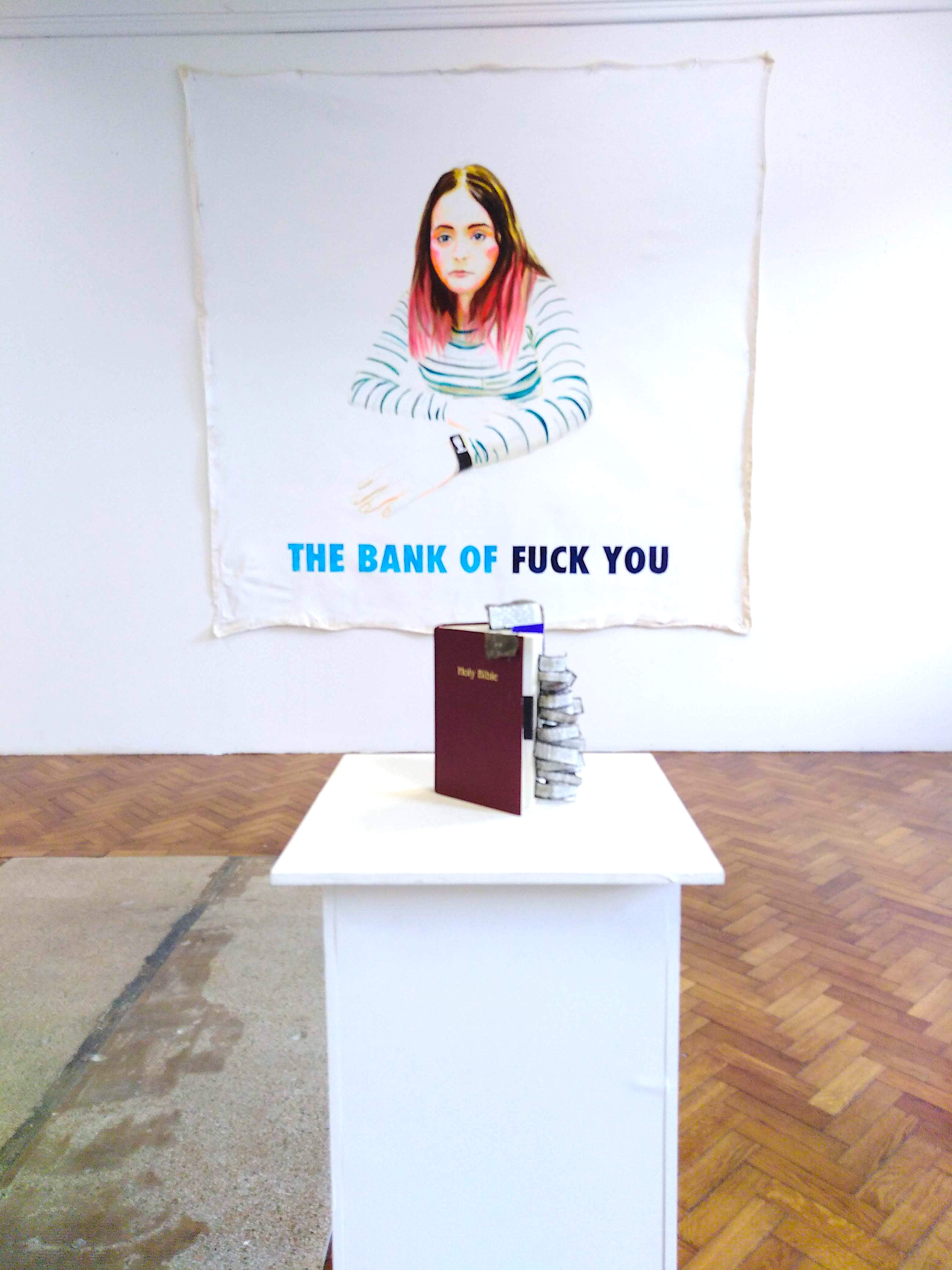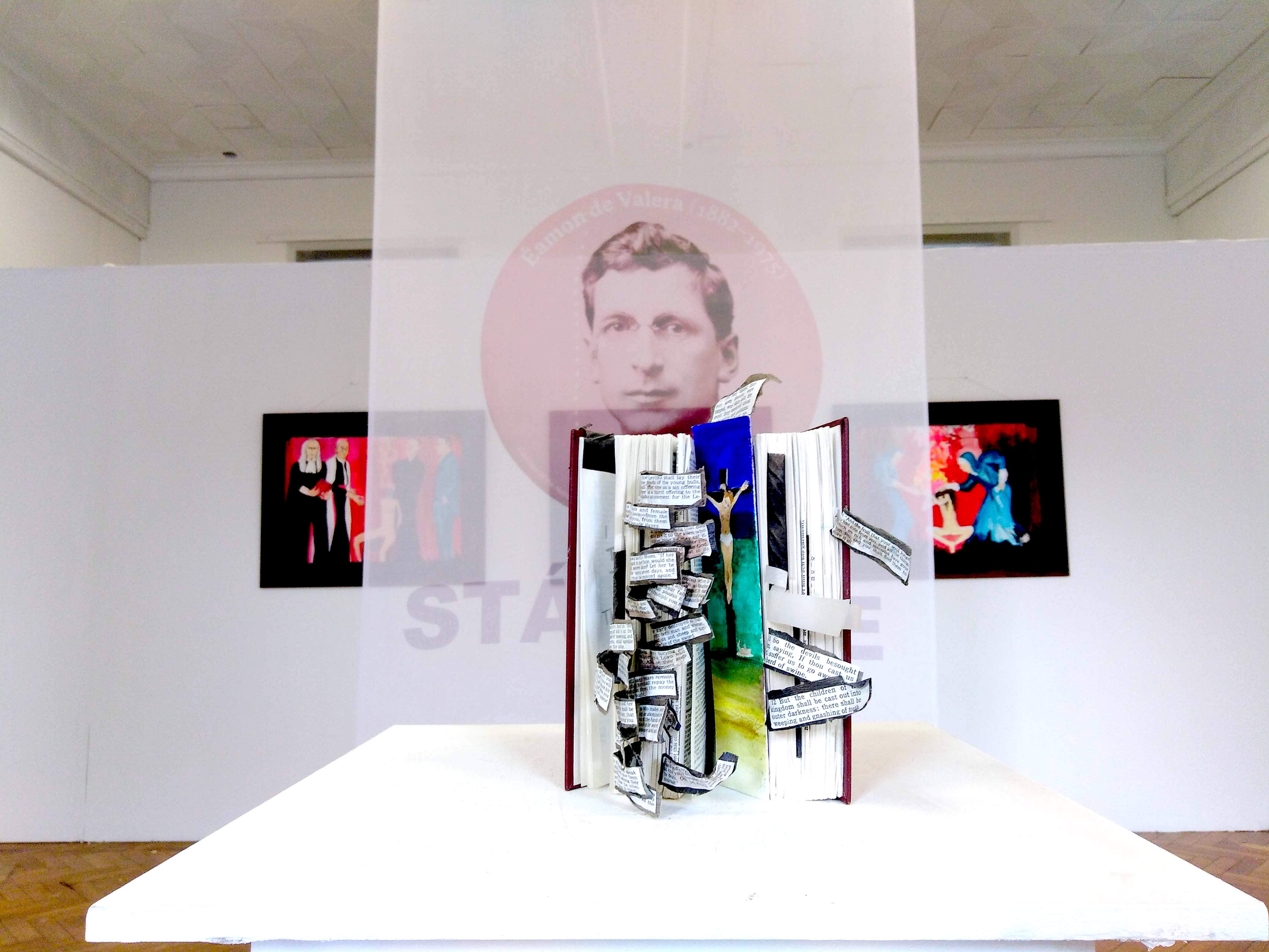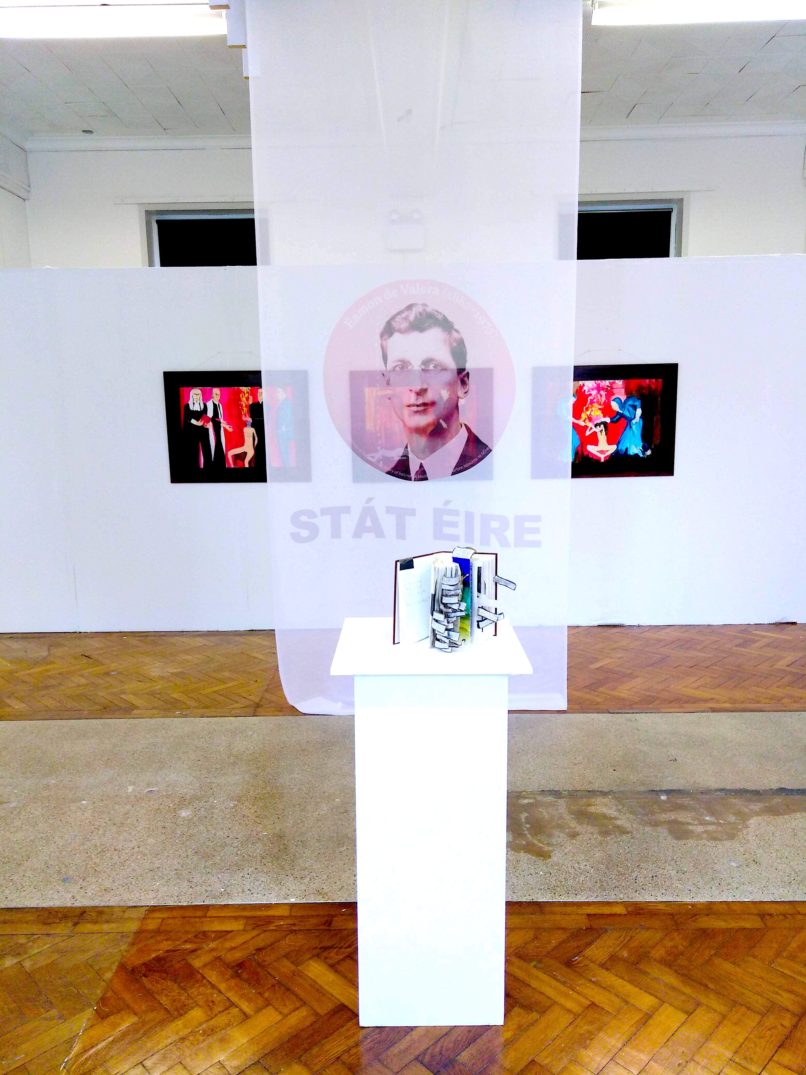 Free State is an installation of large canvas ink paintings book art and print on fabric.