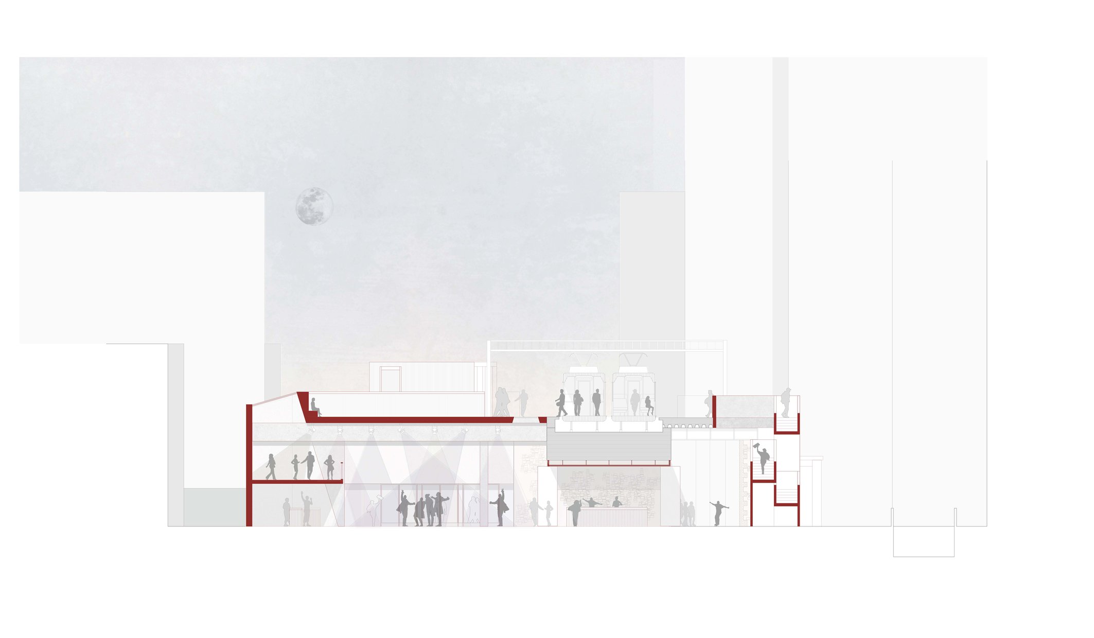 The following collection of work focuses on current displacement and commodification of cultural resources in Dublin. The project is situated in a district which provides a testing ground and provokes a strong contextual response due to difficult site situations and conditions. The design proposal investigates the extent to which these sites should be reclaimed as a cultural resource for the city.
