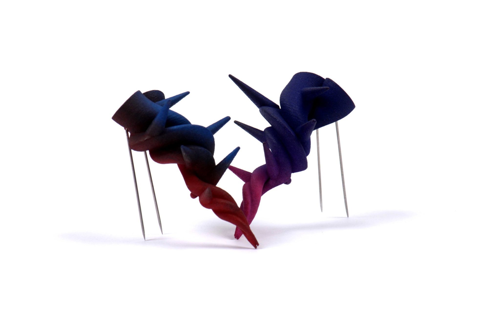I make wearable objects with an innovative approach to jewellery making using 3D printed plastic which I then dye by hand. My work deals with the process of gardening. the main source of inspiration comes from my mother’s garden, the sharp tools that she uses and the gradient colours of the flowers and vegetables she grows.