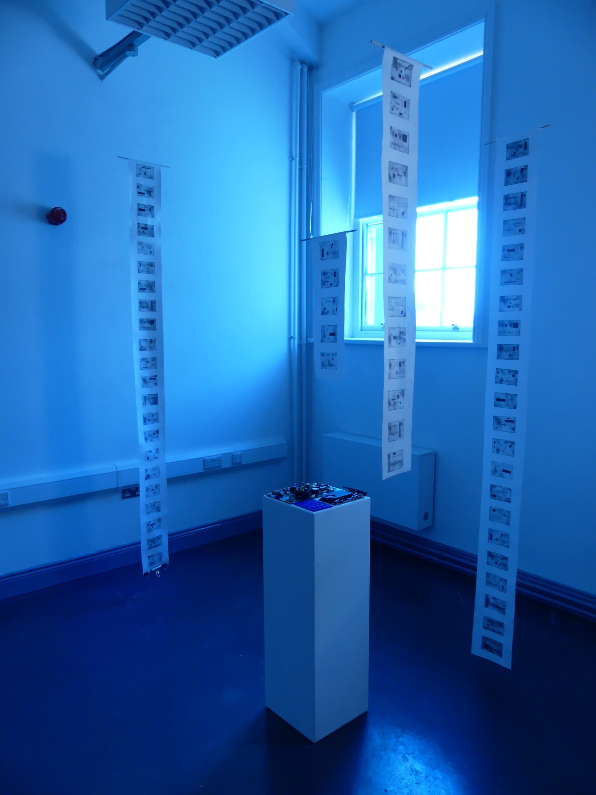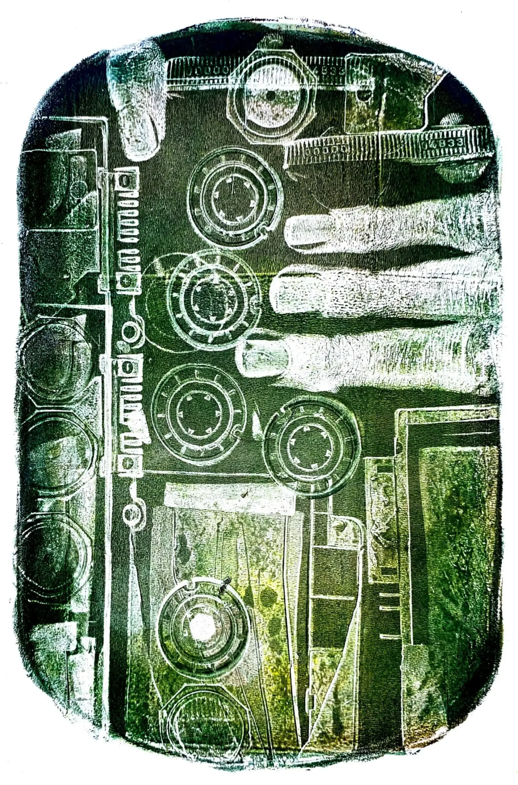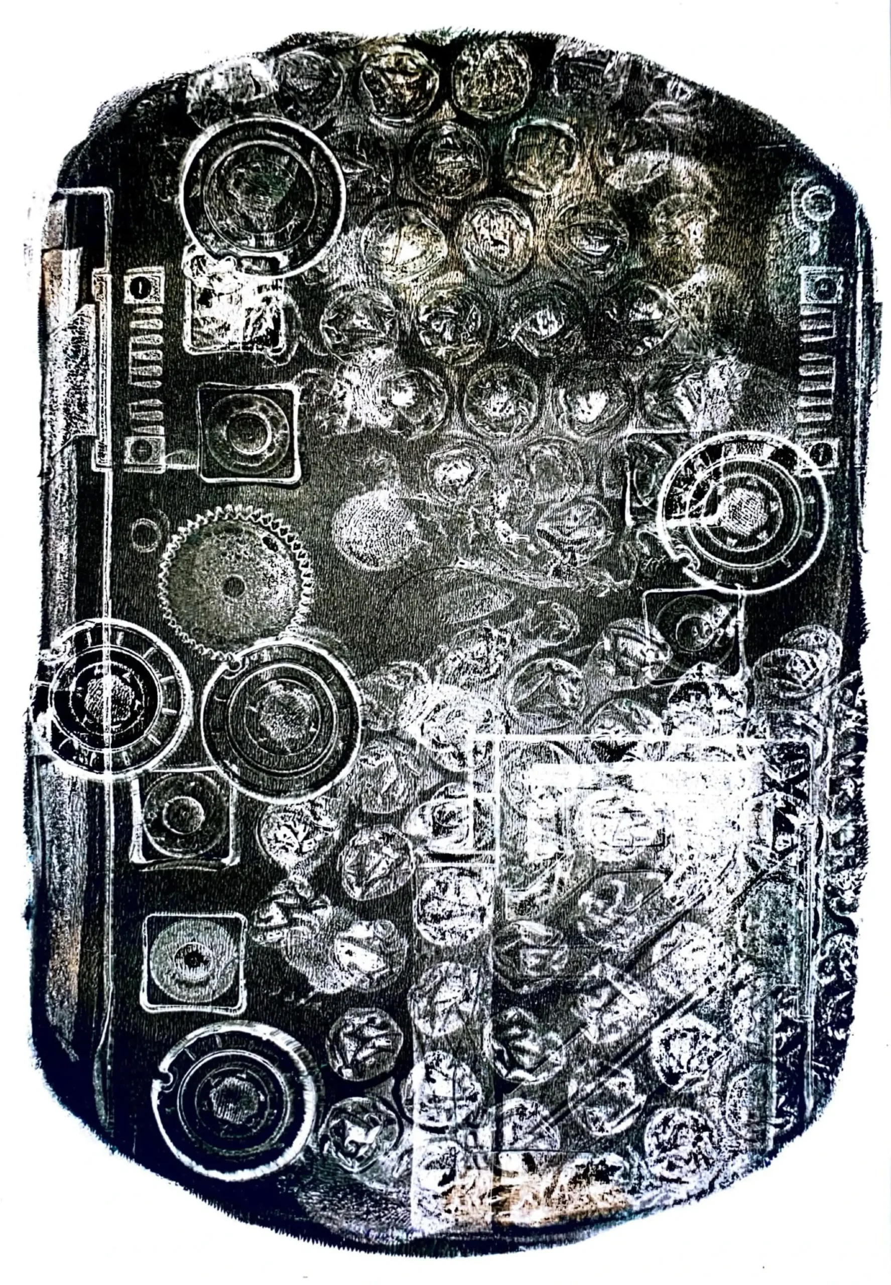 My work aims to draw connections between the ephemeral nature of data and its often-unconsidered long lasting physical presence within data centres. In my work I am interested in investigating the connection between the physical form our data takes as unreadable code in servers, and the idea of a monolith or standing stone with illegible or lost text. This idea of a monolith seeming unknowable and looming, mirrors that of a towering data server, containing millions of moments from thousands of lives, hidden away and out of sight. Its expanse striking within the viewer a sense of fear and awe. Many of my explorations are informed by shapes and textures drawn from a nearby site in LSAD focused on the storage and upkeep of data and technology. Influenced by the surrealist style of Joan Miro and Max Ernst’s abstract drawings and etchings, my work depicts this intangible yet physical life of data through both a softer dreamlike use of line and the more solid and repetitive formations. The disjointed nature of this contrast aims to create a sense of unease and disharmony within the work. By creating contradictions within my processes, I aim to subvert the notion of technological superiority, highlighting the inherent value in both modern and historical modes of production. Within my art teaching practice, I integrate my interest in the digital world into my lessons by prompting students to explore their connection to digital media and contemporary visual language through discussion around technology and AI. It is vital that the work students create have a connection to their lived experiences and with technology being a major part of our lives now, art should provide them with a space to consider this relationship.