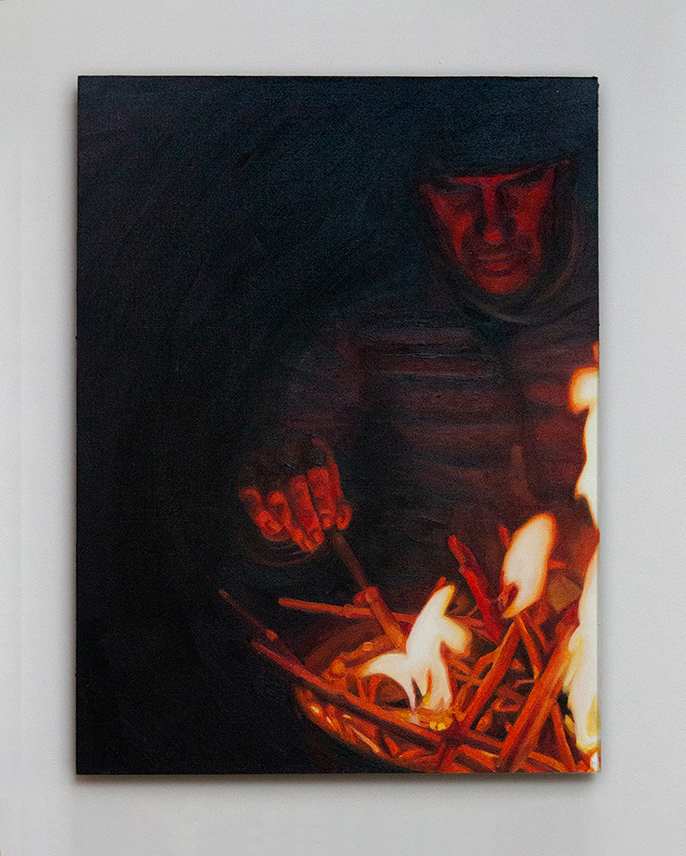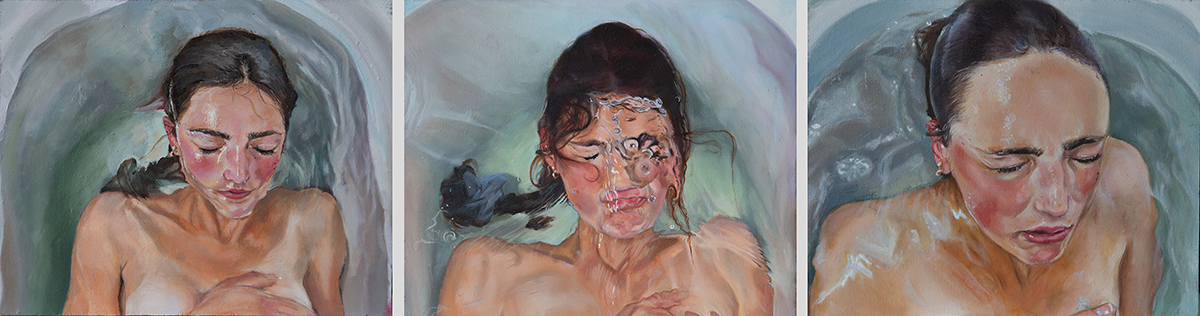 I use oil paint to illustrate scenes that she has photographed herself. I find a lot of inspiration in cinema and aim to show motion and life within the still medium of paint. I have been practising professionally as an artist for the past four years, creating and selling paintings.