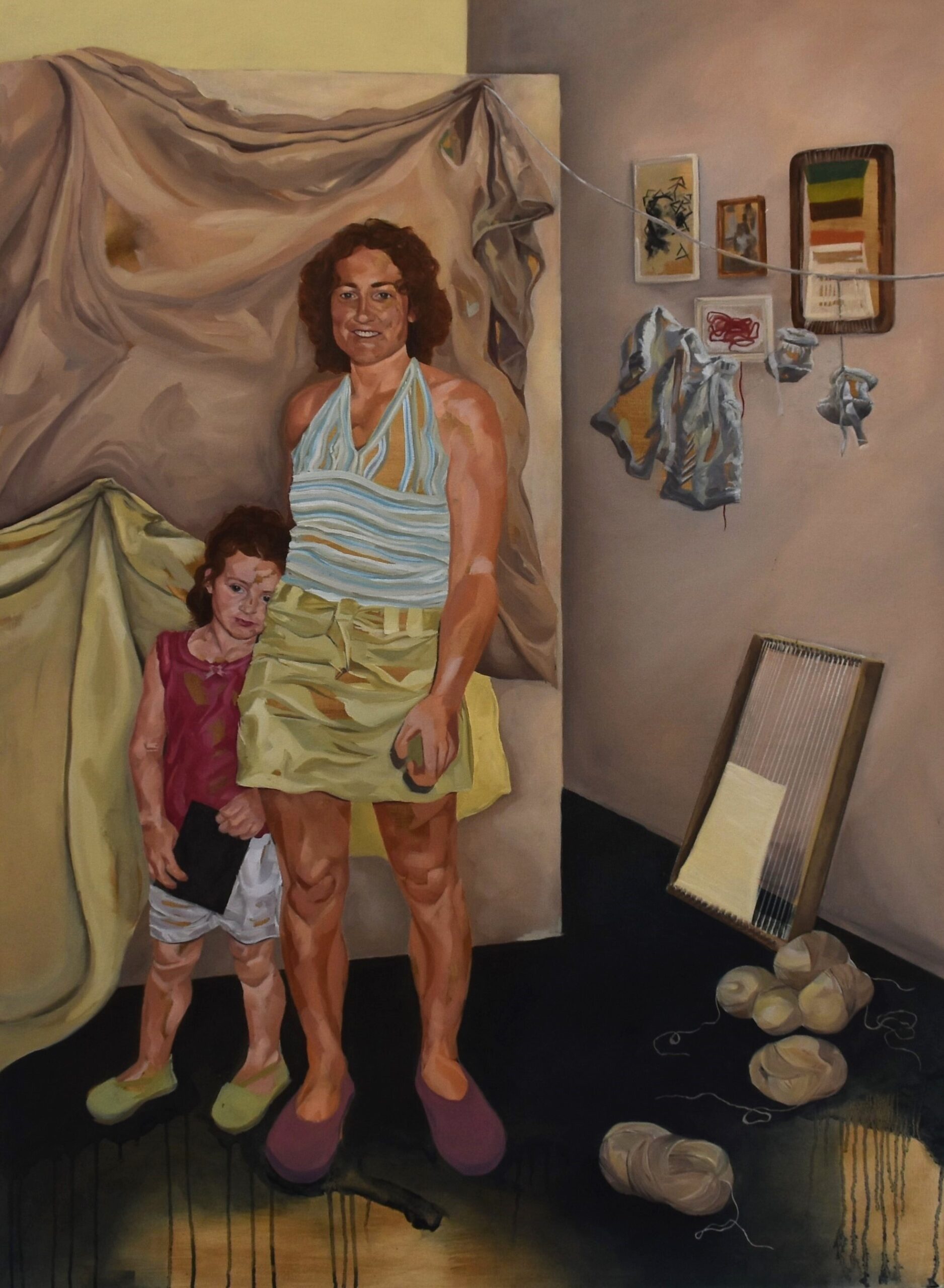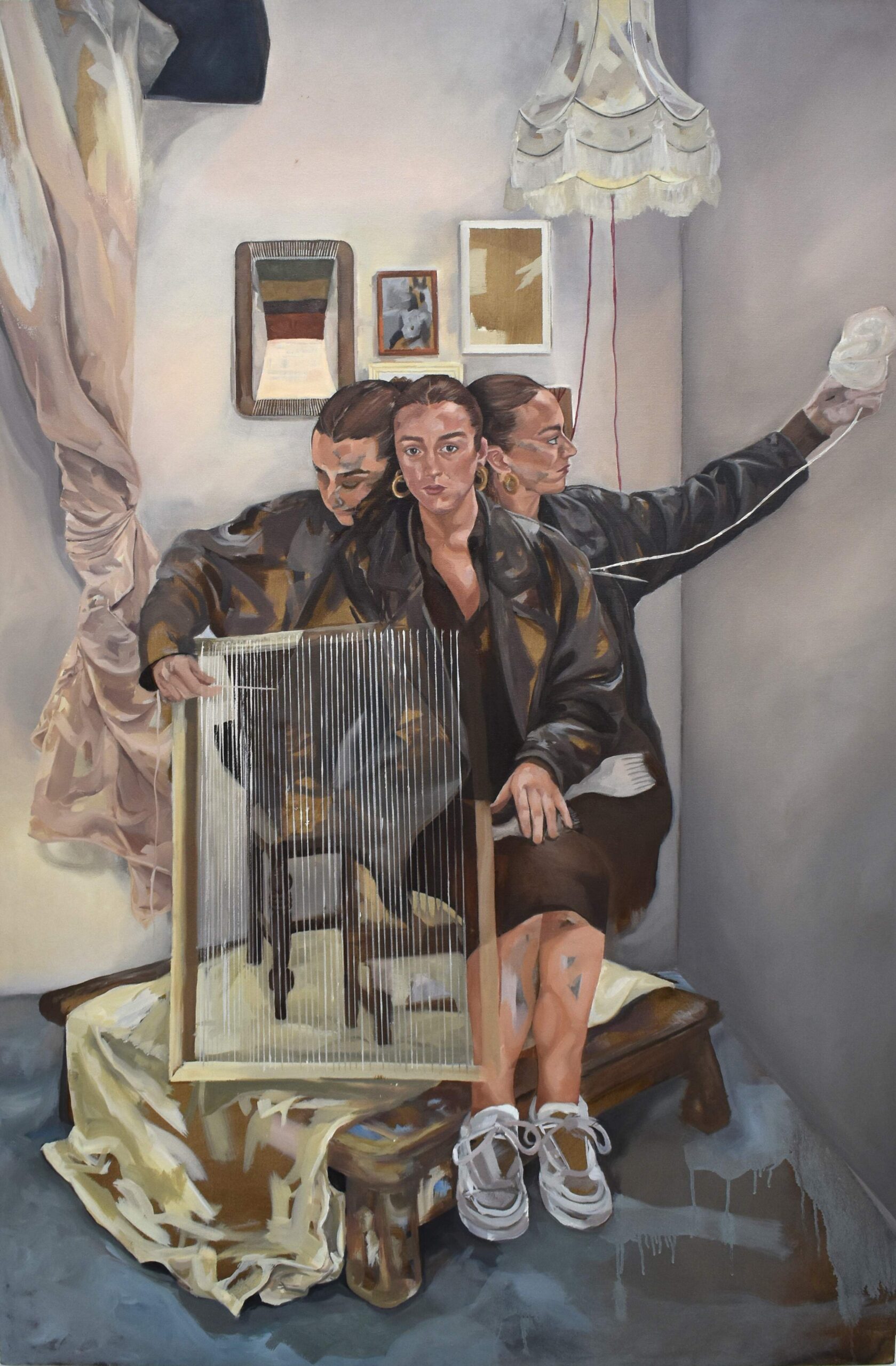 I am an artist who creates work based on my appreciation for the Irish and feminist weaving traditions. In this way, through making woven works, I become a performer of the craft, which I record and translate into paintings. My interest lies in creating a unique language between painting, textiles, and installation that can allude to the domestic space in a coded manner, suggesting the greater complexity of the traditions embedded within such spaces. I perceive myself as a weaver, emulating my female predecessors while simultaneously challenging the limitations imposed on women and the stereotypical, kitsch notions attached to soft materials within the art realm. Through painting, I document scenes and imagined scenarios that allude to the performance of weaving within the bounds of the home, my works depict notions of movement and journey through navigating a world unknown to me and the desire to become familiar with the traditional craft. My body of work depicts the transition from role-playing and performing as a weaver to embodying the true identity of a weaver. The finished woven works can attest to this transition and in their own right create an entry into a new, more permanent exploration within my practice.