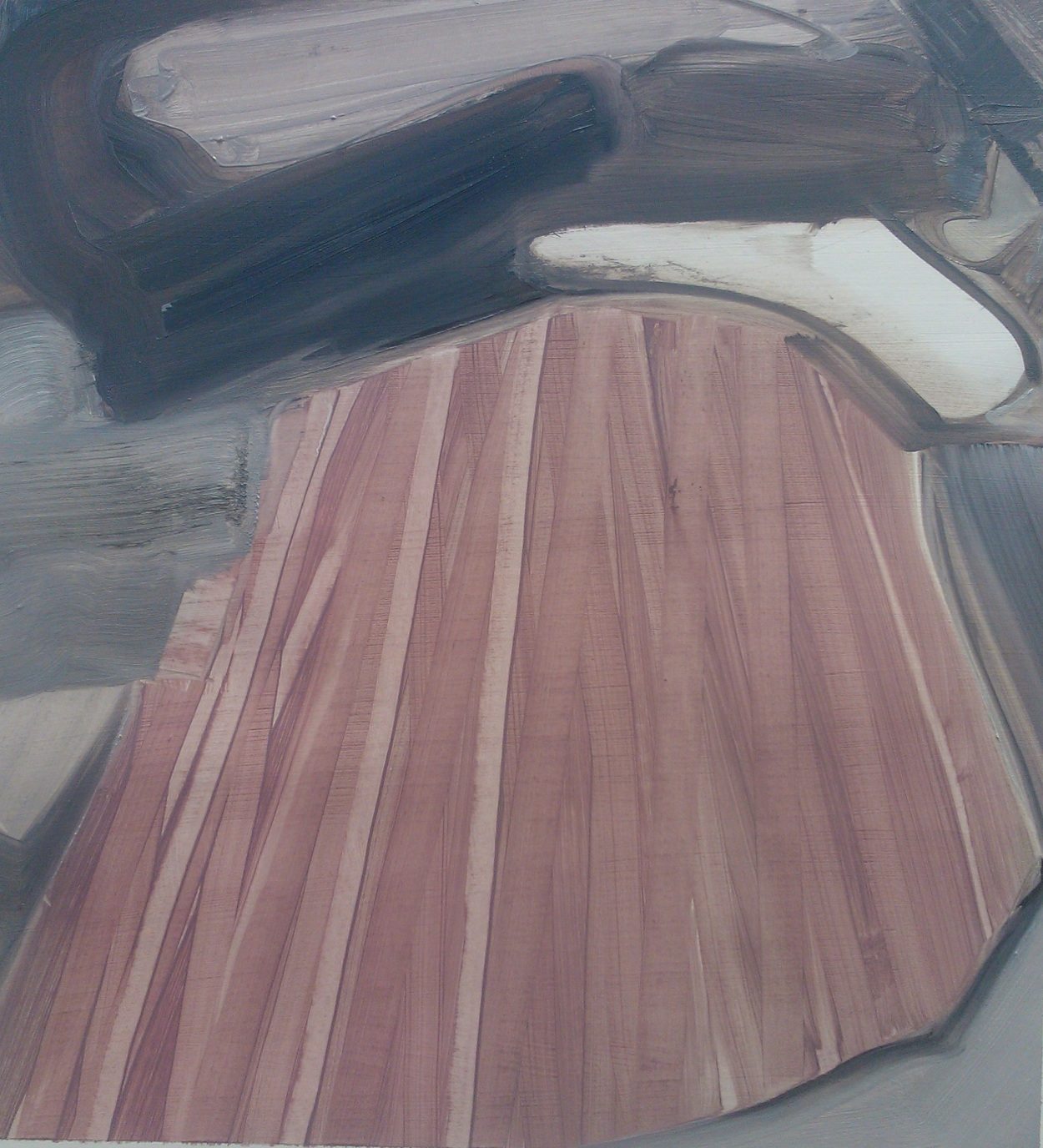 As a starting point for paintings, I use the concept of overviewing, both philosophically and actually as a way of looking. Turning away from representation, I invent and respond to the materiality of the paint itself. My interest lies in the friction and tension that occurs in the action of painting, particularly when I am when trying to balance apparent opposites like representation and abstract