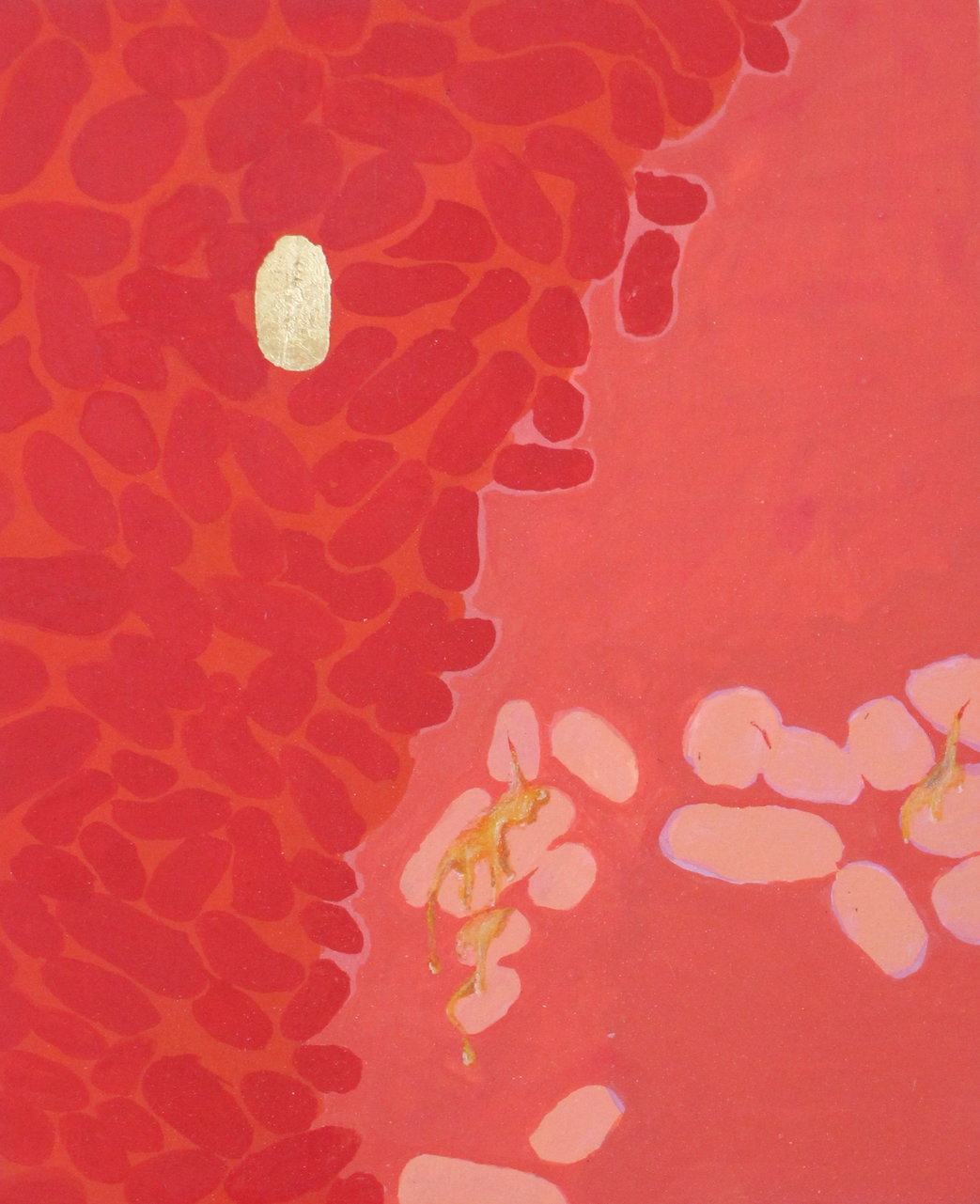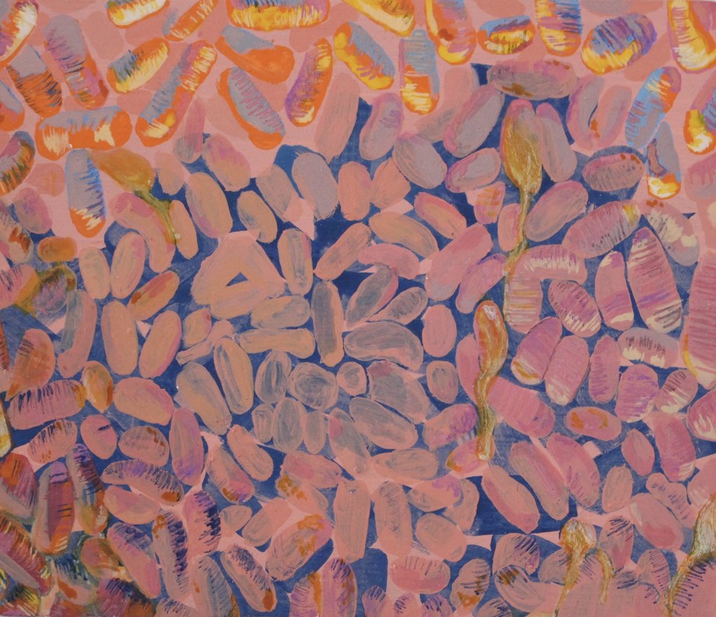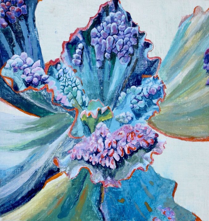 My work expresses the ebb and flow of divinity in living organisms. Bulbus, fleshy life forms in fresh and succulent colours multiply and surge in my work, spilling over each other and stuffing every available space, they ripen and burst, oooozing the seepage of new life. I use these beautifully ugly things to show the sacredness of life.