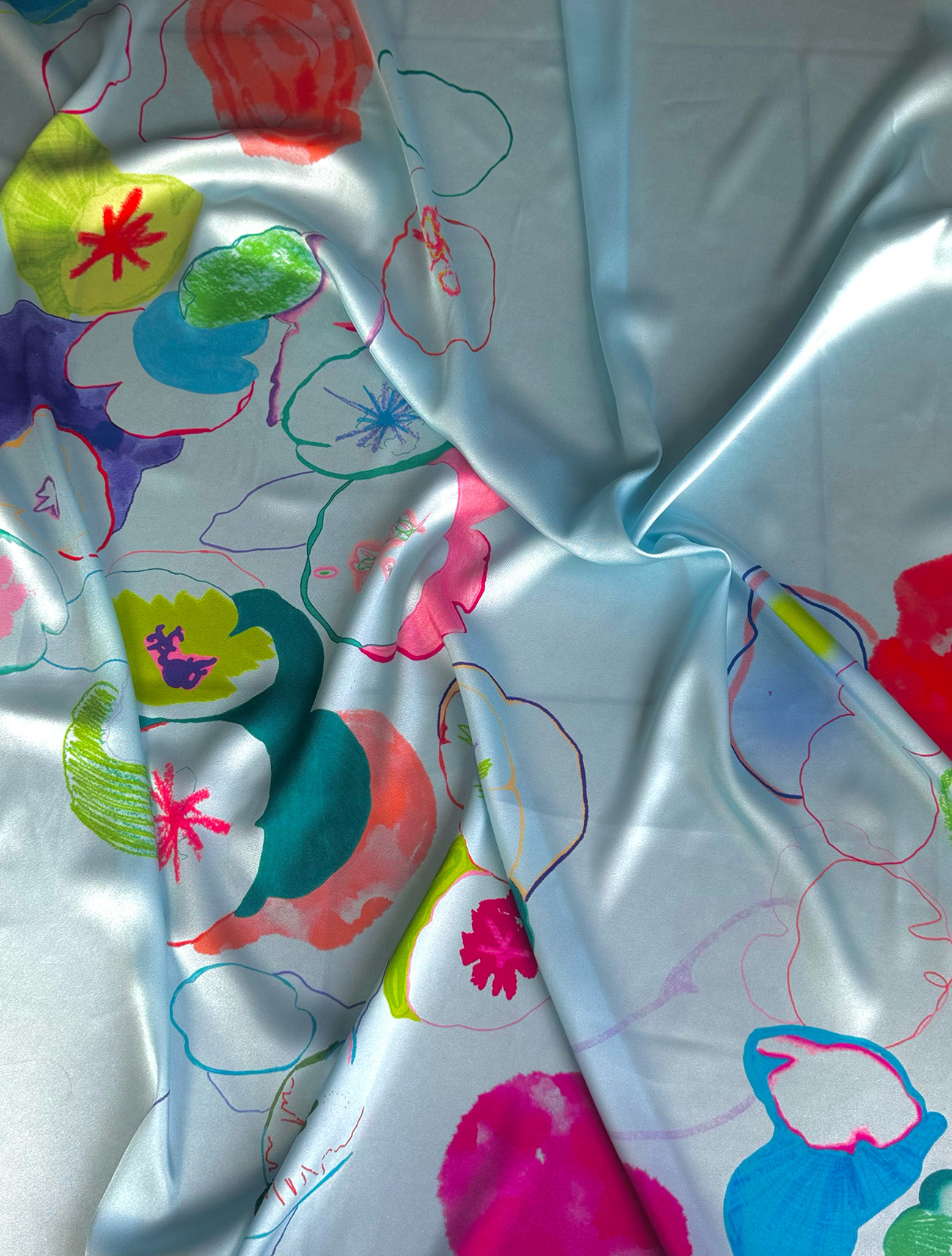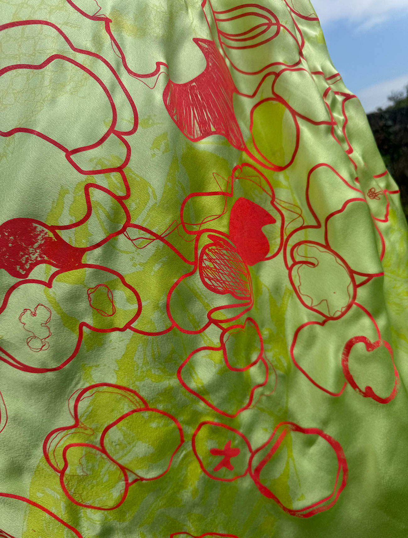 I chose to call this collection "Sun, It Rises" because it navigates themes of escapism,environmental crisis and the dreamlike lens of childhood innocence.This pairing of concepts not only evokes a sense of hope but also creates a touchingcommentary on our evolving relationship with nature and the realities of climate change. My aim for this collection is to show the intersection of hope, escapism and childhood innocence amongst a fragile environment landscape. 'Sun, it Rises' acts as a beacon of possibility in a time of uncertainty but also evokes the pure joy and simplicity of youth.By embracing these themes through a contrast of lightweight sheer fabrics like silkchiffon and organza to represent fragility and slightly heavier fabrics like silk satin and wool to represent the stubbornness of hope and humanity , this collectionencourages people to reflect on both their connection to nature and the urgency ofpreserving that beauty for future generations, ultimately encouraging a sense of hope that transcends challenges and draws from the innocence of our past.