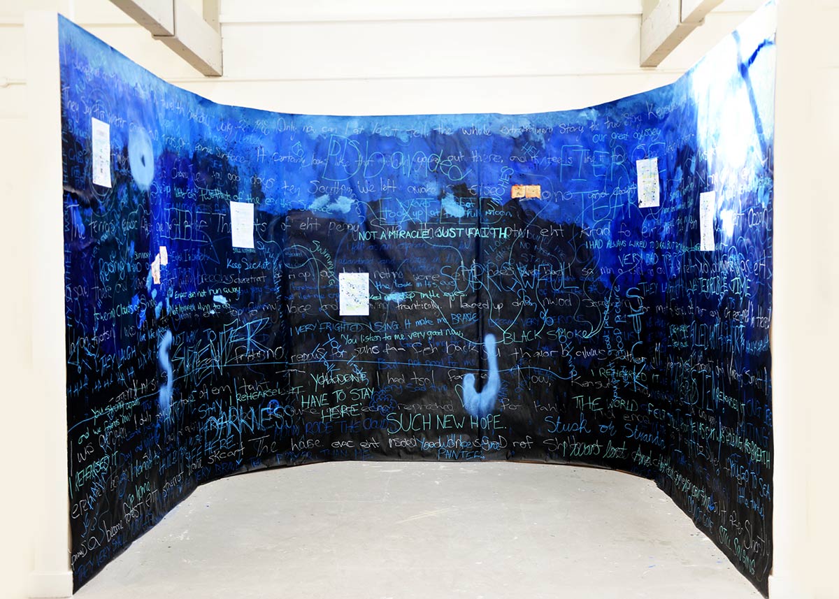 I am a multimedia artist working with painting, drawing, lens based media and performance, to reflect on the past and my personal experience of having dyslexia as a child. Through large scale immersive and gestural paintings, I frame my experience of dyslexia through a muse; a young child struggling to read.