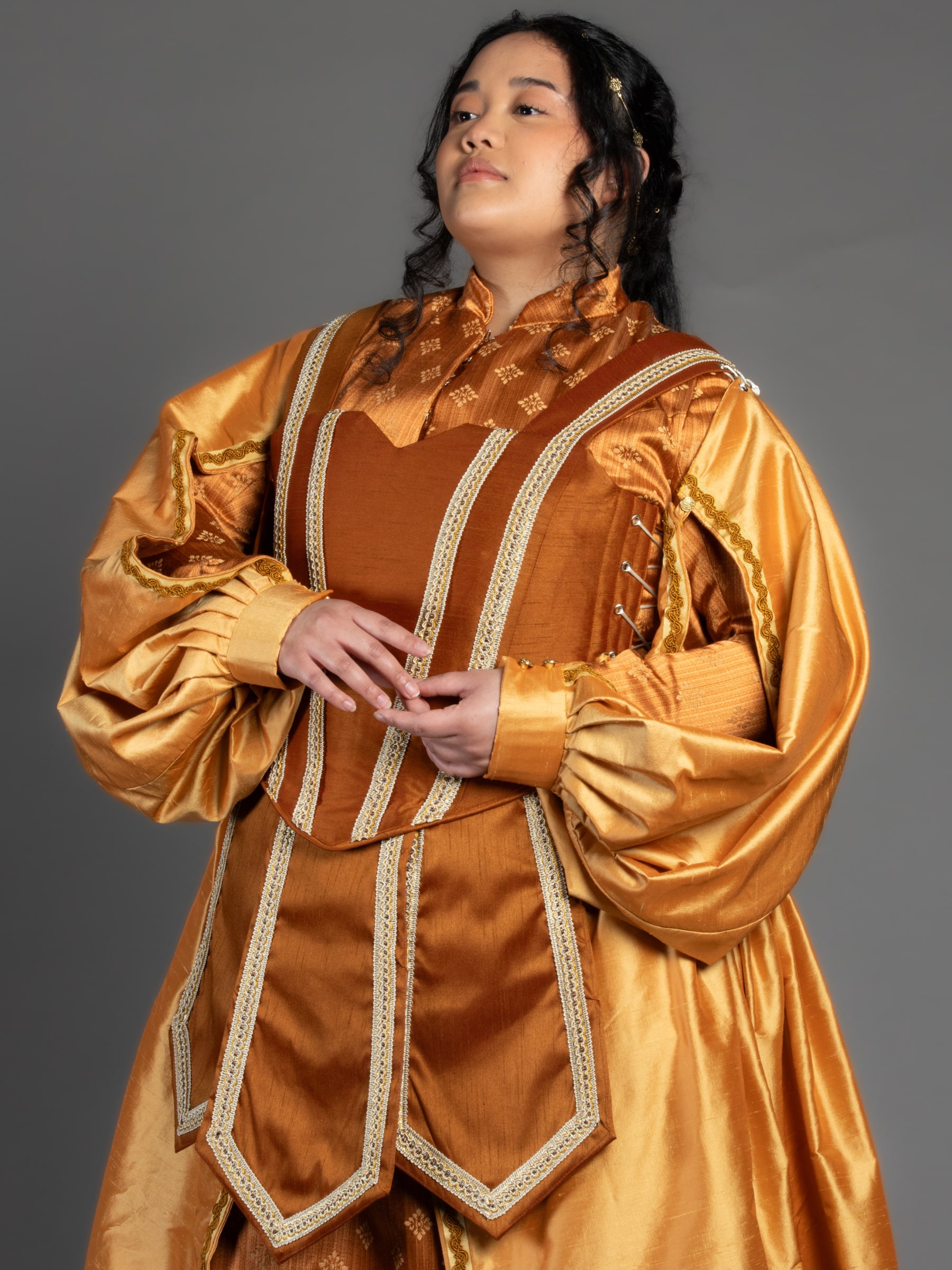 My name is Guia Macapaz and I am a Filipino-Irish costume designer and maker. Drawn to costume construction, I am interested in bringing stories and ideas to life through innovative design using high-quality technical skills. As a firm believer that costume and clothing help form our identity, I am eager to represent different people, characters and communities authentically and beautifully in film and theatre. For my Major Project, I chose to take the novel, The Alchemist by Paulo Coelho, and adapt it for stage. Wanting to explore the beloved story of Santiago and his journey of self-growth and self-fulfilment, I decided to set her adaptation in the 16th Century during the Renaissance Period, a time of enlightenment and exploration. I chose to base it in Mindanao, Philippines as a way to maintain the religious aspects yet explore new perspectives, as well as see what the Renaissance Period would look like in Southeast Asia during a time of colonisation. However, instead of colonial rule, it would be a cultural marriage. I wanted to achieve the ‘cultural marriage’ of the two cultures by designing and creating costumes inspired by silhouettes of the Spanish Renaissance with influences from the Philippines through their textiles and prints during the 16th Century. I have gained valuable experience in film and theatre, having worked with the NFS, and RIAM on two operas in the Samuel Beckett Theatre and the Project Arts Centre, and the Irish National Opera in The Gaiety Theatre.