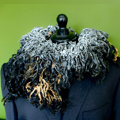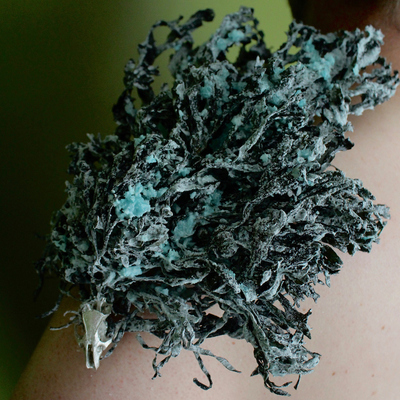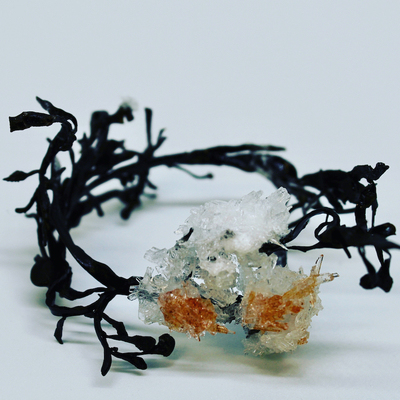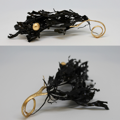 Through the use of readily-dismissed, low-value materials, such as seaweed and salt, I endeavour to produce desirable, high-value adornment. By instigating comparative discussion of my work with that of nonhuman-animal makers employing the same materials and techniques, such as decorator crabs, birds or dolphins, I aim to challenge the concepts of value, craft and adornment in the natural world.