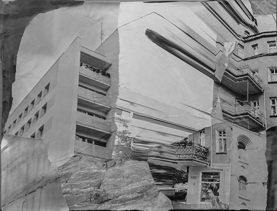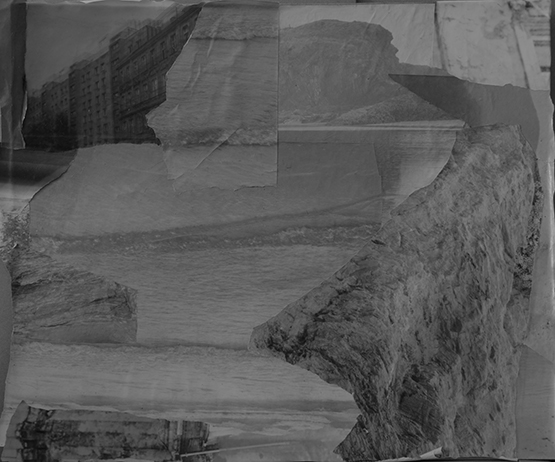 This series is a collection of photomontage works that are representations of landscapes that do not exist. I used Google Street View to document places of great personal significance in my hometown of Wrocław. Hand processed and printed sheets of negative film were combined by tearing and glueing with silver prints depicting Irish natural landscape. Both places that I call home became one.