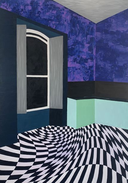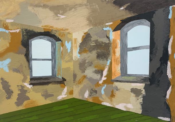 My work is heavily inspired by Our Lady's Asylum in Ennis, Co. Clare. It has a special place in the hearts of my family members and I wanted to pay homage to those who worked there and were patients there. I took an abstract-realistic approach to the makings of these works. I wanted to provide a second chance at life to the visuals of the asylum as it has been left to decay since March 2002. As this series progressed I found the works began to draw me in further to the building itself and to more manic visions. This contributed to the last piece in the series being a diptych that can be shown together or separated, a mirrored painting with inverted colours to portray the mania and the sanity that was present in the asylum at all times.