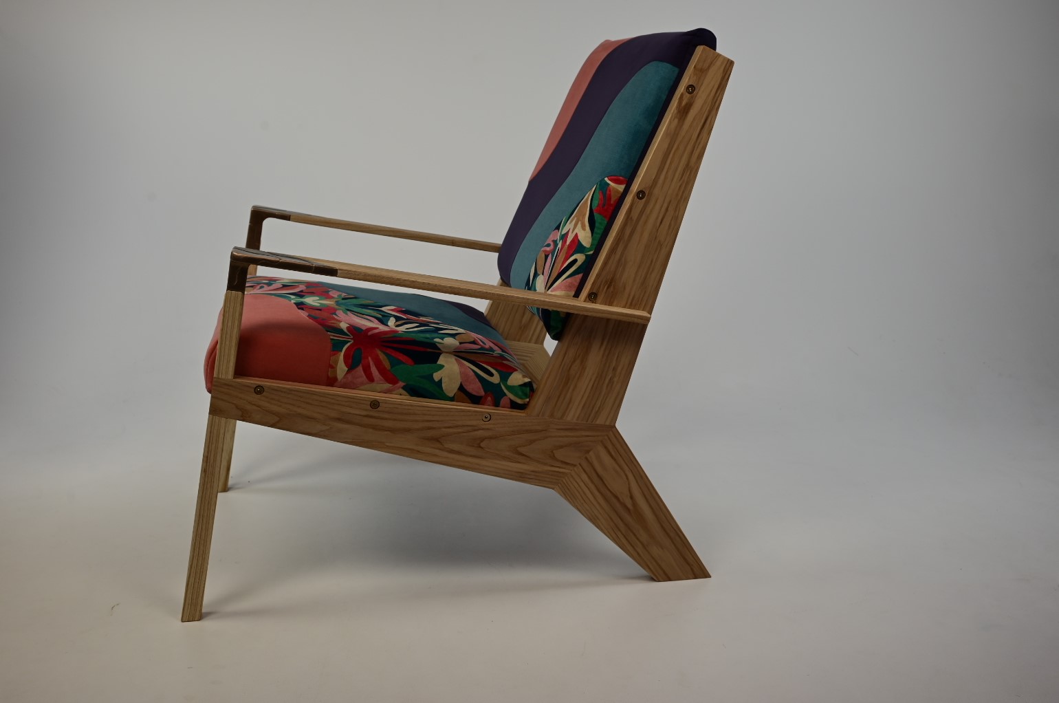 I am the third generation of furniture design/makers in my family and have always had a strong awareness of craft and design. However, it has been my studies (Furniture Design and Manufacturing at ATU) and travels that have shaped what I would like to contribute to contemporary craft and design. My interest is in the circularity of materials and function, while being conscious of environmental impact without compromising the design. My thesis project, the “Margaret 24” lounge chair, named after my late grandmother, has a minimalist ash wood frame, inspired by Danish Minimalism, and replaceable covers. The cast bronze handles if heated will expand and release from the ash and can be melted down into something new. The seat is a collection of scrap fabric from an upholstery factory quilted together. This piece represents the philosophy which guides my practice: three unique crafts presented in an elegant, contemporary, and sustainable way which has room to adapt.