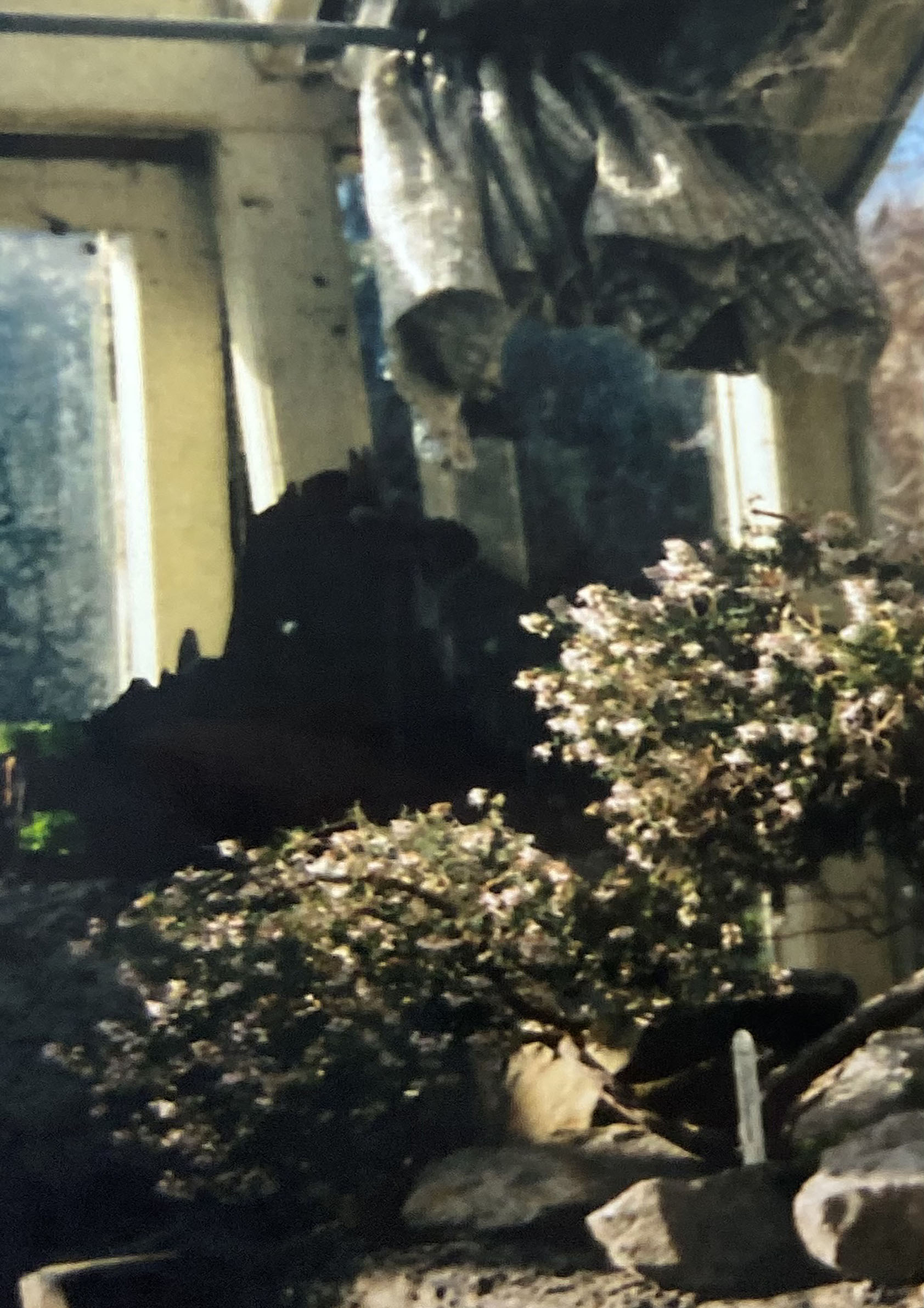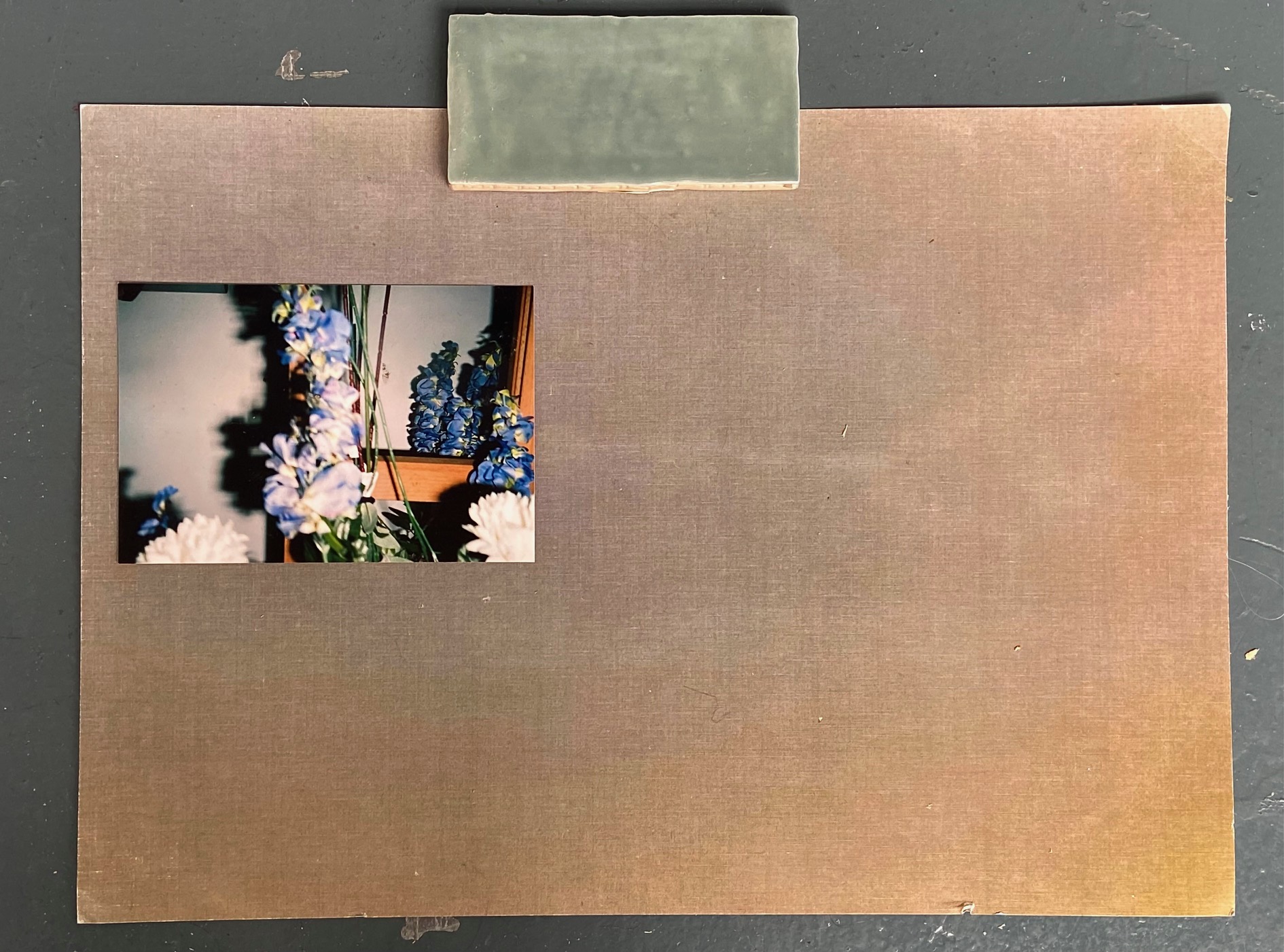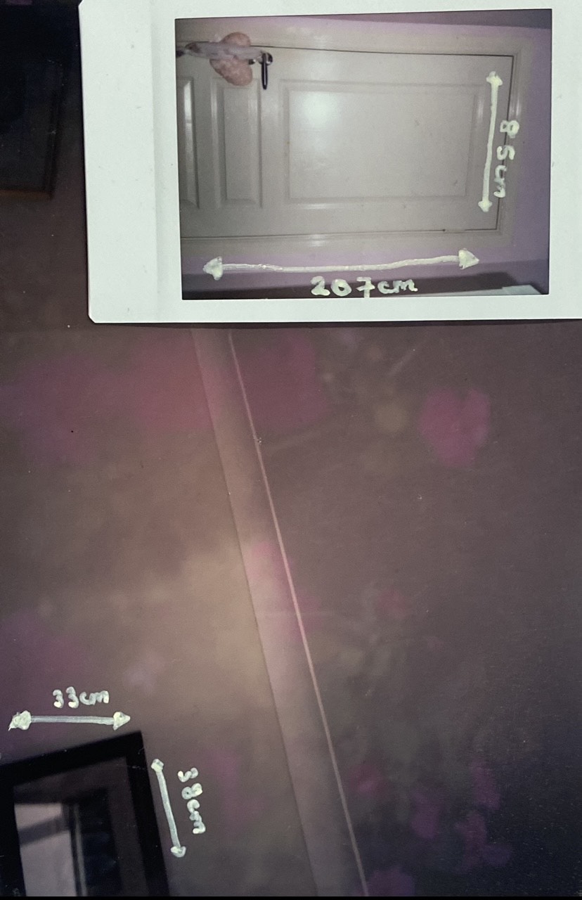 Emulsioned Botanics (fairy dust V1700Y) photographically explores three spaces, my bedroom, my back garden, and the Botanic Gardens. Taking photos of these three spaces using a variety of photographic methods, Polaroid, digital, analogue, and slides, I draw architectural plans from one photographed space, onto another. Reflecting on Dawn Ades's exploration of linear elements and structural patterns, the work is concerned with creating spatial articulation images of different resolutions and print qualities. I explore the embodied presence of concrete measurements being redescribed onto personal photographs creating intimate blueprints. Taking Polaroid photos from my bedroom and pasting them onto 35mm prints of my garden and the botanic gardens, I draw measurements upon them. The attention to accuracy in drawing over these photos, and the job of recalling of measurements, allows something unconscious, as if in a daydream, to leak through, and the photos exist as proof of this lived experience. The work involves non-conventional display mechanisms and arrangements. The polaroid is used in the display mechanism of the prints, being a spine within each constellation of images and using the measurement 1.6cm the (base of the polaroid) as a distance between them. Images are hung with one or two pieces of scrapbook tape, and painted masking tape, from 3cm to 20cm in length. Two A1 Inkjet print, taken from a miniature polaroid, with the architectural plans for the Fern house in the Botanical Garden drawn upon one, placed on the floor, next to an old bathroom tile with an artefact from my garden, as well as a polaroid from inside the fern house, and an older over exposed photo from my parents’ wedding. Through this collection of elements, I question what photographic prints of different values reveal to one another. The work incorporates a series of lumen prints entitled ‘This was made on my windowsill’ that capture lunar and solar movements throughout my bedroom, with dusty pinks and lavenders regressing next to yellow shapes. The lumen prints incorporate a list of pink colour names, such as ‘Angel Kiss’ to ‘Valentine’s Memories’, exposed onto them, creating a script or description of the pink colours used to draw measurements. The lumen prints are displayed a 2.3 m piece of MDF that runs perpendicular to the edge of the window within the space. The grid is also a persisting element in the individual artworks and the display mechanisms. The grid is a structure that can bridge the two realms of the unconscious and scientific. It is used in 35mm slide projections, where the slides and negatives changing at intervals of 30 seconds, are double-exposed images of my house and its surrounding exteriors. Emulsioned Botanics is a constellation of photographic qualities and domestic descriptions.