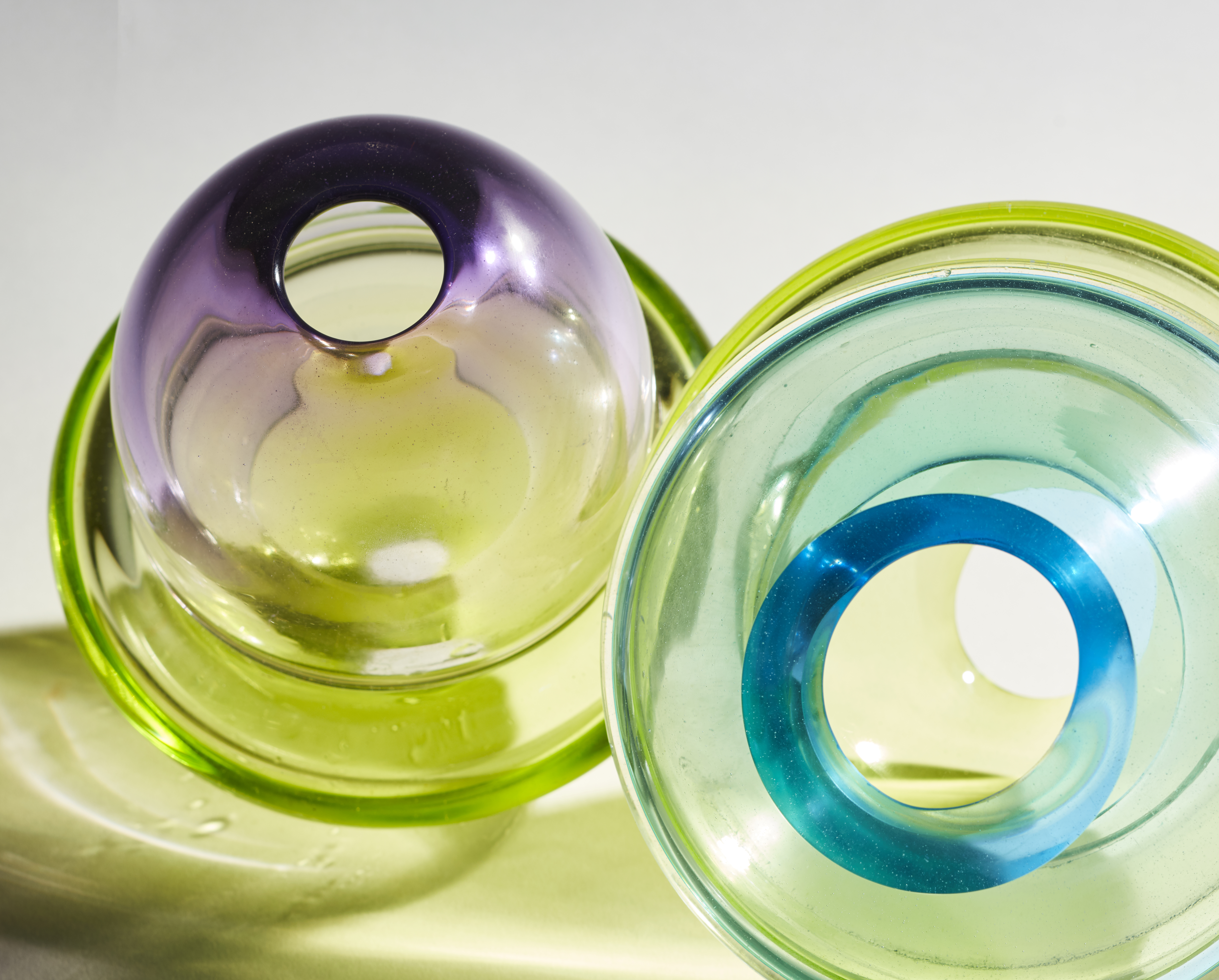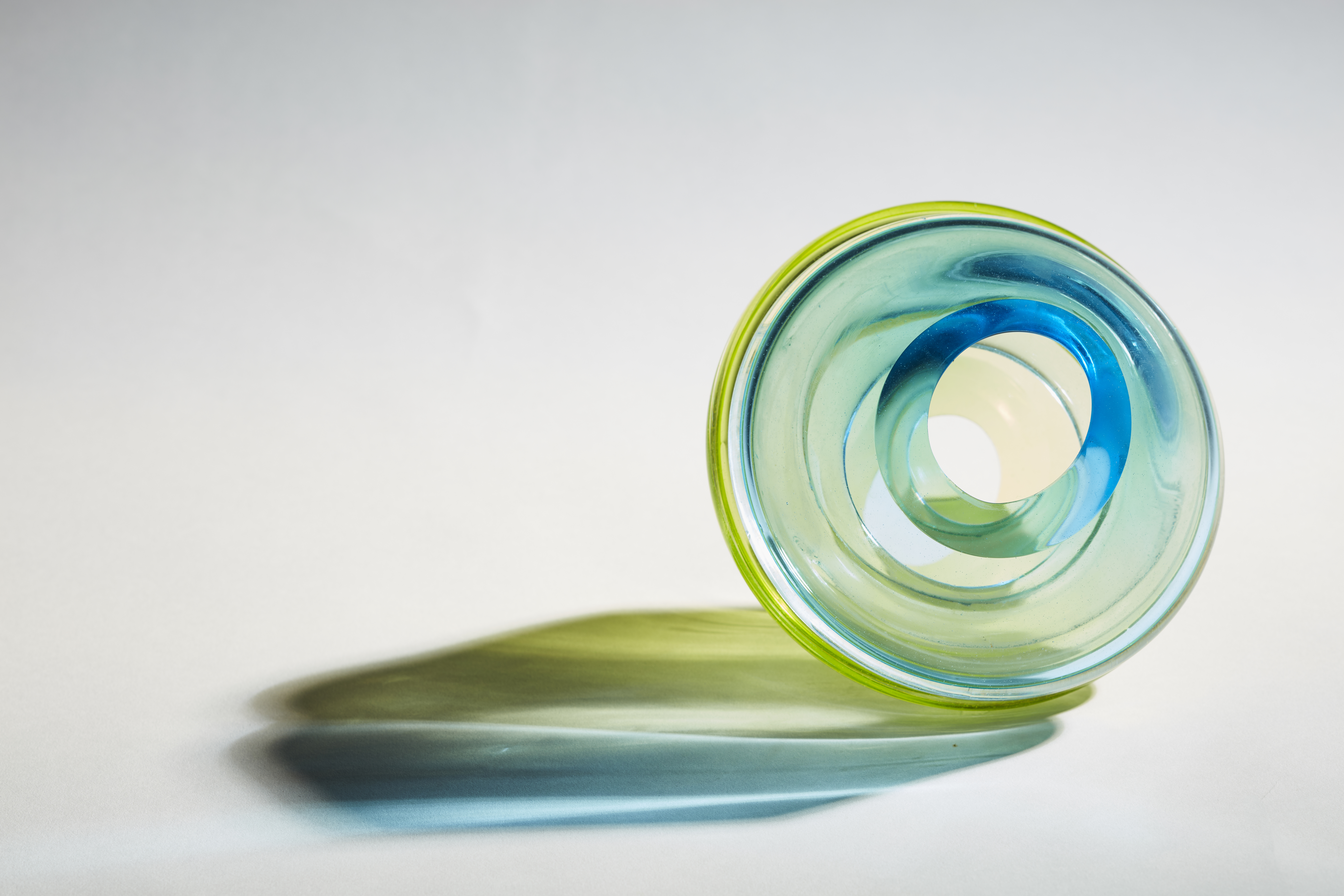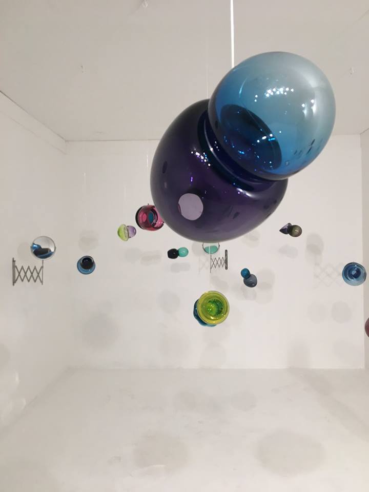 I have a great love for colour and kaleidoscopes. In particular, I love how colours interact with each other and blend in together to create another colour. My installation Kalidia, experiments with the movement of forms created in vibrant translucent colours. I am also playing with how the light interacts with the glass and creates new colours through movement.