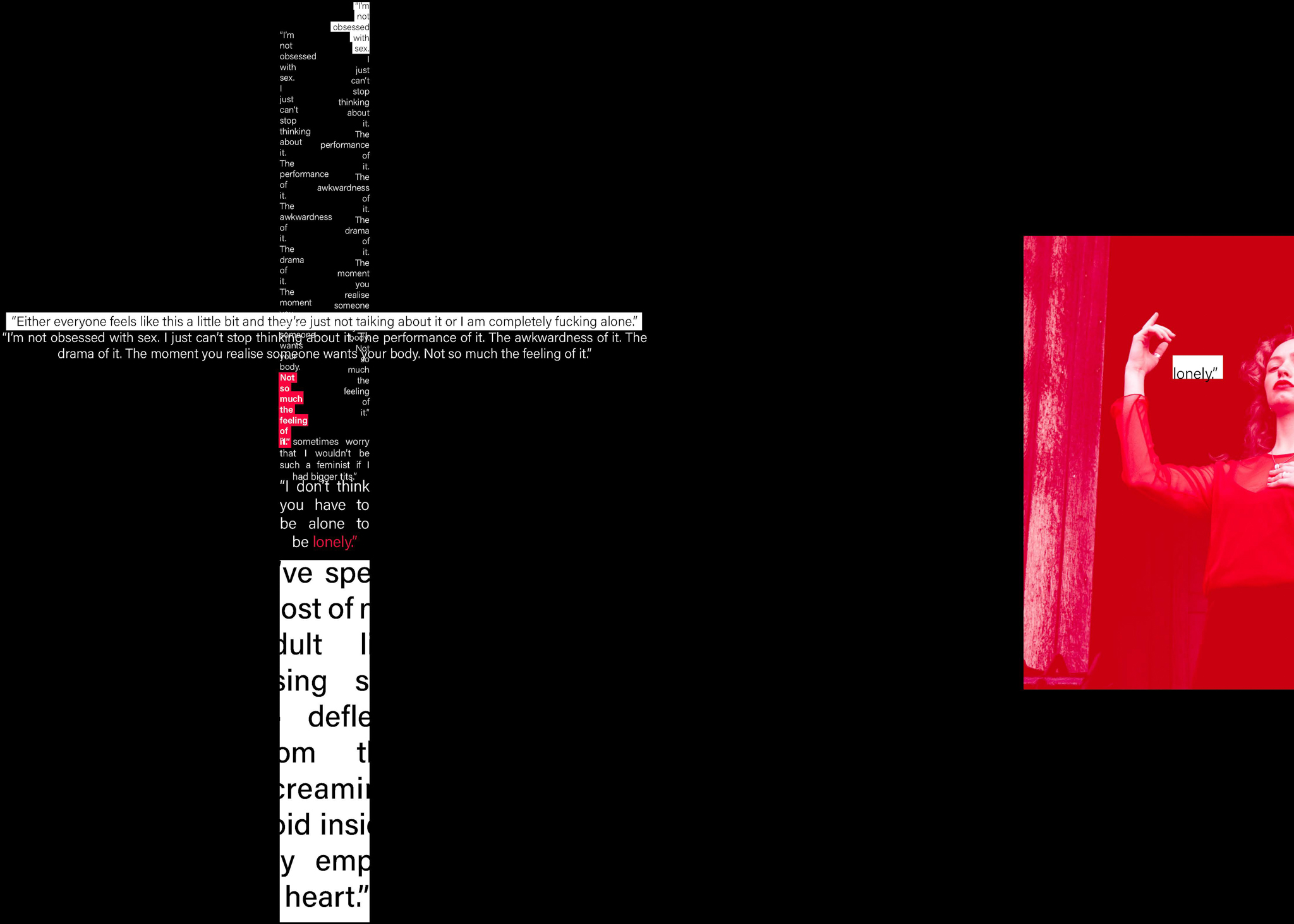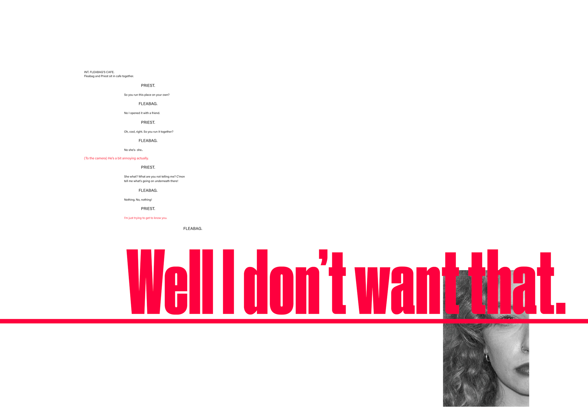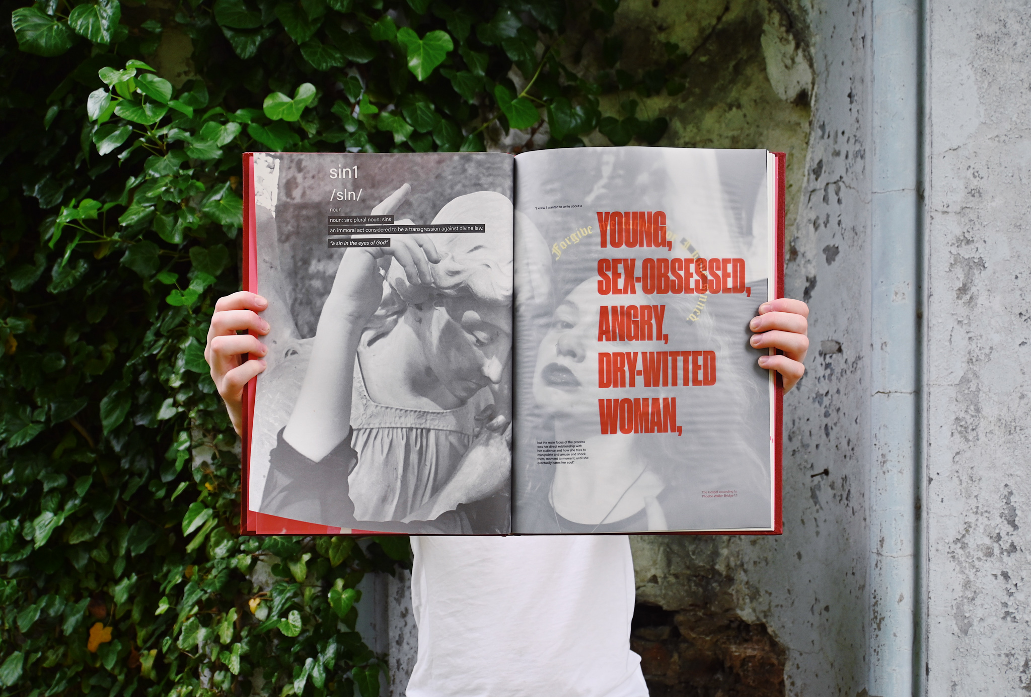 ‘Sin’ is my response to the television show Fleabag, by exploring the themes of Grief, Sin and Confession as seen within the show, through publication. The project first originated from my interest of analysing film and television shows, exploring the themes, symbolism, characters, and overall meanings behind them. This sparked the beginning of this project, stemming from a strong interest in designing for the media. Fleabag conveys themes such as feminism and self-worth in a refreshing way that defies many stereotypes that are usually seen with television depicting women. In Season 2 of the series, the protagonist (Fleabag) is presented with a complex romantic relationship with a Priest, introducing the themes of Sin and Confession into the book in a modern context. In regards to design choices, I thought that these themes were most interesting to develop and explore. This publication is a personal interpretation of these themes in relation to the television show. Regarding strategy, there would be three books published in total as promotion to the program titled ‘Grief’ ‘Sin’ and ‘Confession’. What I present in my open project is volume two of the trilogy titled ‘Sin’.