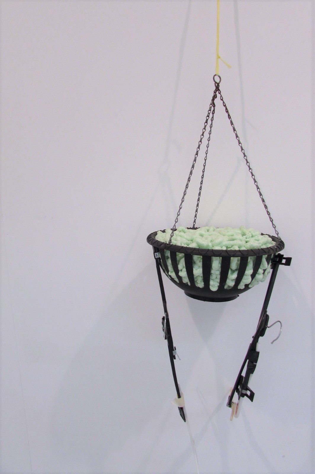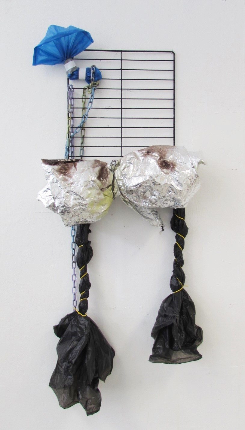 Using found objects and domestic materials which converts through the processes of re-configuring the objects into sculptural abstract body forms. Exploring found objects and how each object as methods of communication. There is a very physical process effect to the work with layering, cutting, breaking, adding, covering, folding of the materials. Influenced by Mona Hatoum and Lynda Benglis.