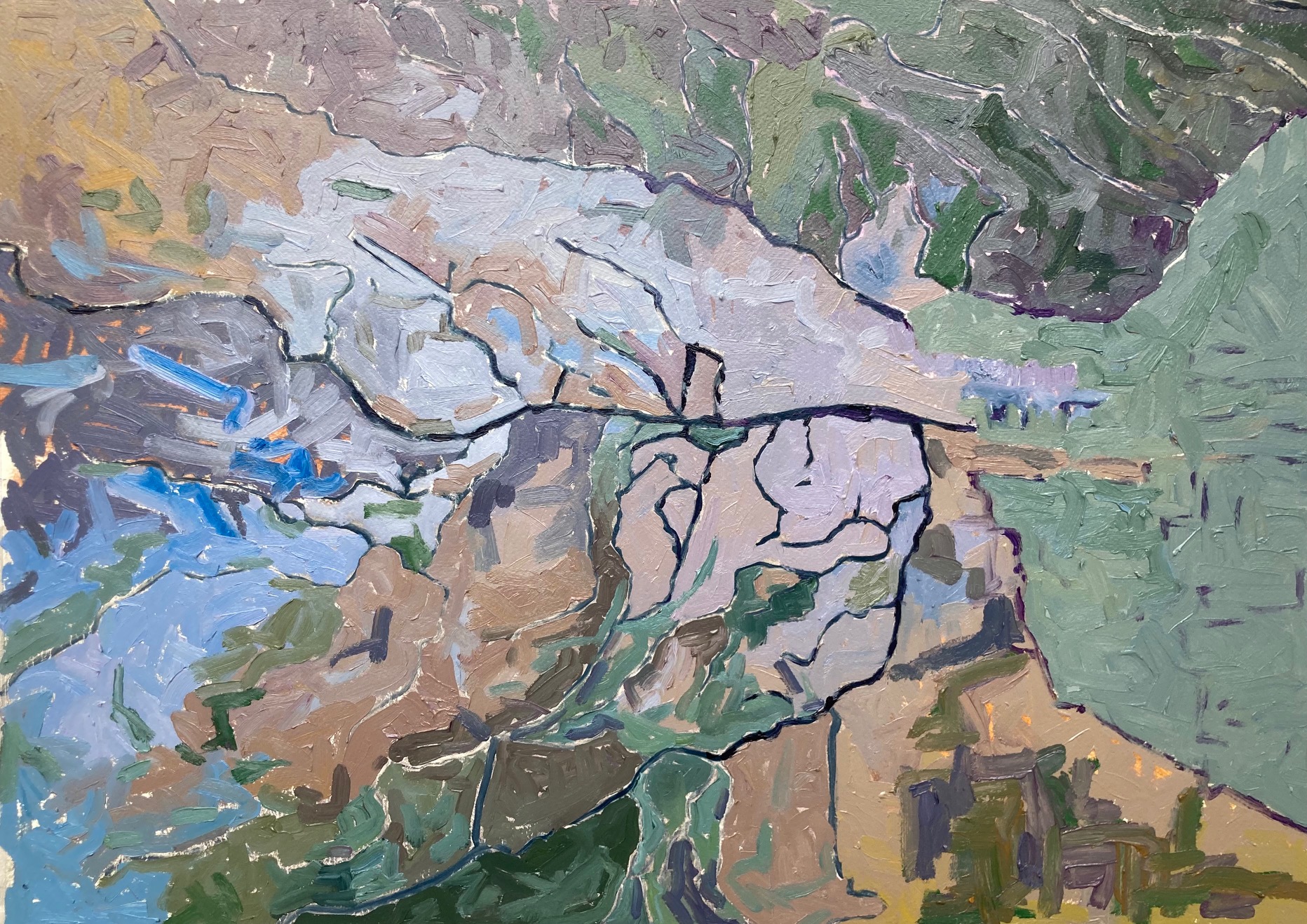 I, John Kelleher, have recently graduated from NCAD where I studied painting and am continuing to study paint at the RCA. My work is informed by my interests and experiences while living in Dublin. I often implement the city as a subject matter into my work; inspired by a geographical fascination with the watercourses that flow through the city. I have explored the field cartography and historical overlap with these sources.The world of craft and its contemporary context is of integral importance to myself. Its history and role in the life of the craftsperson has absorbed me and been a great part of the inspiration for my work.