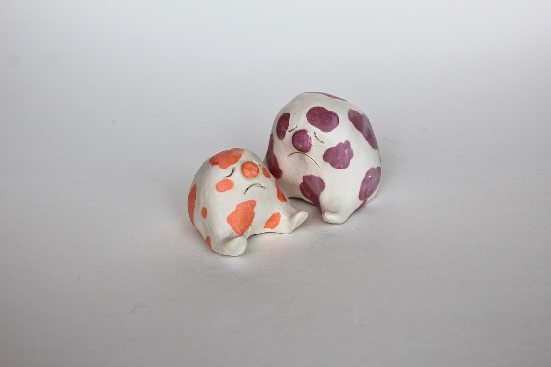I am an illustrator and sculptor who specialises in working with ceramics. My expertise in these diff erent mediums allows me to seamlessly blend ideas together and corporealise concepts of emotion and introspection. My primary thematic interests surround love and connection, and I seek to further understand myself and the world around me through the creation of diff erent characters and narratives. I am inspired by artists such as Paul Klee and Anne-Sophie Gilloen, who use childlike whimsy and dreamlike imagery in their works.Autoethnography has been the main driving force of my practice, mostly concerning mental health or neurodiversity. I work intuitively, and seek to express feelings and desires I previously would not want to confront: in this way, my practice is deeply therapeutic and self-validating. My ceramic fi gurines imbue an essence of sadness and vulnerability, as their creation is an therapeutic exercise in abstract self-portraiture.