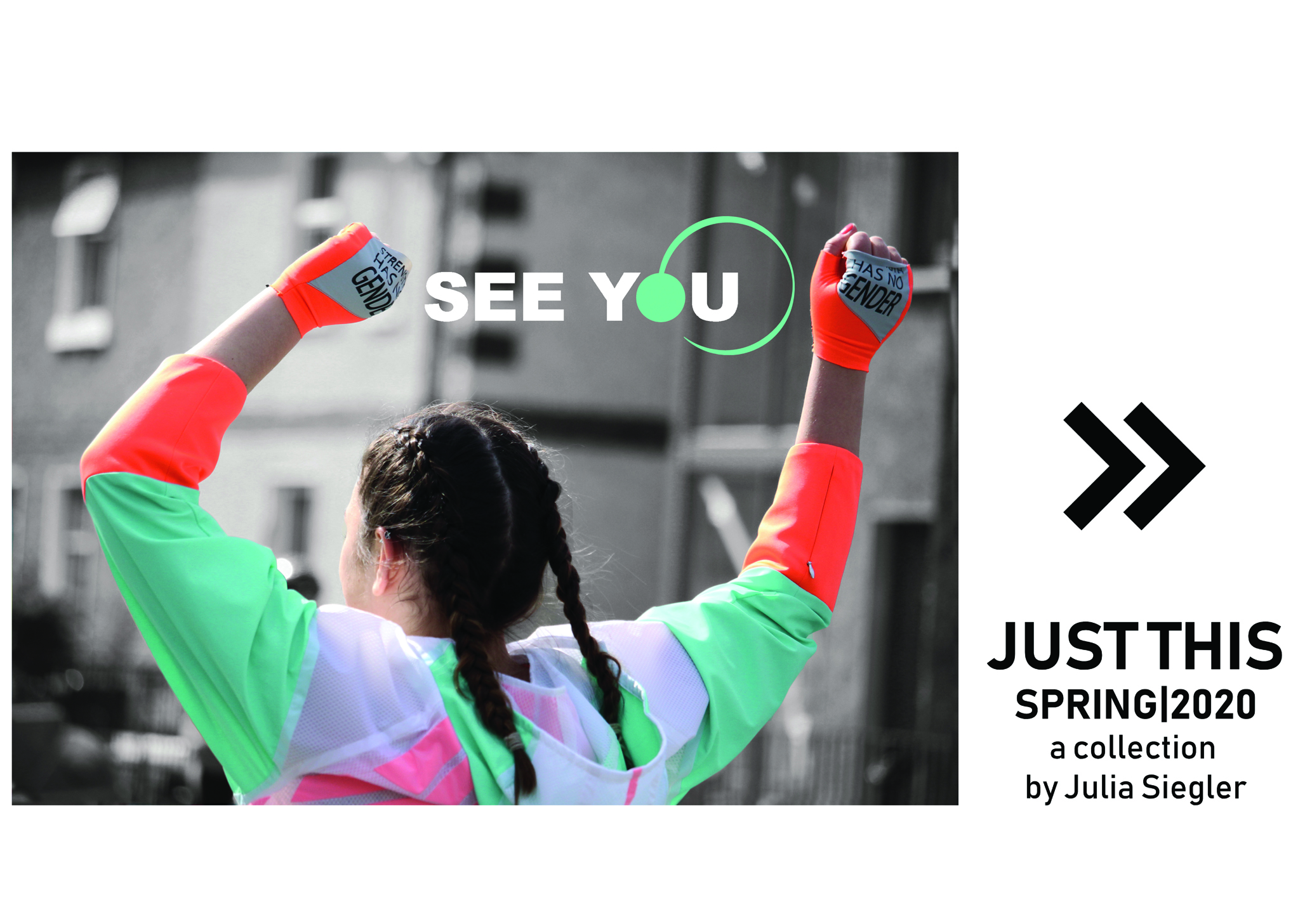 My S/S 2020 active-wear collection JUST THIS is inspired by strength and our achievements over the past 60 years in terms of equal rights. 1940-1950, the time after WWII when women started working, wearing trousers and fighting for more equality was put into focus. I was using recycled polyester, organic fabrics, fabrics with function and a new way of creating patterns by upcycling fabric waste.