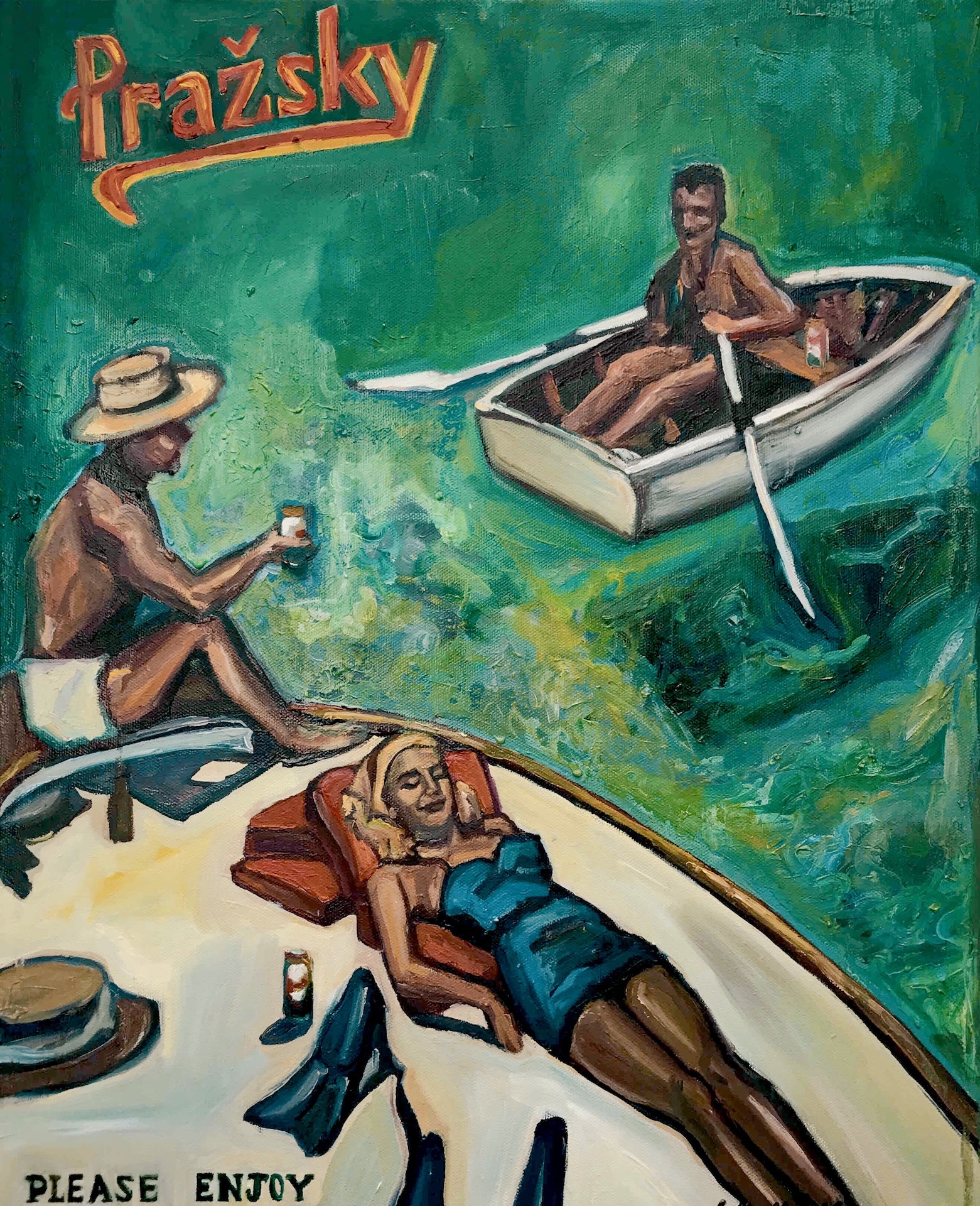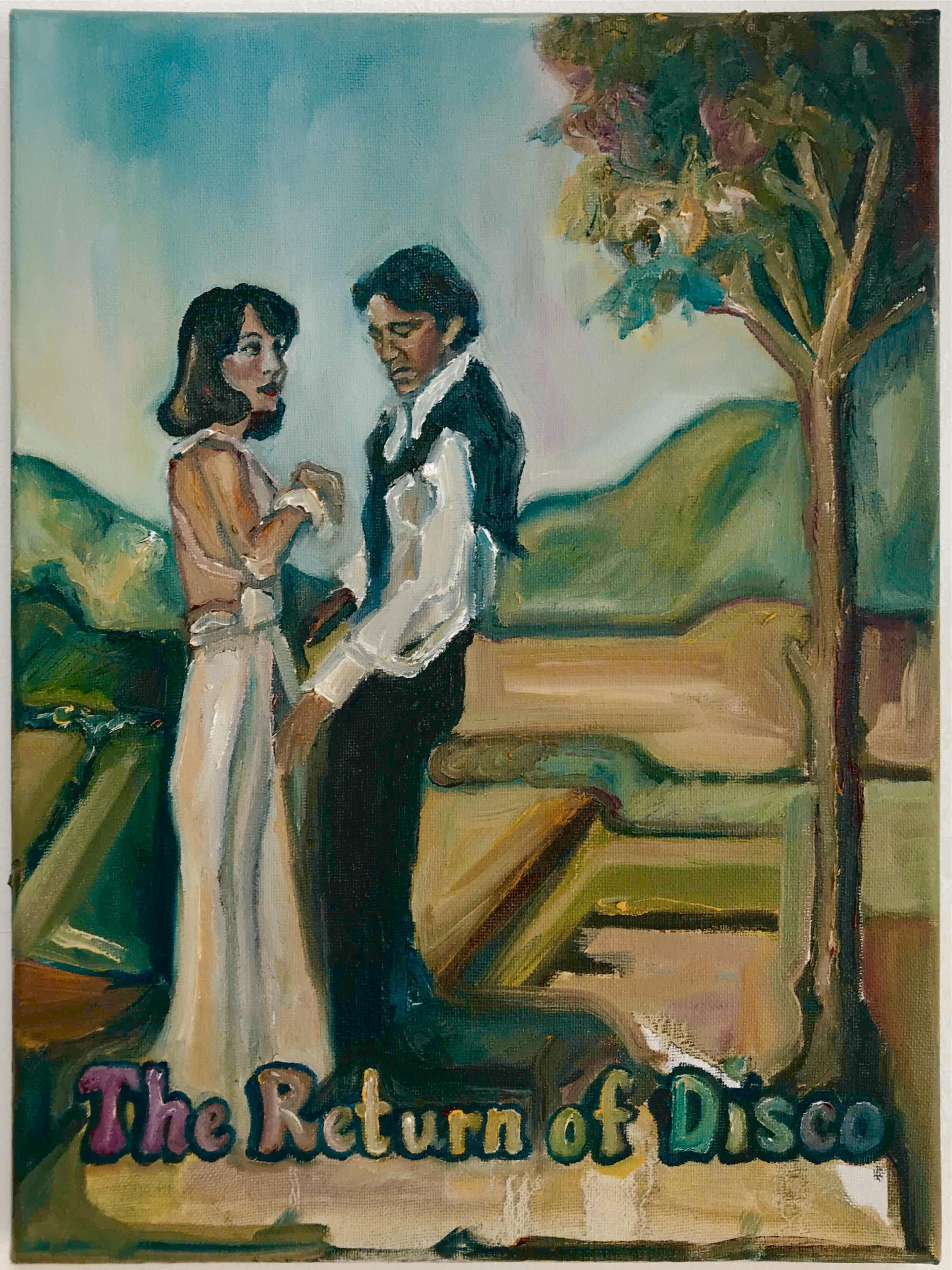 I usually base the composition of my paintings on old magazine covers, records, posters and classical paintings, but changes the subject matter to relate to an event that has happened in my life. Common themes in my work include classical music and paintings, pop culture, and tongue-in-cheek humour. I paint on a range of surfaces including stretched paper, canvas and wood. My work is a means of transforming these commercial images into a fine art.