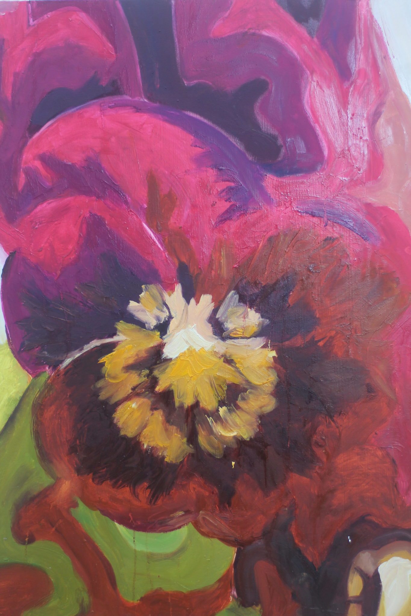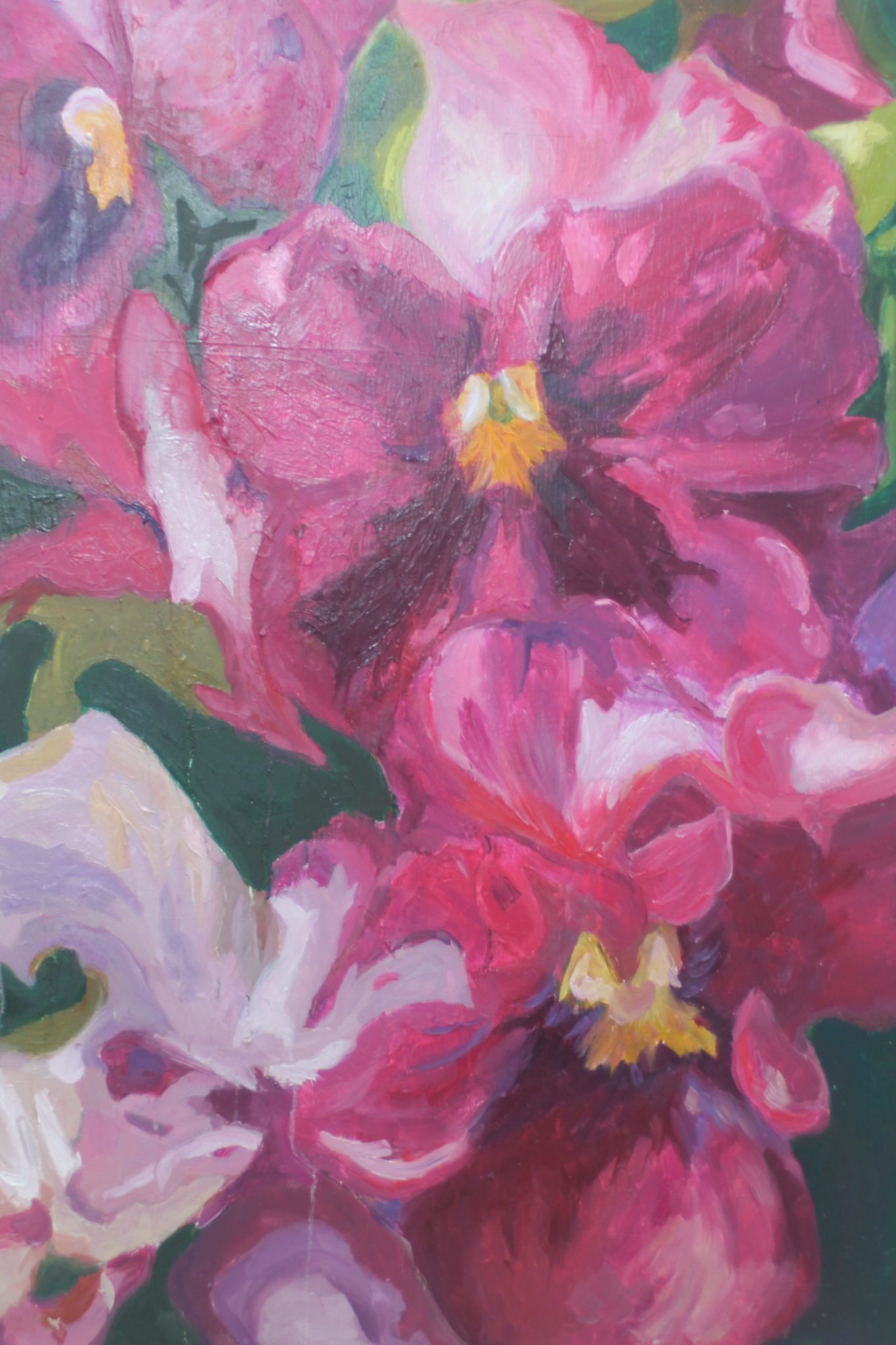 I explore the use of floral still life using refrains of mindfullness . My process includes gathering imagery then modifying them these through photoshop and then creating expressionistic blooming florals. The paintings themselves reveal layers of emotions and expose dimensions of colour and tone that subvert the nature of the flower, transforming them into a painterly landscape.