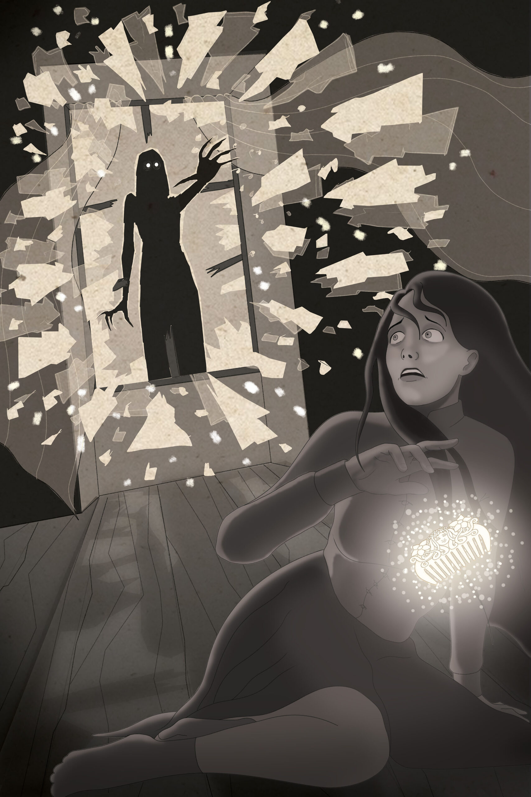 Hi! My name is Kate Minogue, I'm an Illustrator & Designer from County Wexford Ireland with a keen interest in the visual development aspects of the animation pipeline. While studying for my BA in Animation at IADT Dun Laoghaire, I developed a deep love and respect for the art of visual storytelling. I find great joy and fulfilment in bringing worlds and stories to life on screen through collaboration with others as well as through personal projects. My primary role is in Layout & Background Design, but I also love dabbling in all kinds of visual development work including Character Design, Prop Design, Storyboarding, etc. My artwork is often inspired by the fantasy stories and folktales of my childhood. For example, in my most recent project I created a series of digital illustrations based on mythology from my native county surrounding The Banshee's Comb, as collected by local historian Michael Fortune in his book "The Folklore of Wexford". As children growing up, we were taught to be wary of any lost or discarded combs we happened to find outside as we were told that they belonged to the legendary Banshee spirit. According to myth, if someone was foolish enough to take a comb found outdoors, The Banshee would follow them home, where she would scream and bang at their doors, walls, and windows until the comb was returned to her. The only way you could safely return the comb to The Banshee was to hand it to her on the end of a pair of iron fire tongs, otherwise she would take your arm off along with the comb when she took it back. The illustrations I created are my interpretation of this tale as a horror/thriller in which a naïve girl accidentally invokes the wrath of the Banshee after stealing her comb. The work reflects my love of stories with mystical and macabre themes. I am excited to continue on learning to develop the artistic skills I've acquired during my studies at IADT within the industry and hope to be involved in creating more unique and inspiring projects in the future!