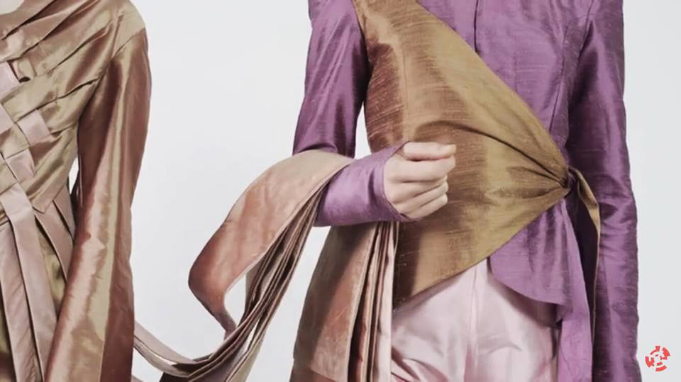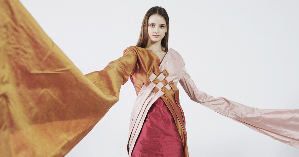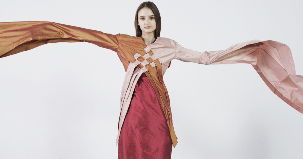 My collection takes inspiration from the Ancient Egyptian process of mummification. The controlled fabric manipulations used at the beginning of my collection contrast with the fluid lines in the latter looks, as the garments progress from their tightly bound appearance to a state of unraveling. I used raw silk as it is a natural fibre which would have been used by Ancient Egyptian Nobility.