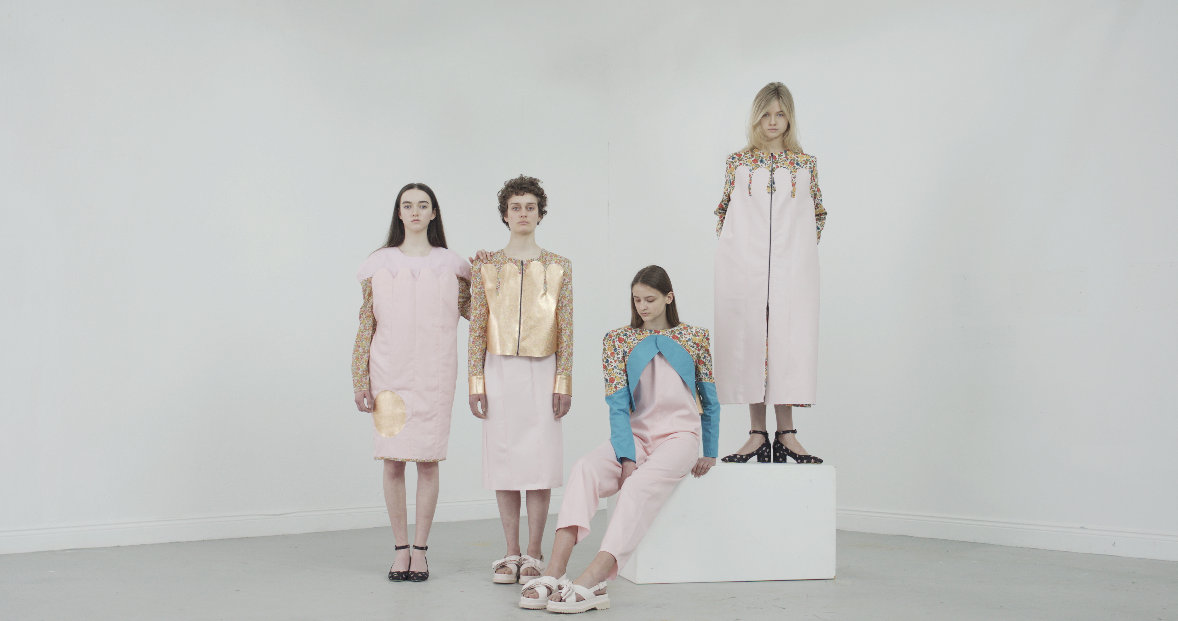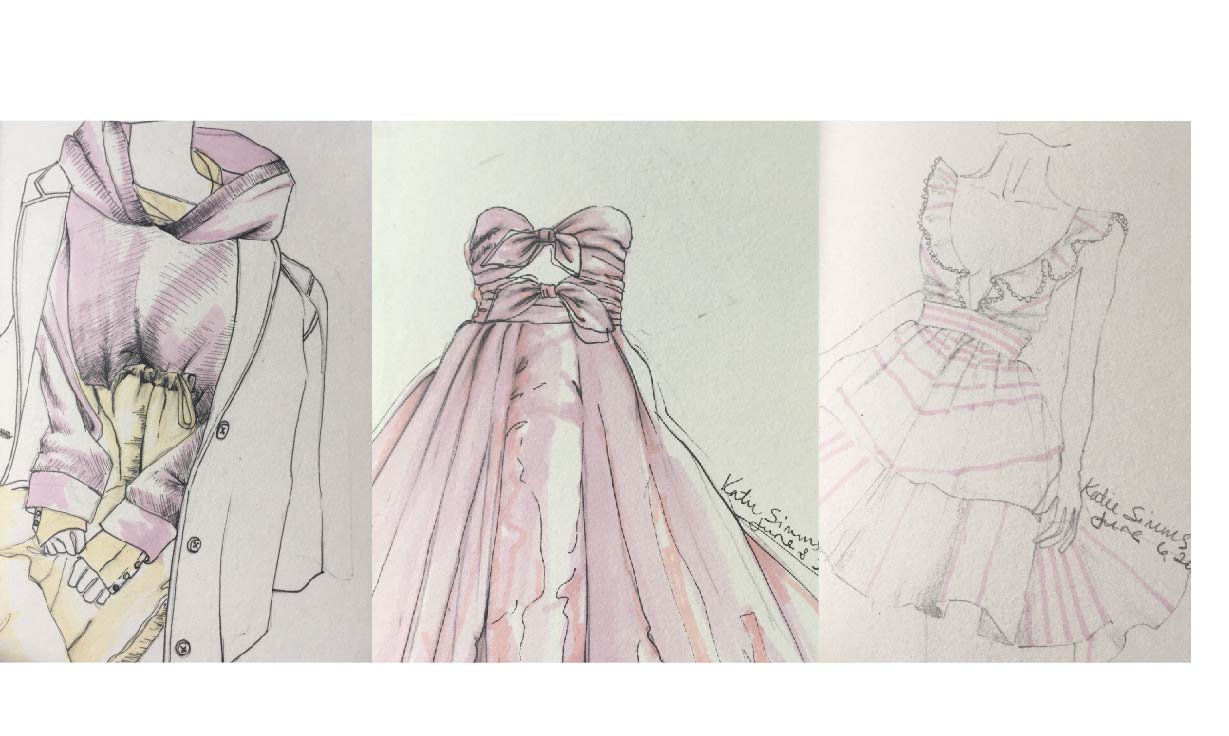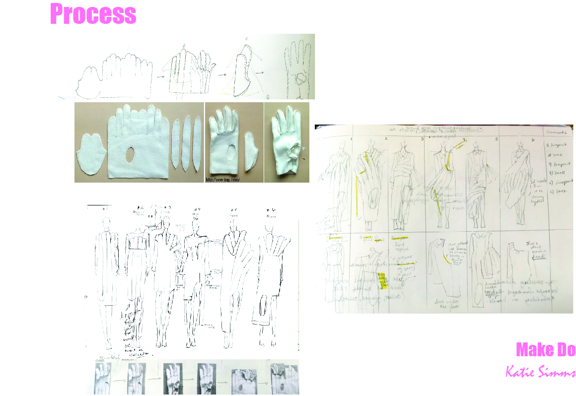 ‘Make Do’ is my collection inspired by the work of my great-grandparents, where tailoring and glove making come together in an epic love story where resourcefulness and creativity were a way of life. The materials used were cottons and leatherette to cross-reference materials used by the tailor and the glove maker. My drawings are of things I see beauty in, such as roses, women, and Fashion.