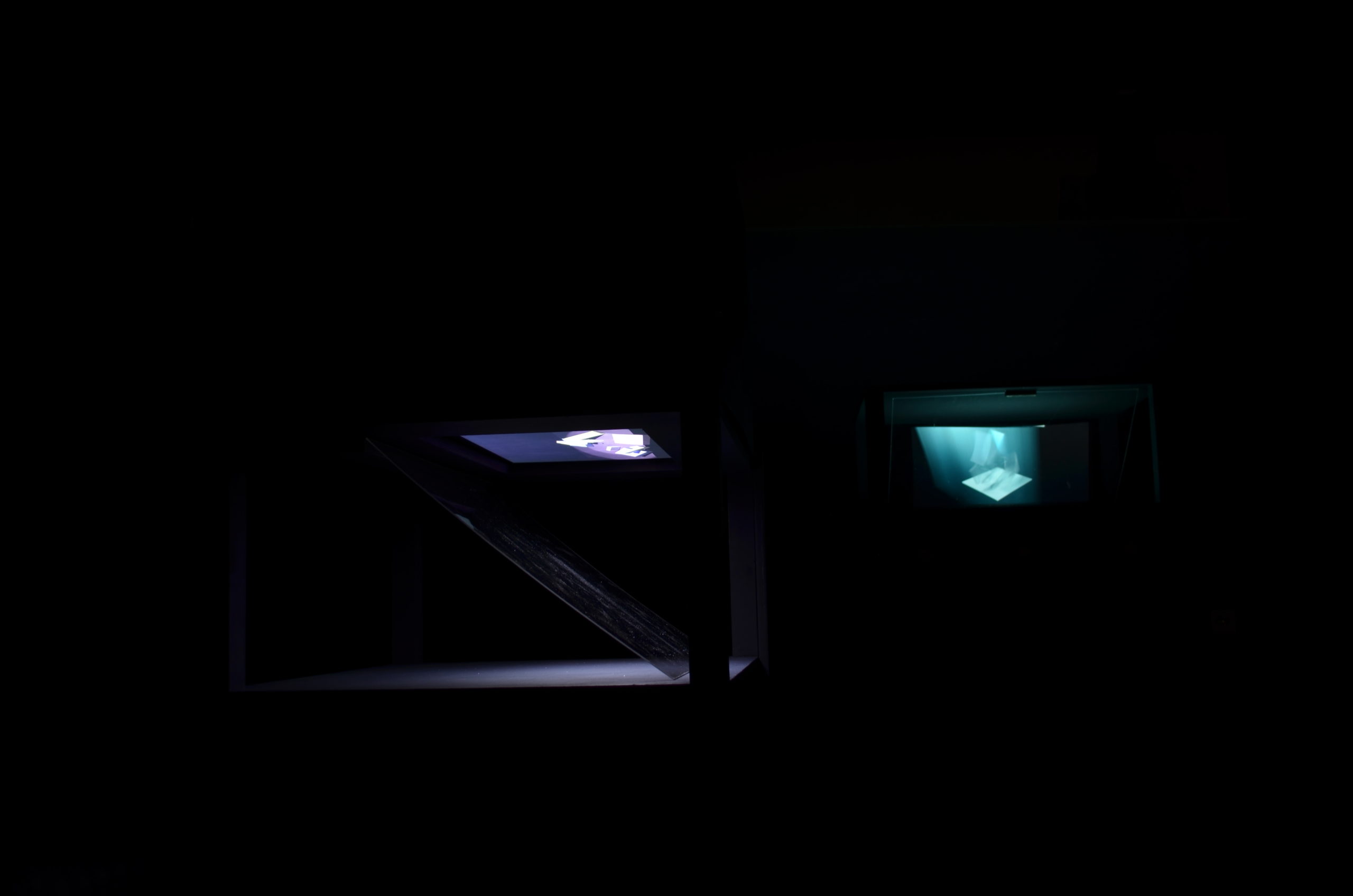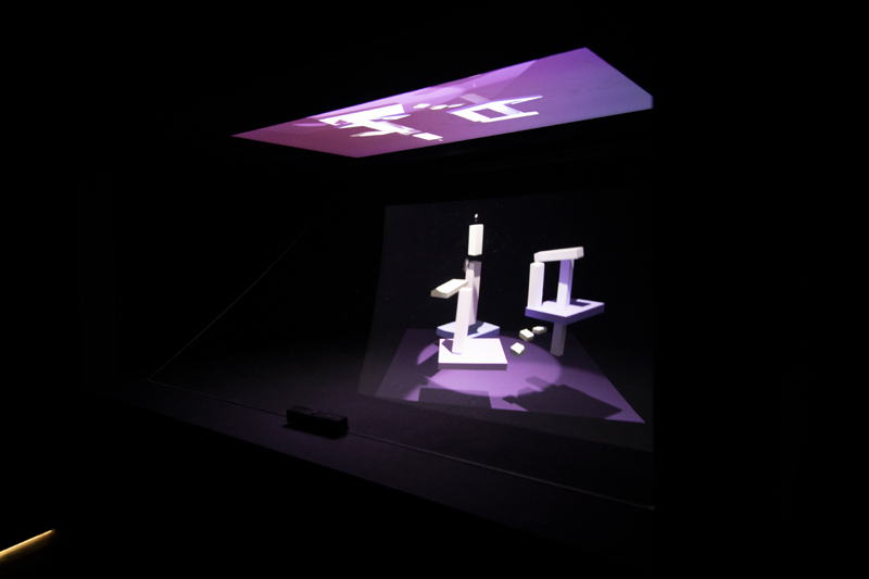 My work explores a psychological space through an immersive video and sound installation. Placed in a fully darkened room, the installation uses the ‘Pepper's Ghost Effect’ to create the illusion of a holographic display. The work looks at the psychological space from a 'feeling space' point of view, which is one aspect of the psychological space and aims to visualise an invisible territory.