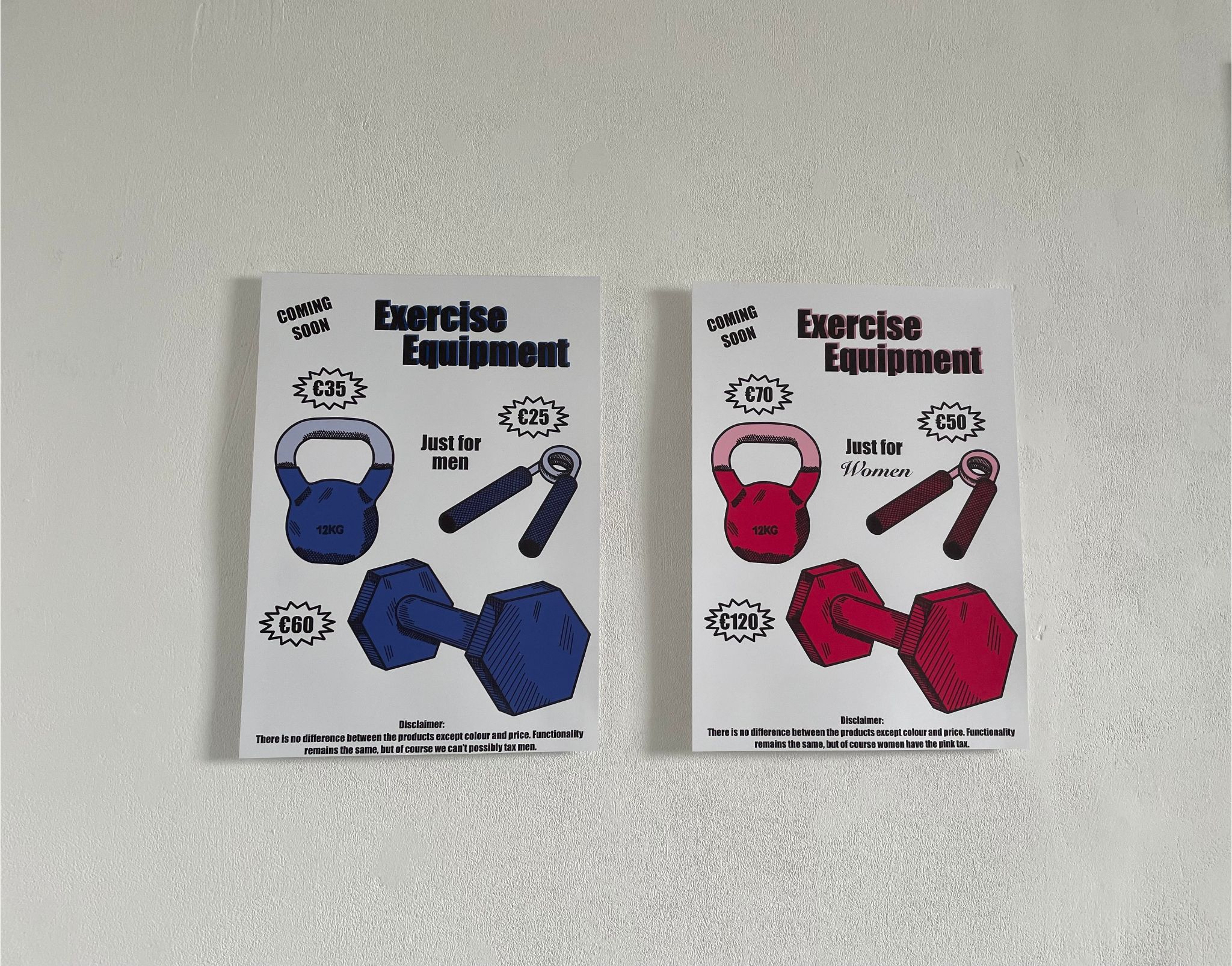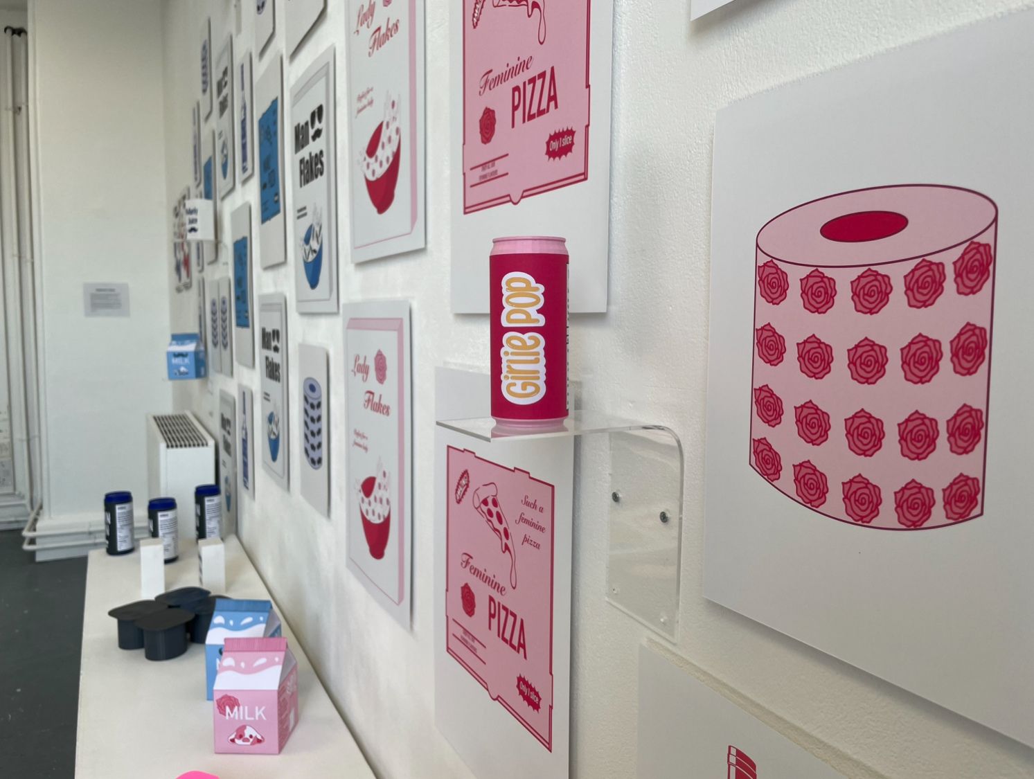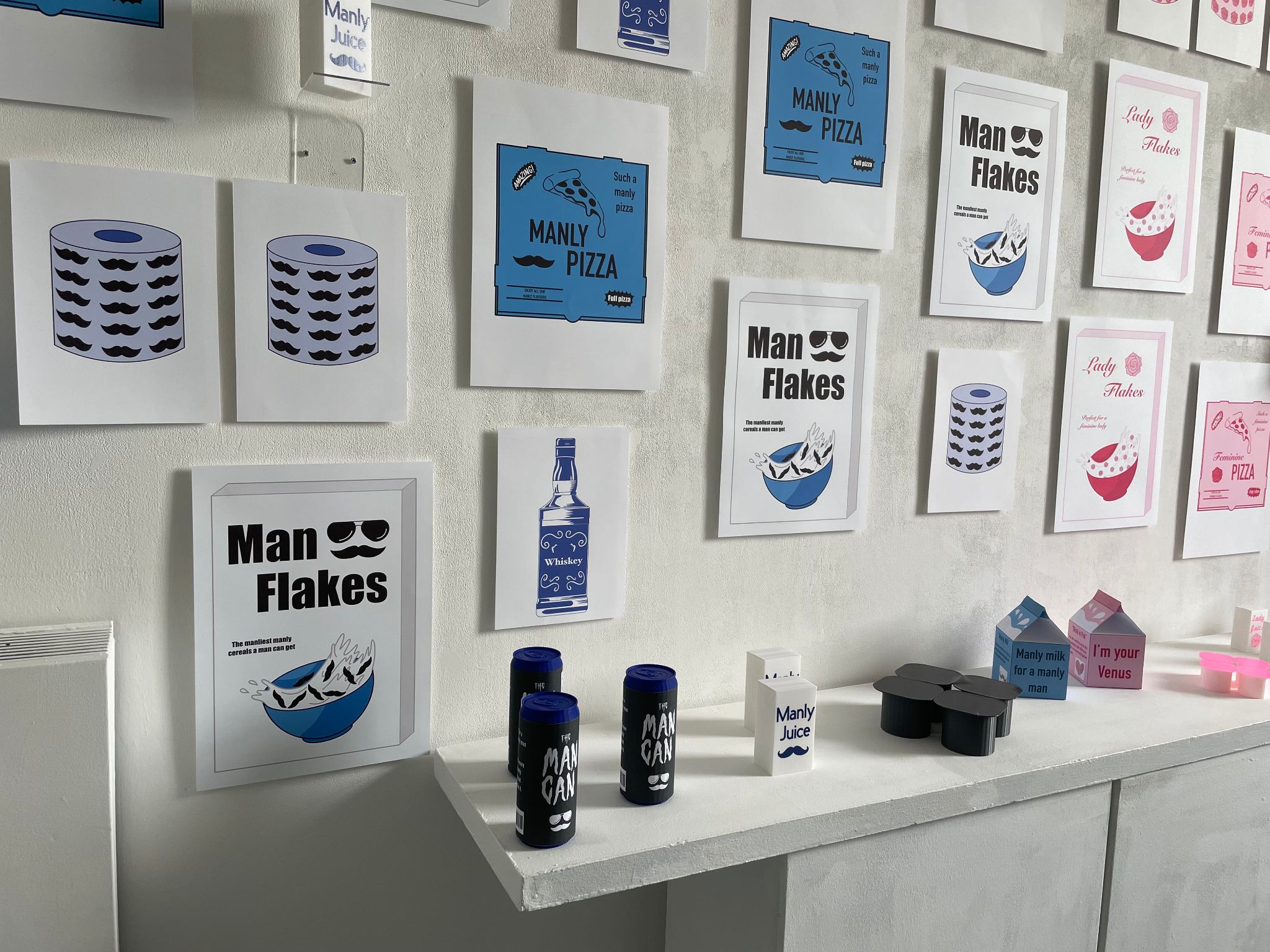My work explores and critiques the unnecessary gendering of everyday consumer products through a satirical lens. With the use of sculpture and print, I have made satirical, over-the-top designs than both mimic and over exaggerate the visual language of advertising. I used cliché colour schemes, exaggerated packaging, and absurd slogans to show how ridiculous gendered distinctions can be. I invite viewers to laugh at how absurd it is, but to also reflect how these norms are embedded into our everyday lives. Many people don’t question gendered marketing because it is so normalised. My work parodies the artificial divide between products “for him” and “for her”. By reimagining everyday objects through an exaggerated lens, I highlight how consumer culture reinforces outdated gender stereotypes under the guise of choice. I invite the viewer to reflect. Why does a pack of heat pads need to be pink and say “feminine” to be “for her”? Why must a spray say “men” on it it just because the products made by that company are usually advertised for women? Products should be advertised to everyone. I aim to spark conversations about how consumerism shapes our understanding of gender and how deeply these messages are embedded into the objects we use and see everyday.