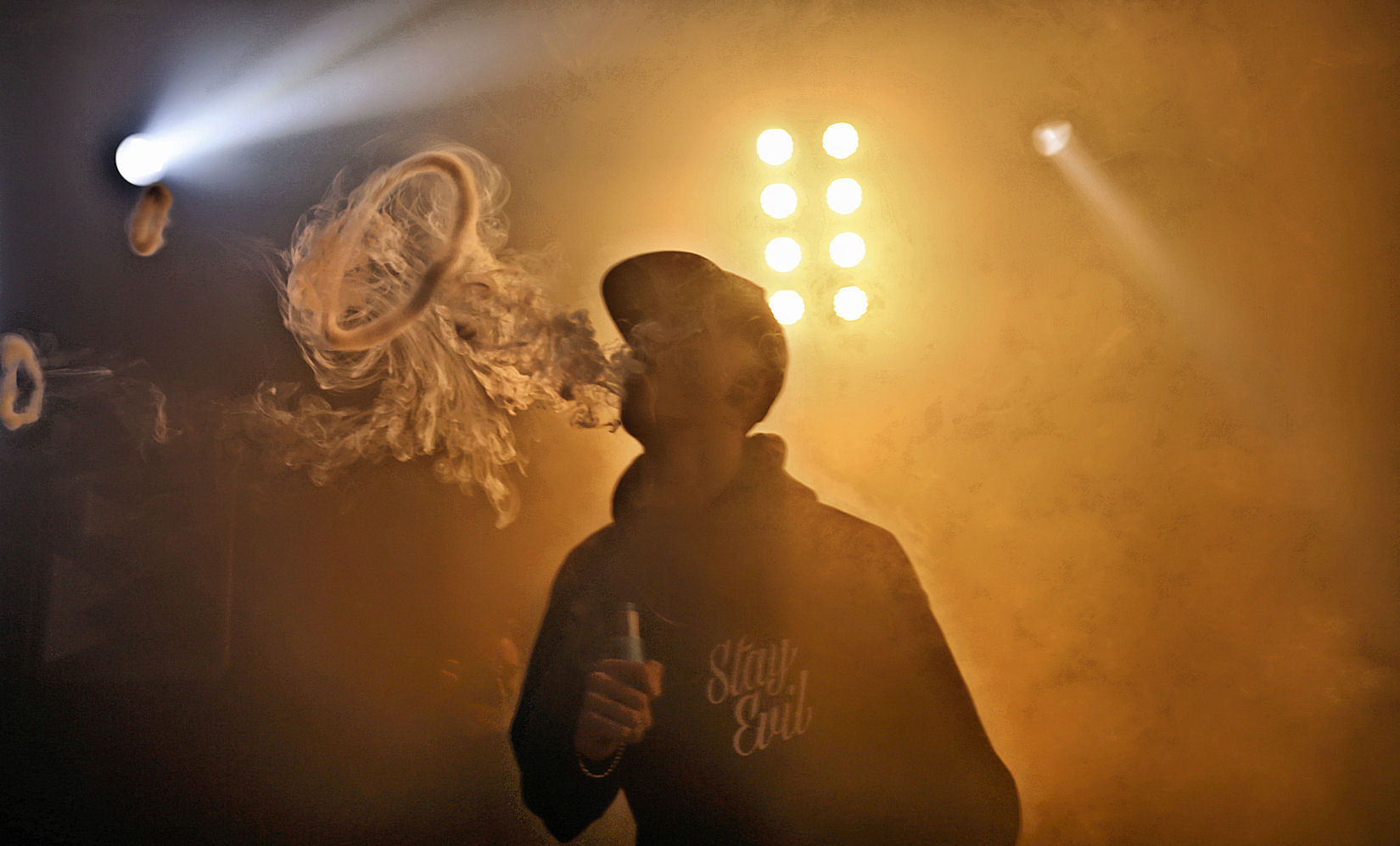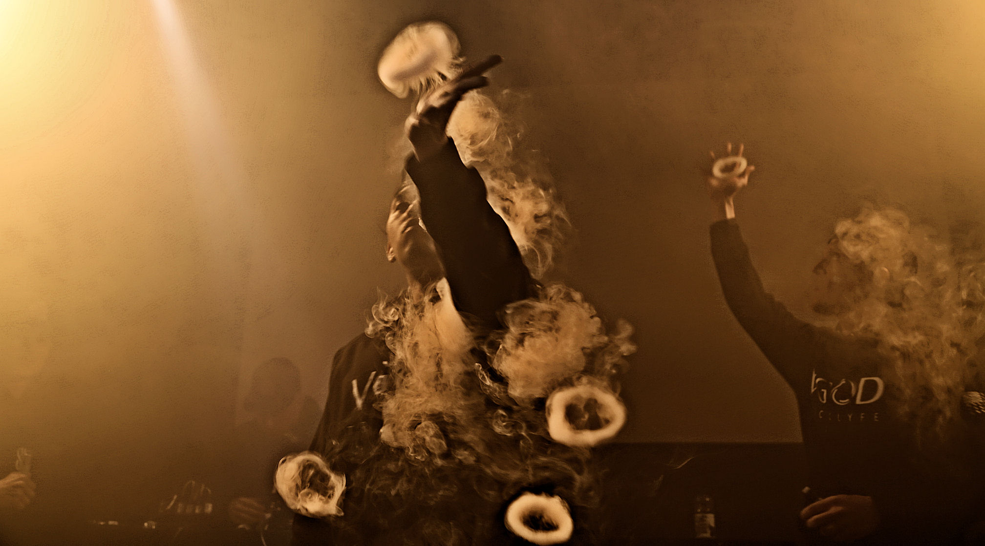 This work examines the world of Vaping (the use of electronic cigarettes and other such devices to help as a smoking cessation vehicle) and a new Subculture of people who have sprung up around Vaping this world of Cloud Chasers and Tricksters has turned into a fun but competitive side of the Vaping industry.