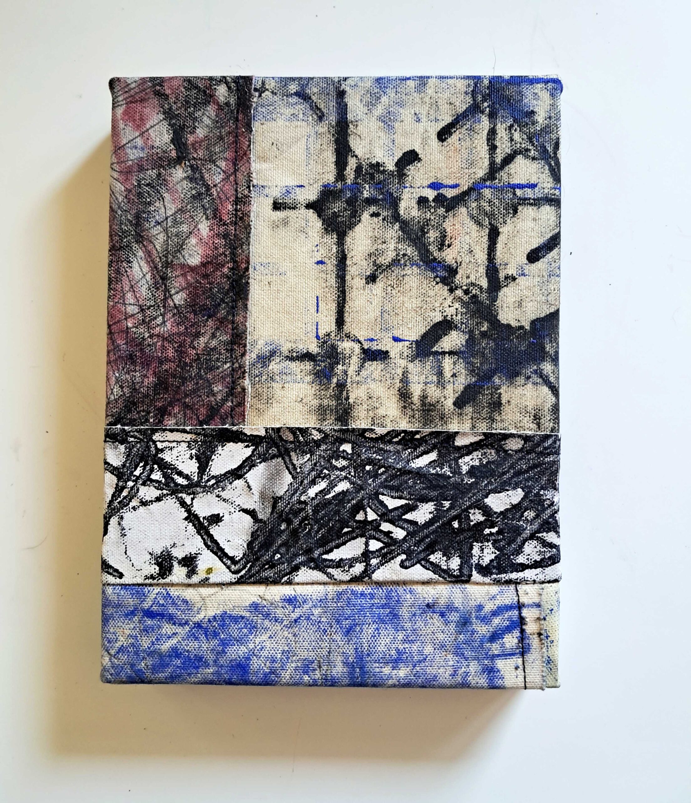Currently in my practice I am exploring work that exists at the intersection of painted abstraction, collage and assemblage. My current works are born of a chaotic and expansive process which develops an 'archive' of materials that I use to seek resolution. These constructions utilise a painterly vocabulary during their inception and once they come to a precipice a requirement for ordered and compositional language becomes activated. The work encompasses elements related to the language of painting, making, constructing, and assembly, utilising stitched canvas as a means of resolution. While these works aim to establish a connection to the art historical canon, they deliberately resist orthodoxy and challenge traditional notions of painting. I am exploring the realm of failed aesthetic and refinement, challenging the preconception that perfection is attainable within the confines of the medium. The marks made in these works are crude, impetuous, and imbued with contained aggression. They seek to capture perfectly imperfect, spontaneous moments of authenticity expressed in paint and selected mediums.
