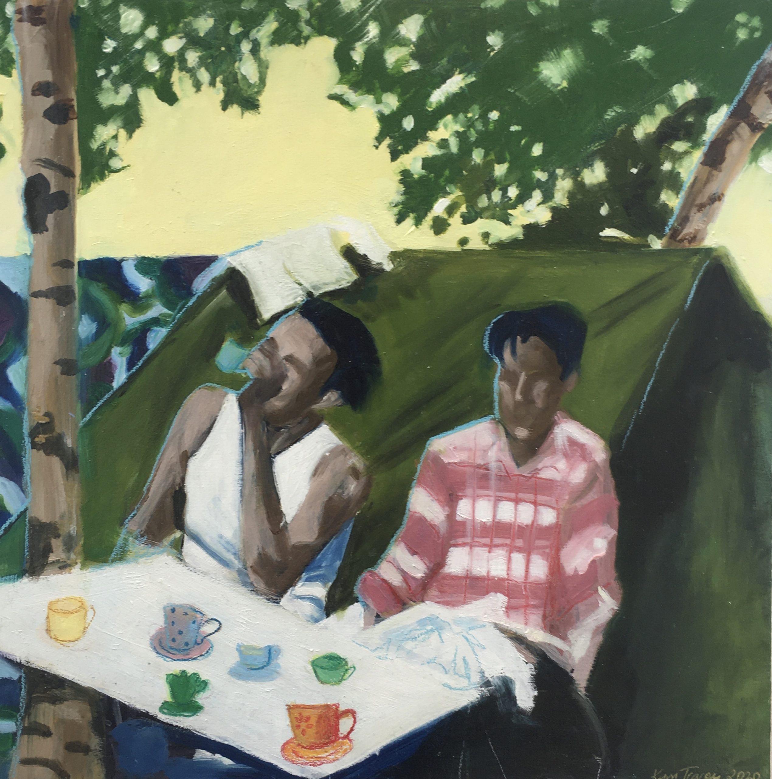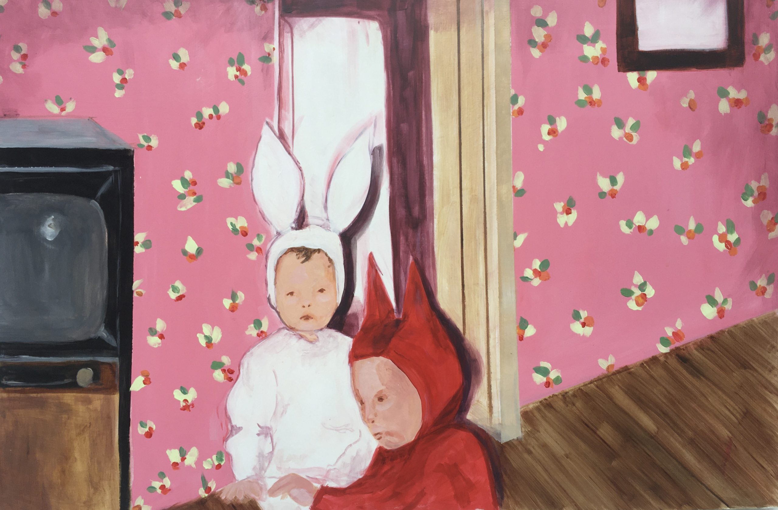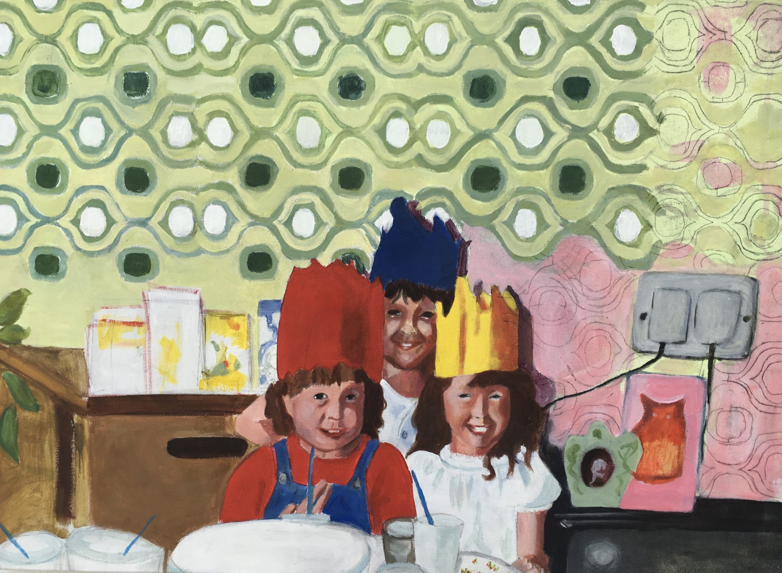 My work is a homage to a certain time and space. Nothing brings me more excitement than photographs, not photography exactly, but simply everyday photos taken by everyday people. My subject matter focuses on the past and its trends, whether that’s pattern filled interiors or ever-changing fashions. Combining these past trends with collected images I create nostalgic paintings celebrating youth.