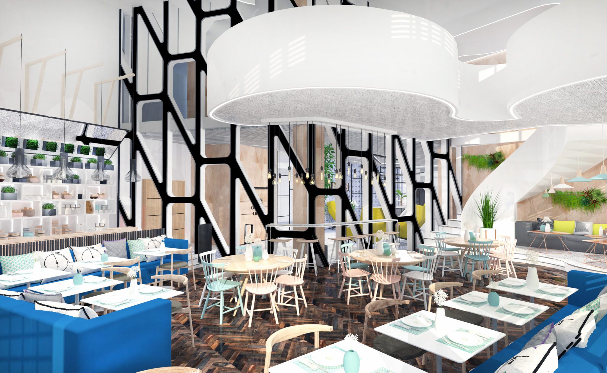 largely on creating a vibrant, bright and exciting interior.