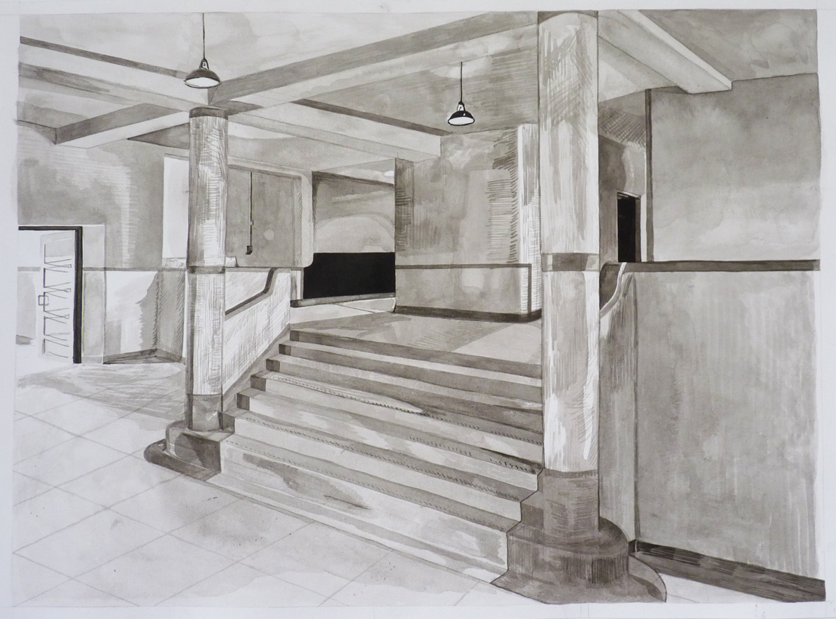 Through the process of drawing I seek to tease out a commonality between collective memories of being a participant within public educational spaces. This body of work, A Great Public Meeting explores empty educational spaces that question and challenge the aspirational promises put forward by the state through formal education. However, once students, teachers and communities fill these spaces the promises made are not always delivered upon and the fallibility of the architectural ideals become apparent. Through the use of archival materials, documentation from site visits, and found images from my teenage years, I explore tensions between the empty school sites and the dense, awkward dance floors of teenage discos.
