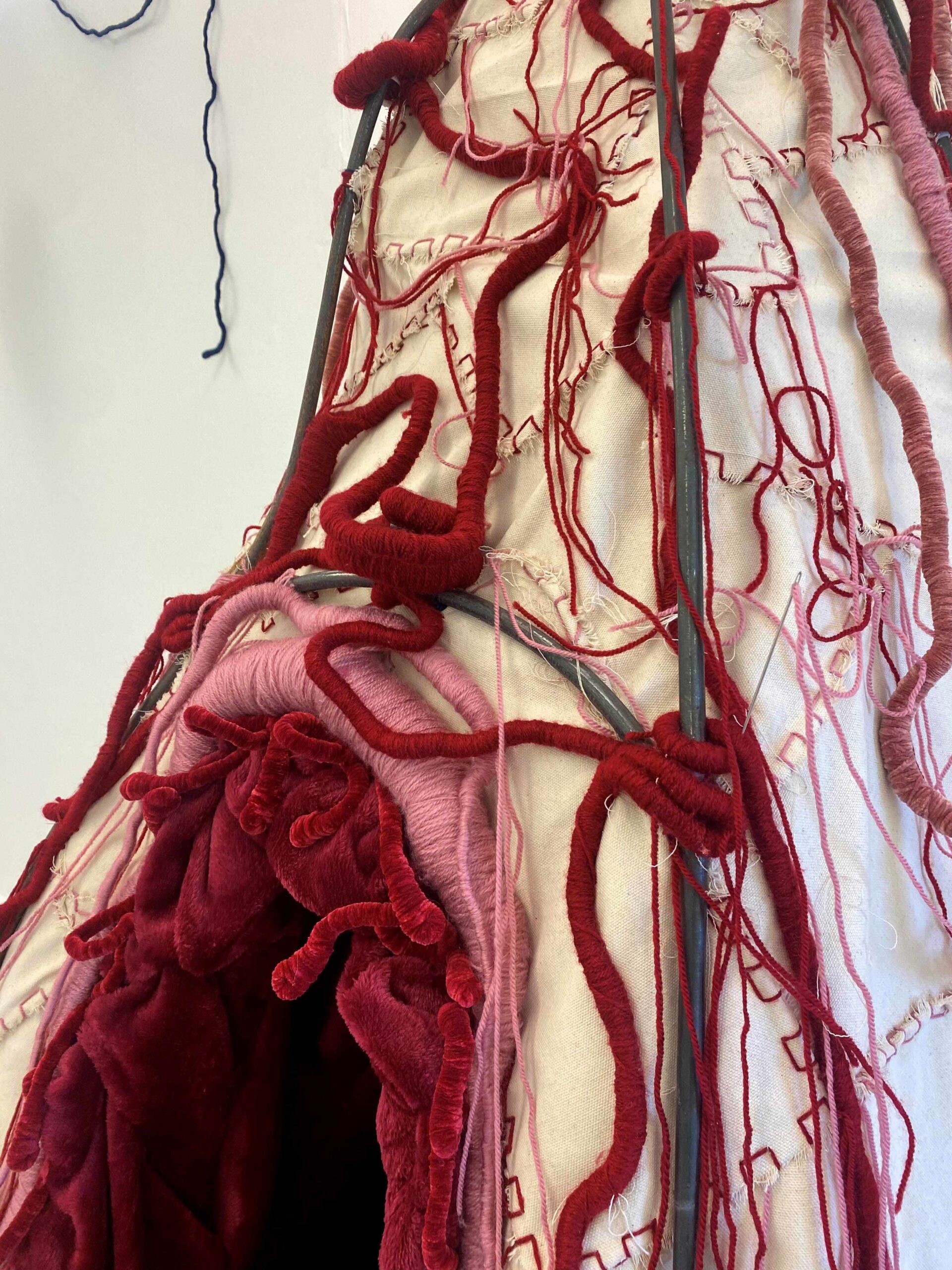 I am a multidisciplinary artist from Birr, Co. Offaly, with a BA (Hons) degree in Fine Art Painting from the Limerick School of Art and Design. My recent work, ‘From Womb to World,’ explores the complexities of the female experience and motherhood, inspired by personal challenges and experiences. Feeling disconnected from my body, art has been a cathartic means of reclaiming ownership of my physical self. Through drawing, painting, sculpture, and installation, I aim to convey the nuanced interplay of the joy and challenges inherent in motherhood, striving to redefine perceptions of femininity and the body. By creating organic and suggestive forms, I encourage a reconsideration of the female form and experience. Artists such as Magdalena Abakanowicz, Ernesto Neto, and Louise Bourgeois influenced the incorporation of textiles into my work. Textiles provide a sense of domesticity, comfort, and warmth that aligns with my exploration of the maternal condition. My approach to drawing with textiles feels as intuitive as painting on a canvas. In a society that imposes rigid expectations on women, my art rejects these standards and highlights the politics surrounding the female body, encouraging deeper conversations about identity and the maternal condition.
