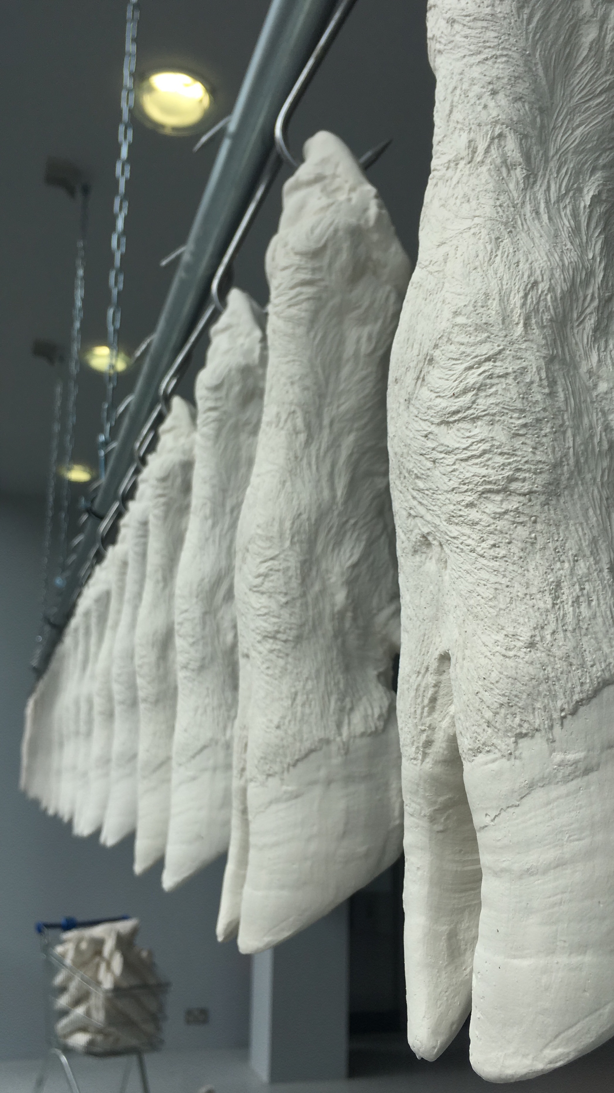 We have created an ability to compartmentalise and dissociate from the meat on our plates and the effects of dairy production on our environment. Of the methane produced in Ireland, 85% is produced by the farming industry. These fragile ceramics casts have been taken from discarded hoofs from the meat industry. The aim was to provoke changes in the way we think about what we consume.