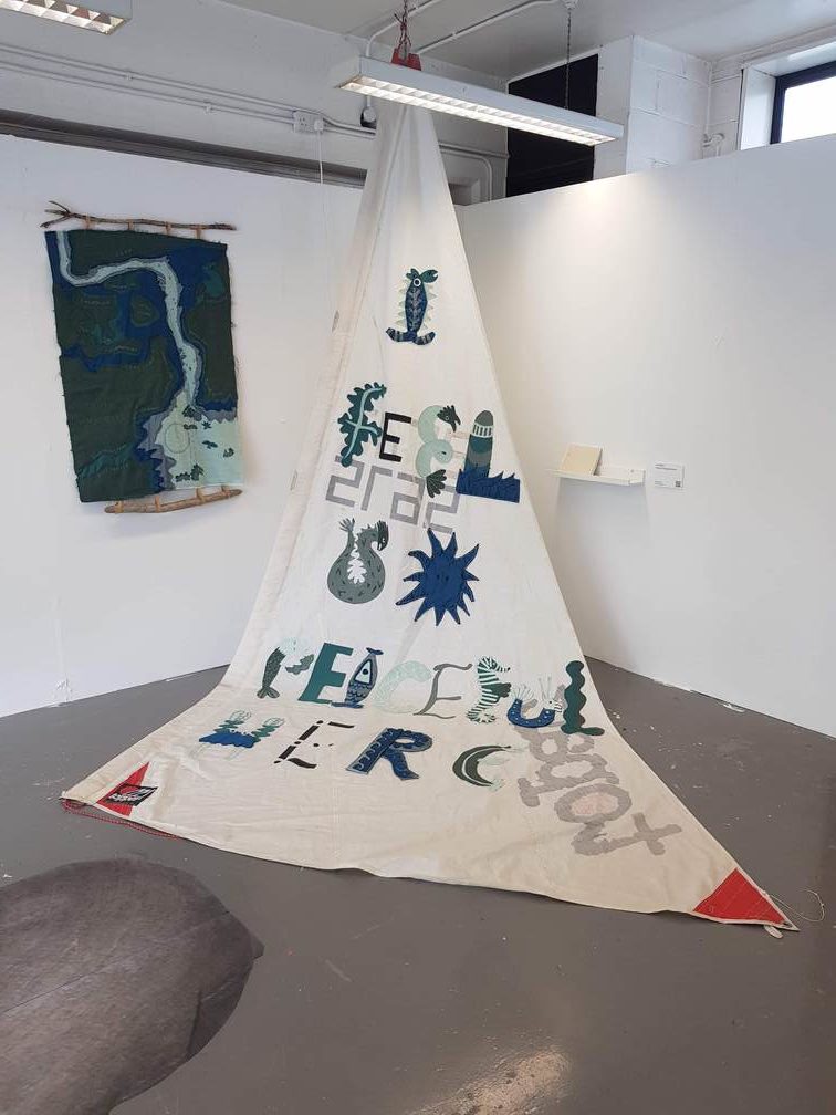 This project seeks to inspire a love of the ocean through illustration in the form of a logbook, a tapestry and a mixed media typographic sail, and to prompt consideration of ocean habitats as areas we need to care about and protect.