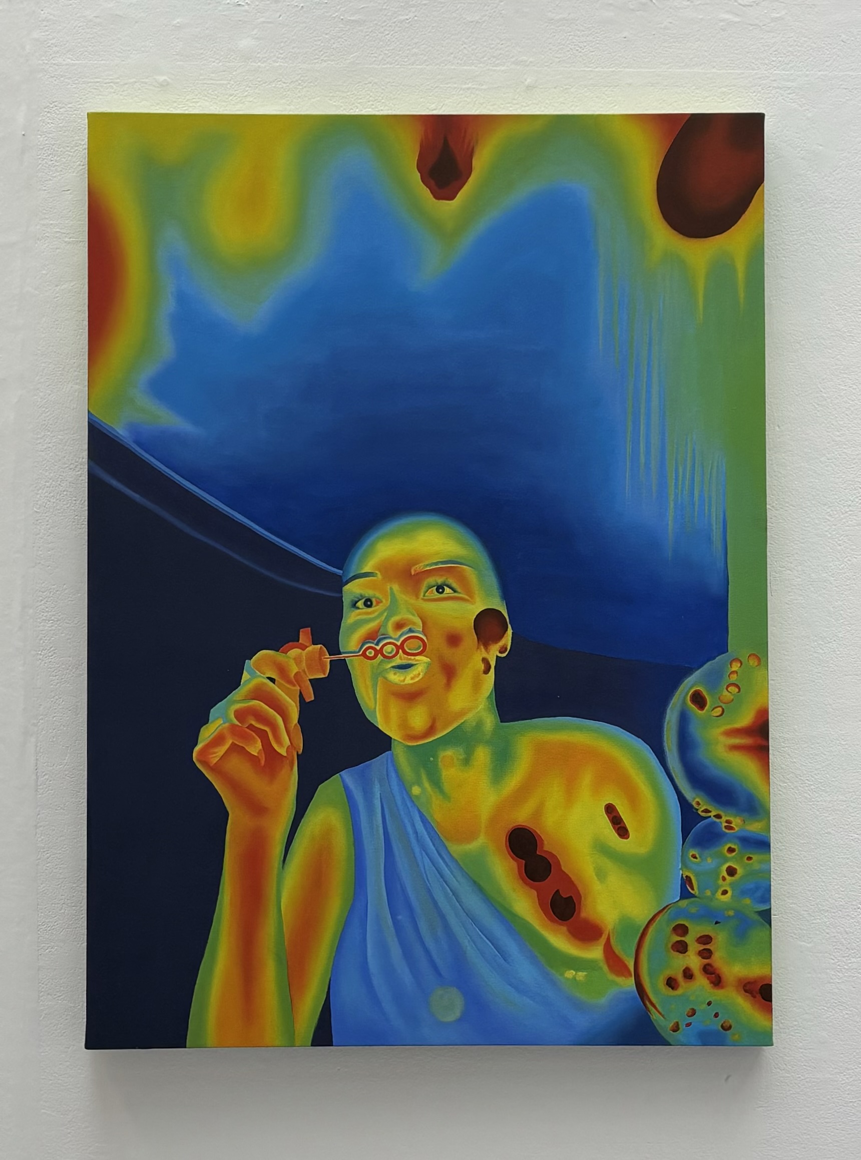 In my artistic exploration, I delve into the unseen realm of our surroundings, unveiling the intricate dance between humanity and our environment through the lens of thermal photography. I capture the silent dialogue of heat and light emissions, revealing the dynamic interplay between human presence and the natural world. I initiate my process by crafting enduring compositions from the thermal photos I've captured, using meticulous collaging as the foundation for my paintings. I weave together fragments of thermal imagery, constructing narratives that speak to the profound impact of our actions on our environment. Distance and space emerge as central motifs, guiding viewers through a visual odyssey of exploration and introspection. By infusing my work with thermal aesthetics, I invite audiences to witness the subtle yet profound transformations wrought by our collective footprint.