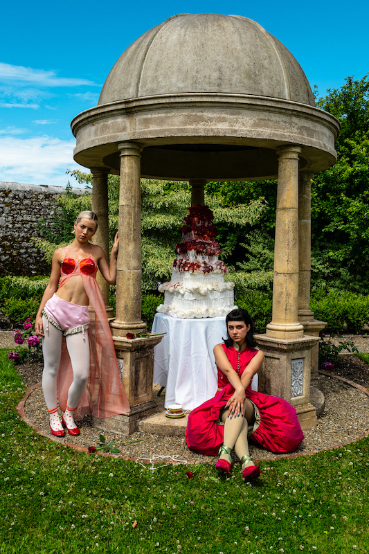 My graduate collection ‘Don’t Get Your Knickers in a Twist’ is a womenswear collection for Spring Summer 2024/2025. The collection draws inspiration from the often overlooked yet powerful experience of menstruation. Delving into the realms of taboo and patriarchal attitudes, I aimed to challenge societal norms by celebrating the female body during this natural process. Exploring both the negative perceptions and emotional intricacies of menstruation, my collection research delved into how different cultures and religions handle this phenomenon, as well as the physical and emotional toll it takes on the body. My design process revolved around the creation of shapes through unconventional means. Utilising stand work along with drafting flat patterns, I sculpted forms inspired by the comfort and protection of a duvet, symbolising the need for solace and support during menstruation. These shapes, simultaneously embracing and overflowing, mirror the experience of vulnerability and physical discomfort. In a departure from traditional colour palettes associated with menstruation, I chose hues of khaki green, cerise red, and pale pink. The use of a green silk dupion symbolises illness, while the red silk taffeta embodies the intensity of emotions and hormonal fluctuations surrounding menstruation. Embellishments such as hanging red beads serve as a subtle nod to the leaking and dripping of blood, time to change your mooncup! However, I sought to maintain an elegant aesthetic, steering clear of gore to align with the overarching narrative of celebrating menstruation.