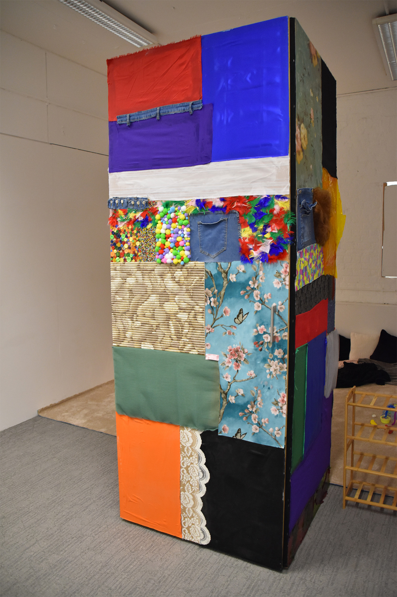 My work 'A Minute in my Life' is modelled on the concept of a sensory room. This work was conceived due to my issues as an Autistic individual. I want to replicate how I experience the world in a way others can engage with. This is done with the aid of sensory equipment and lighting within a controlled environment. I feel that the only way people can thoroughly understand what a disability is like to live with, is to experience some aspect of it. That is why this work invites the audience to engage with it, with the sound chamber giving a glimpse of what it is like to have an audio sensitivity. The rest of the room is designed to act as a calming area after a difficult experience within the chamber. I have included sensory aids I use within my personal life as I navigate the world as an Autistic person.