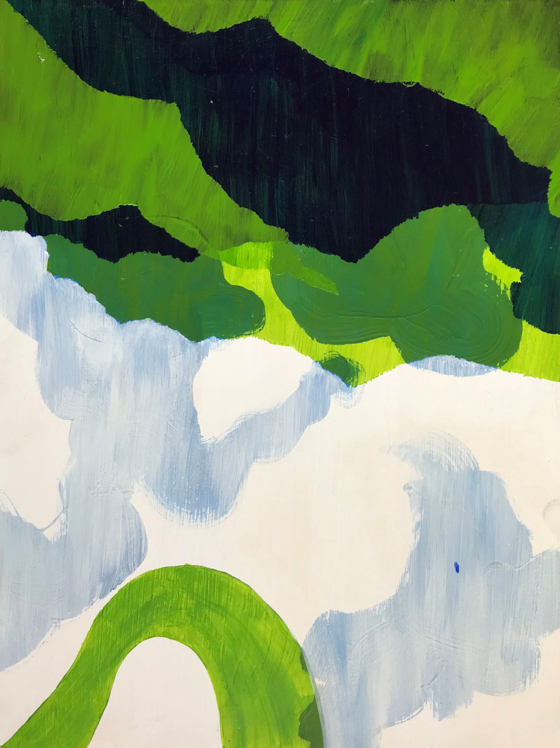 I am an abstract painter who works with primarily acrylics and oils. I work by masking off areas of the canvas with paper stencils and painting over them to build up overlapping layers and shapes. My art places an emphasis on the colour, opacity and texture of the paint. Over the span of last few years, I have increasingly moved away from more figurative work and towards total abstraction. I am heavily inspired by the organic forms of the natural landscape and the human body, which are echoed through the biomorphic shapes created by the stencilling process.