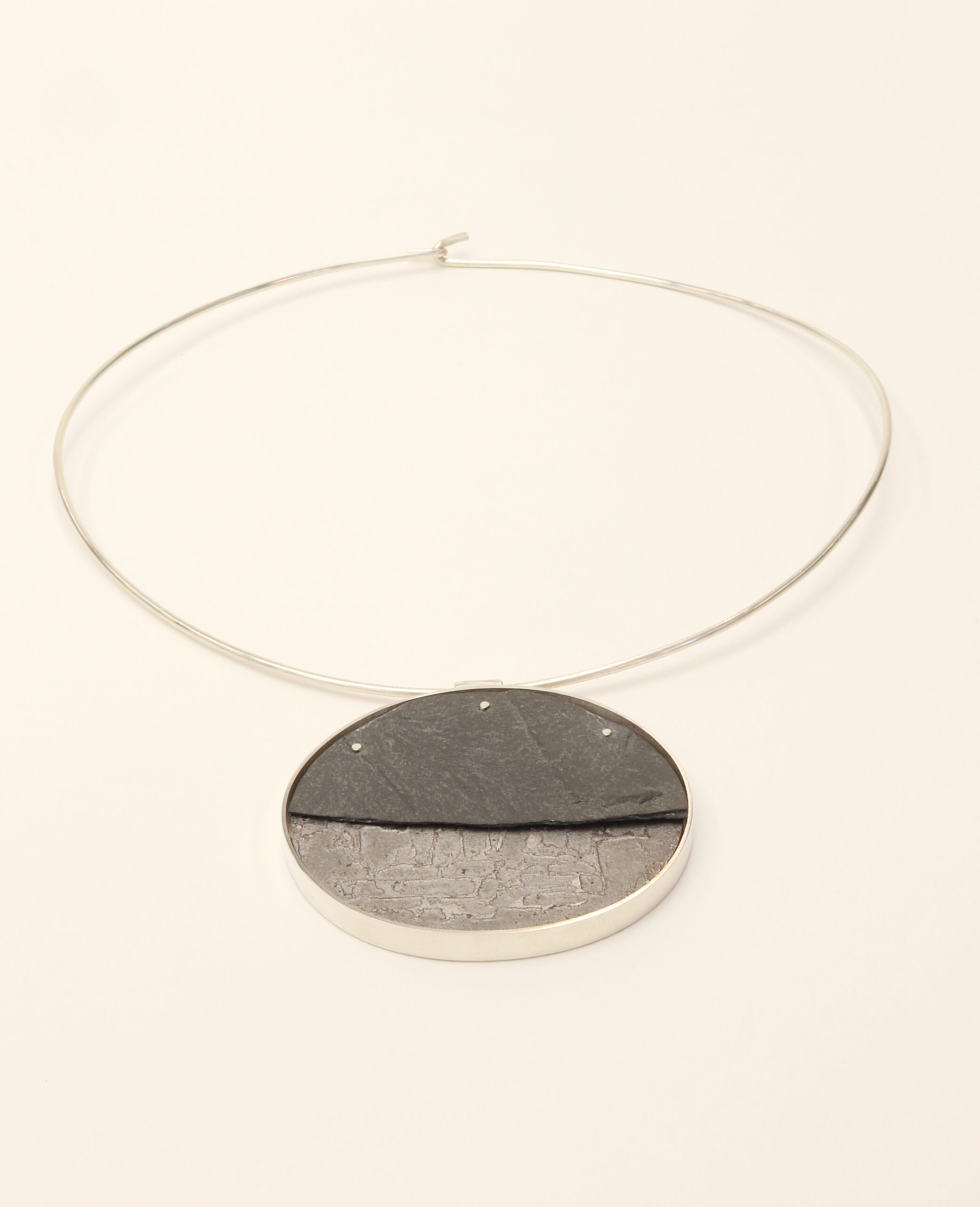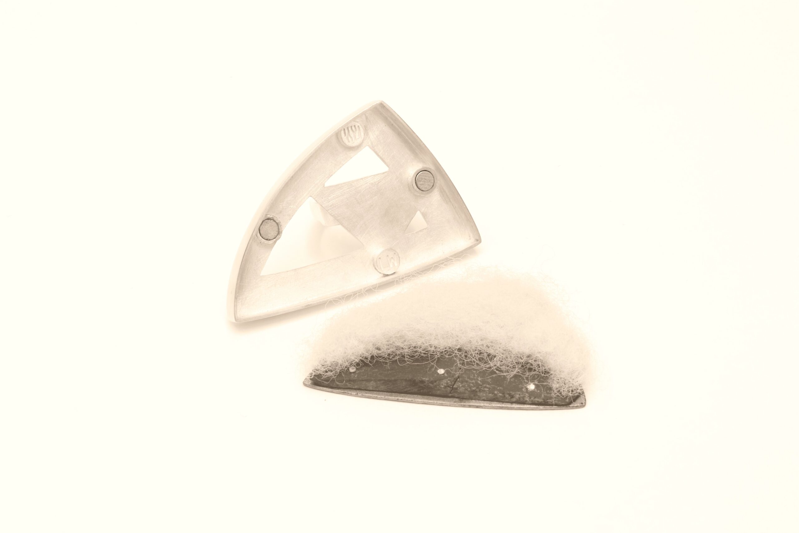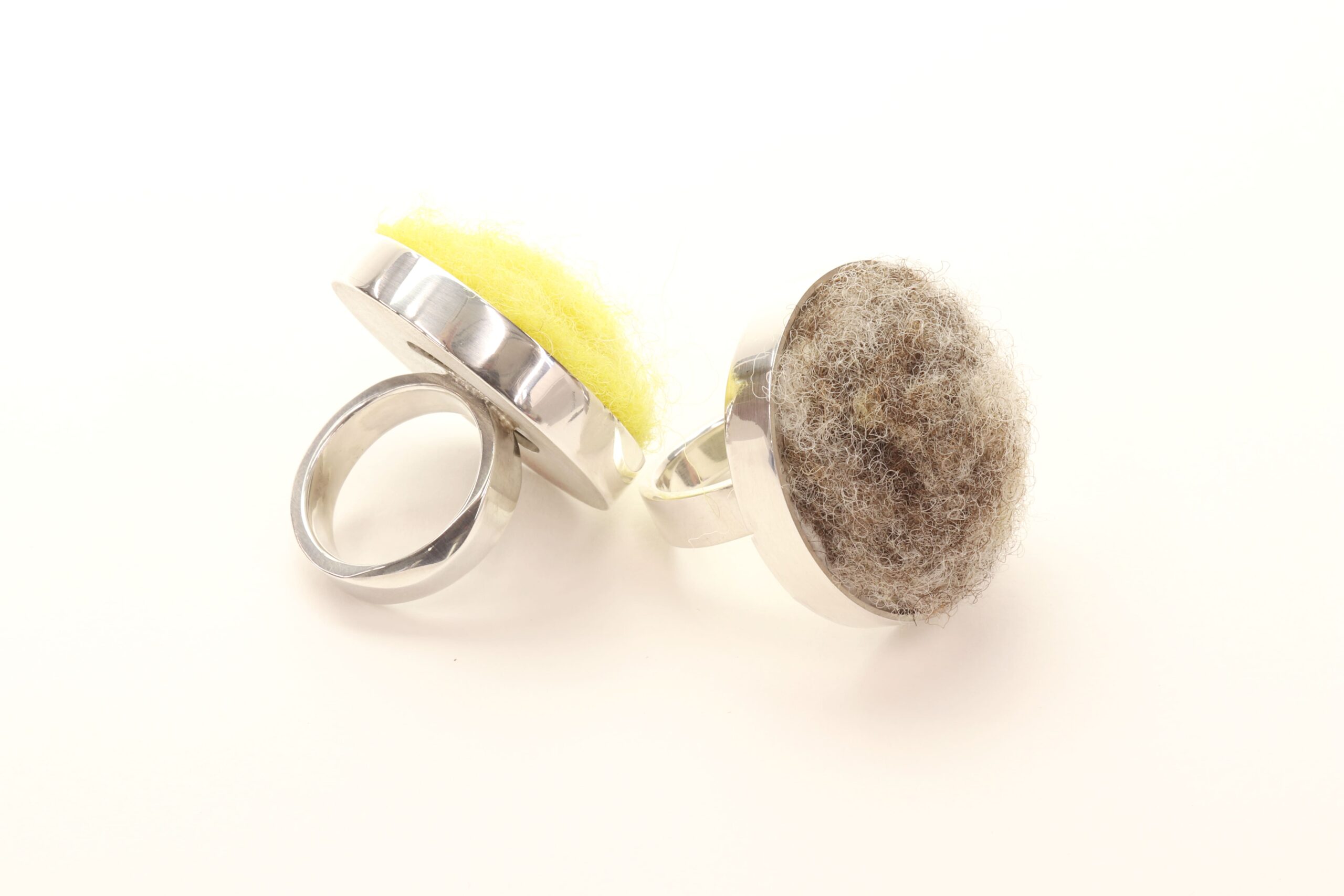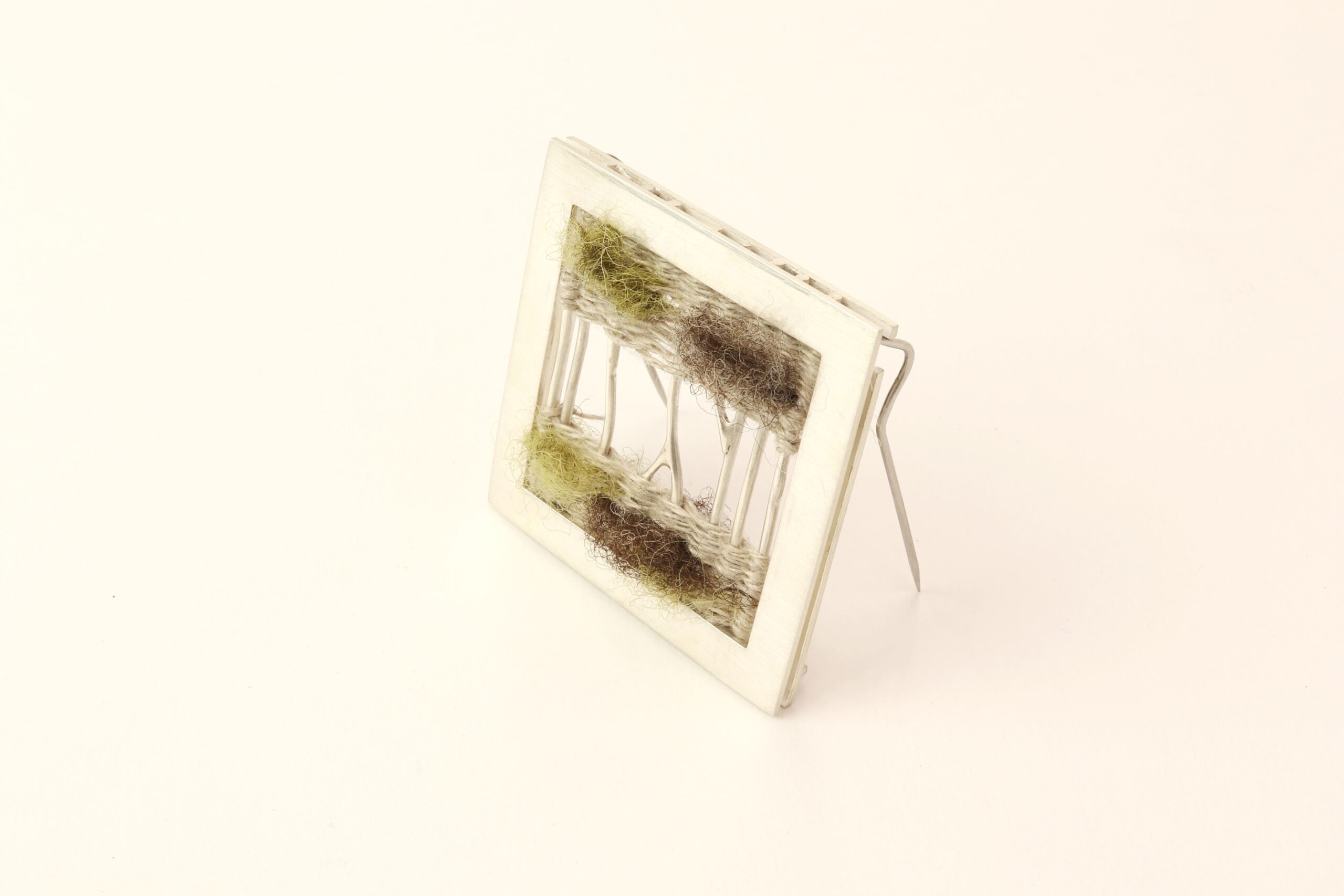 'Precious Land' is a jewellery collection centred around the Irish landscape and the value of working with raw Irish materials such as native sheep wool, slate, and linen. The wool industry in Ireland was once a vital part of our heritage; today, most of Ireland’s wool is either exported or discarded as waste. This project aims to inspire a renewed connection between the wearer and the land, and to celebrate the value of a now under appreciated material. My practice involves travelling across Ireland, observing texture and colour, and translating these impressions into material form through processes such as etching and natural dyeing. While rooted in traditional techniques, I incorporate silver and magnetism to secure the natural components. This results in an interchangeable quality that allows for customisation and fosters a more personal, tactile connection to each piece.