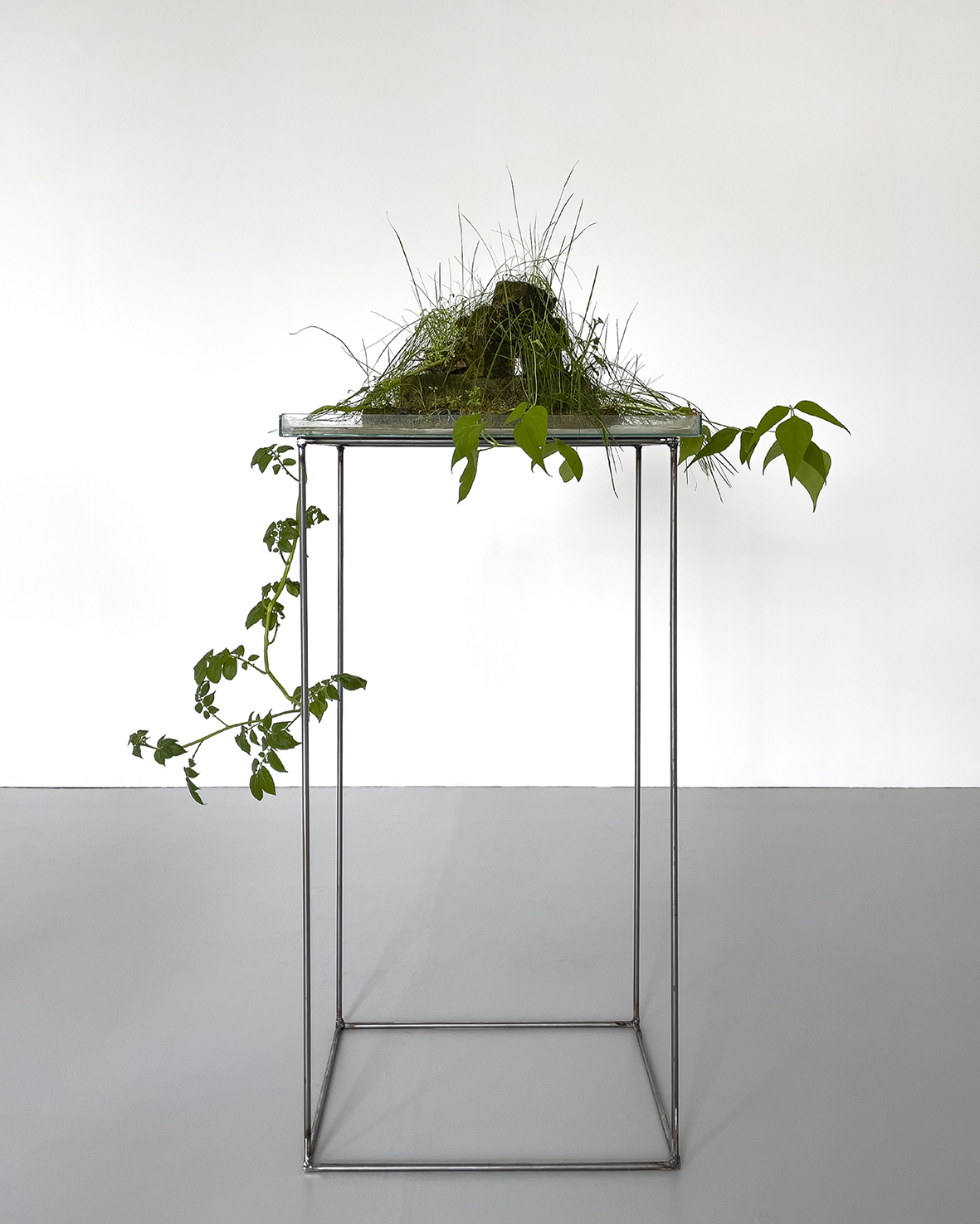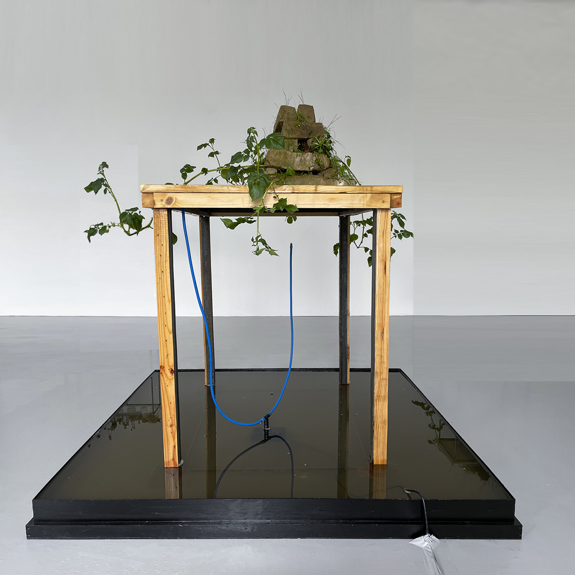 I made this installation with the intention of emphasising the unchallenging power of nature against human’s continual interference within it. Nature’s powerful impact upon our daily existence is reflected within the decaying and renewal process now evident within the installation. This could also be seen as an act of self-care and self-preservation carried out by Nature itself against us. This process is physical and material as well as emotional.